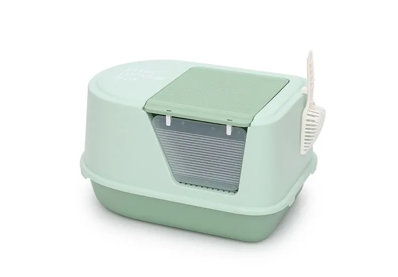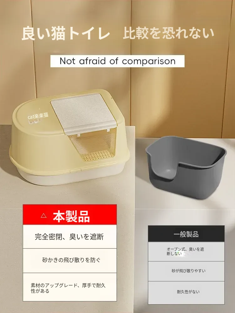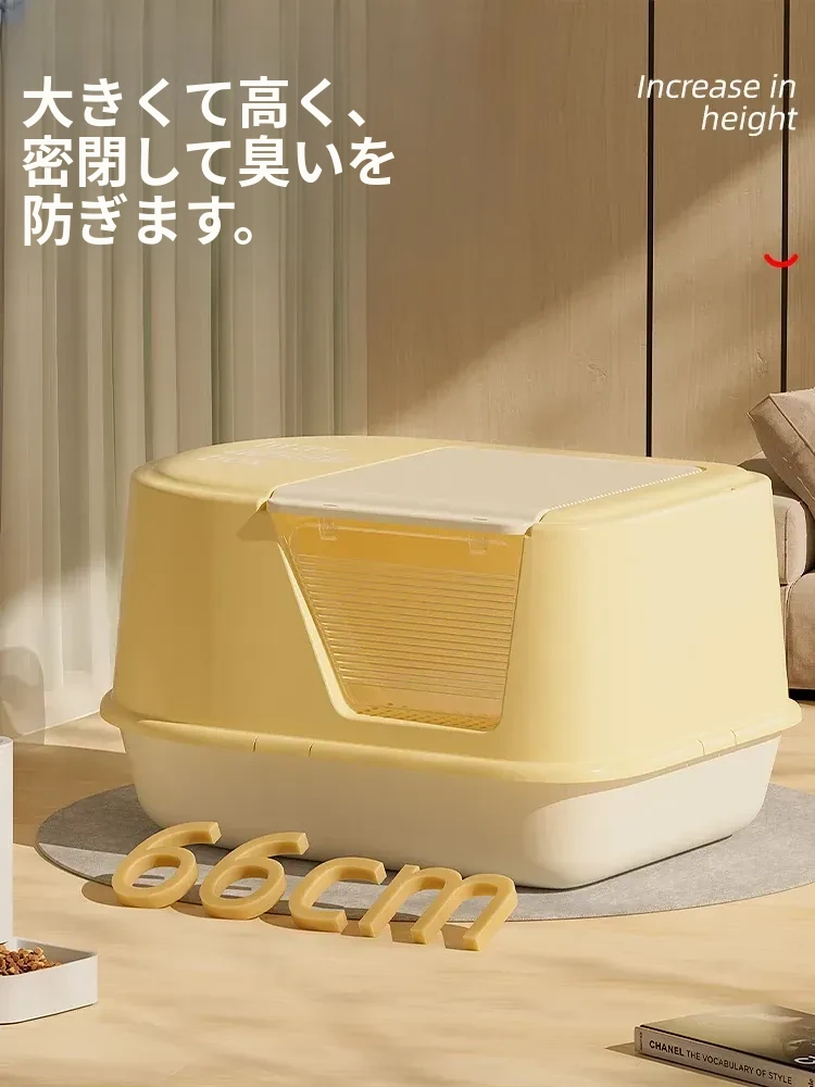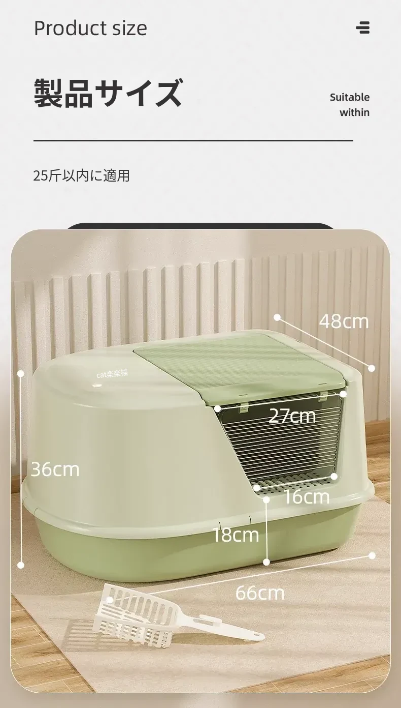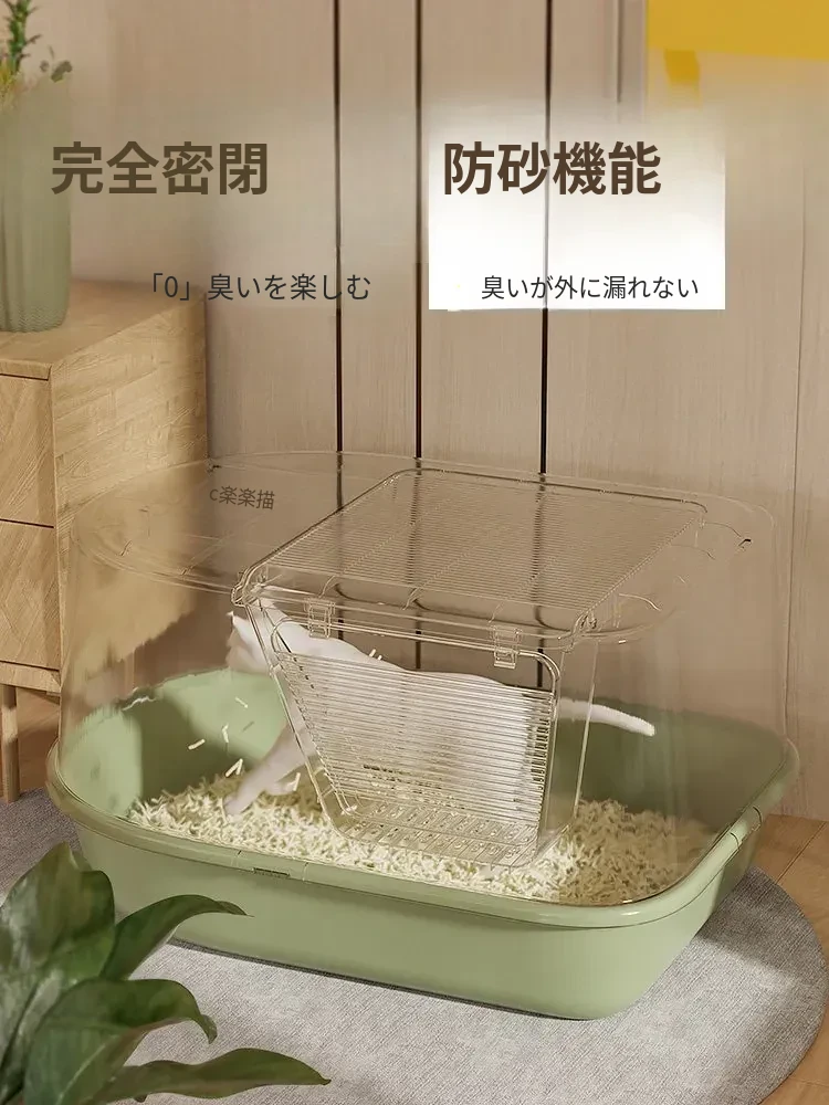 超大型ハーフクローズドキャットトイレ - ラグドール猫にも最適!防水マット付きで飛び散り防止、臭いをシャットアウト!子猫にも安心なトイレ用品。