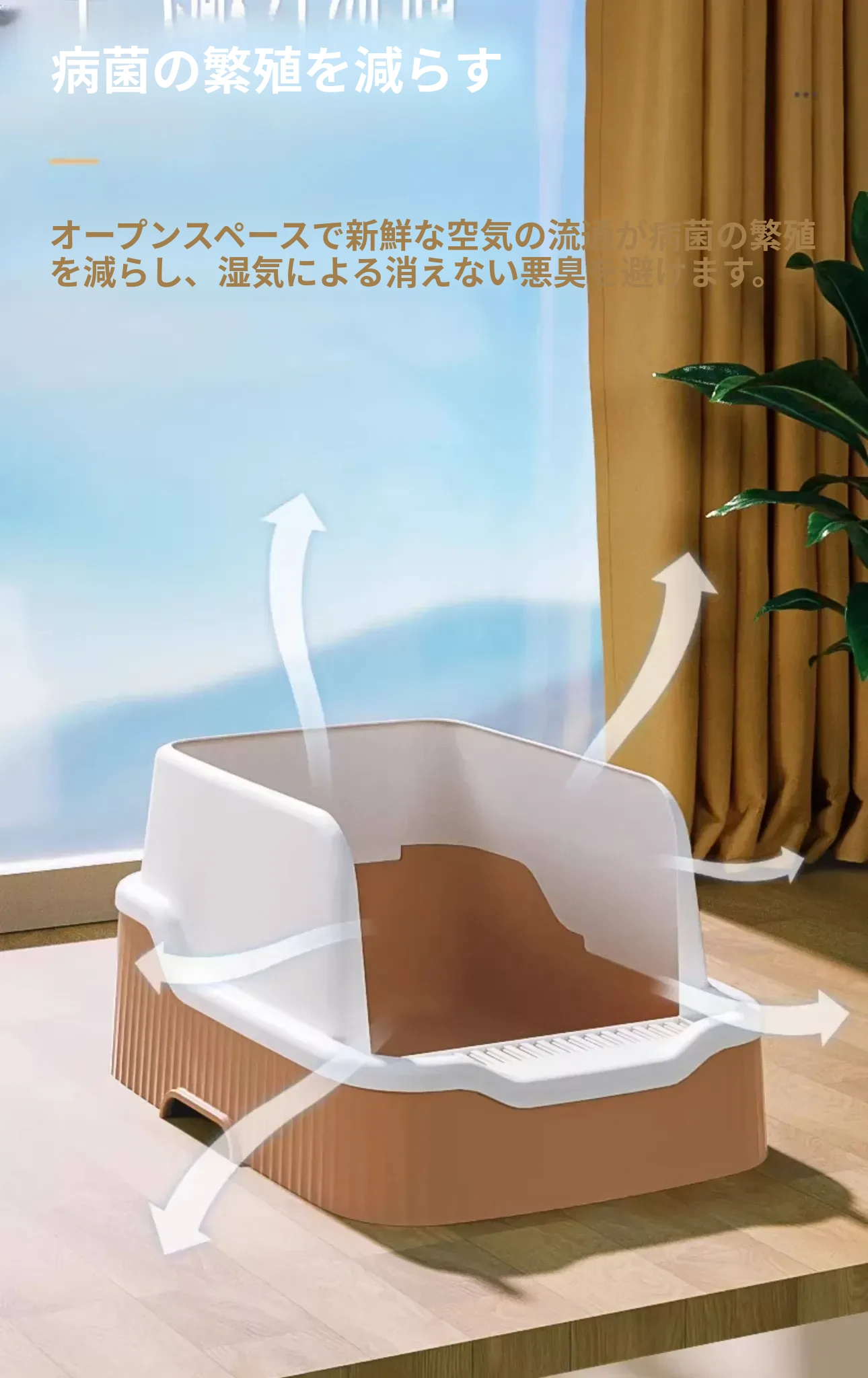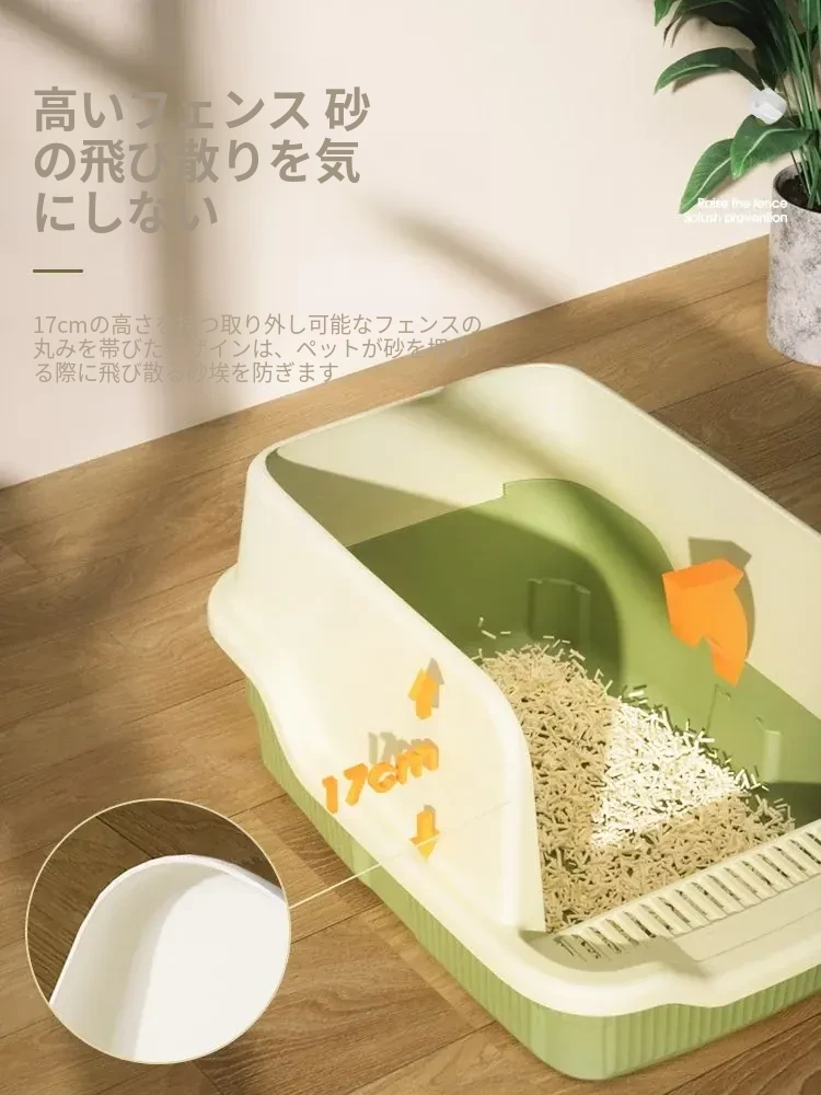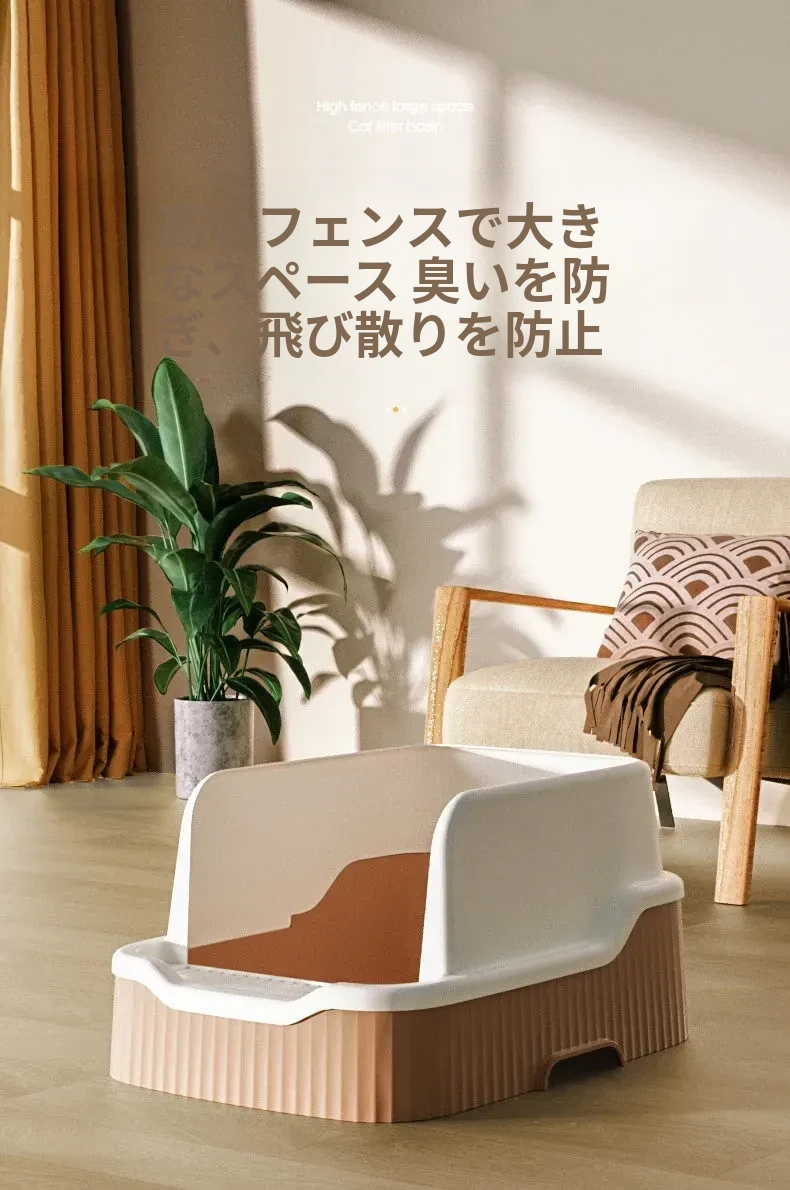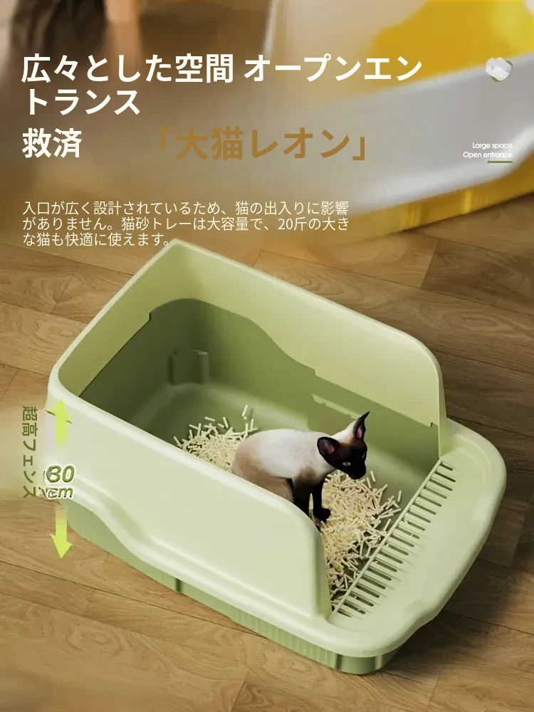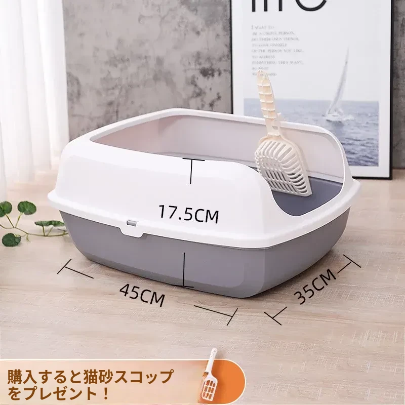超大型猫用トイレ!高めの全半封閉デザインで、外に飛び散らず安心。広々としたスペースで、猫ちゃんも快適に利用できます。特大サイズの猫砂盆で、愛猫のトイレタイムをもっと楽しく!