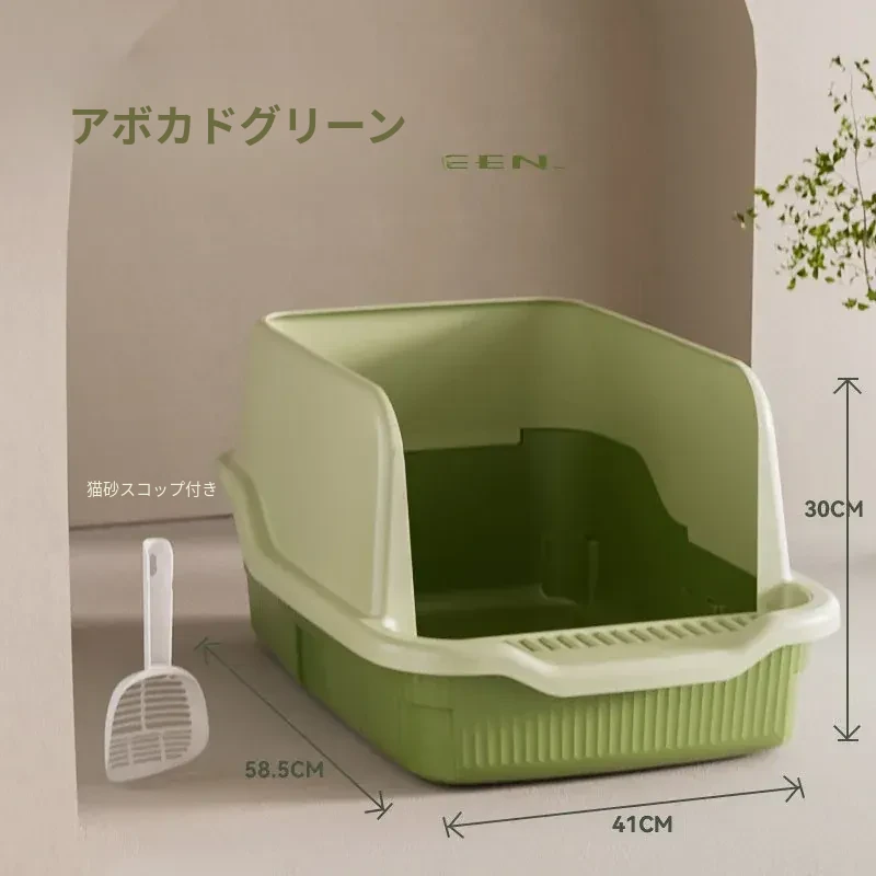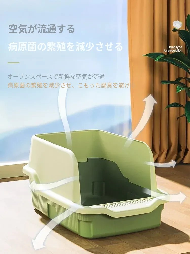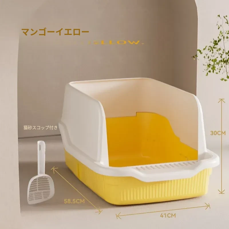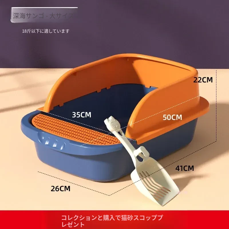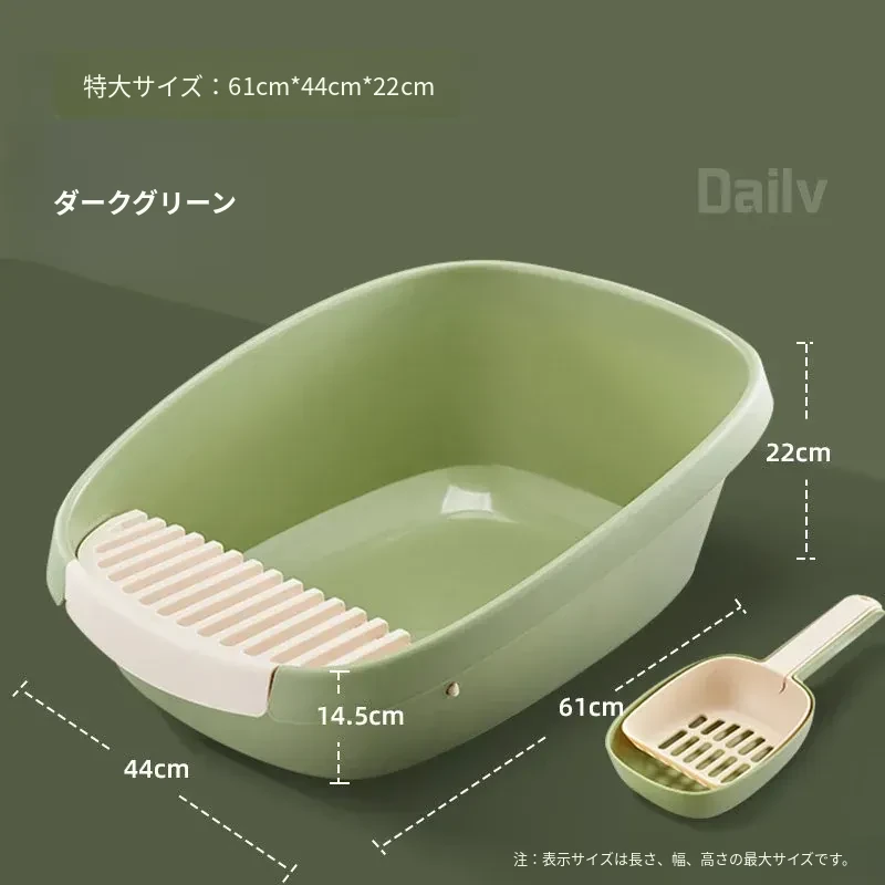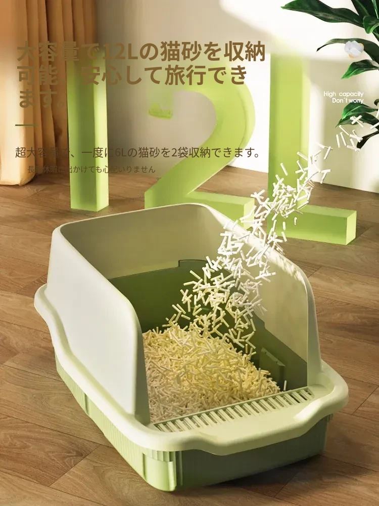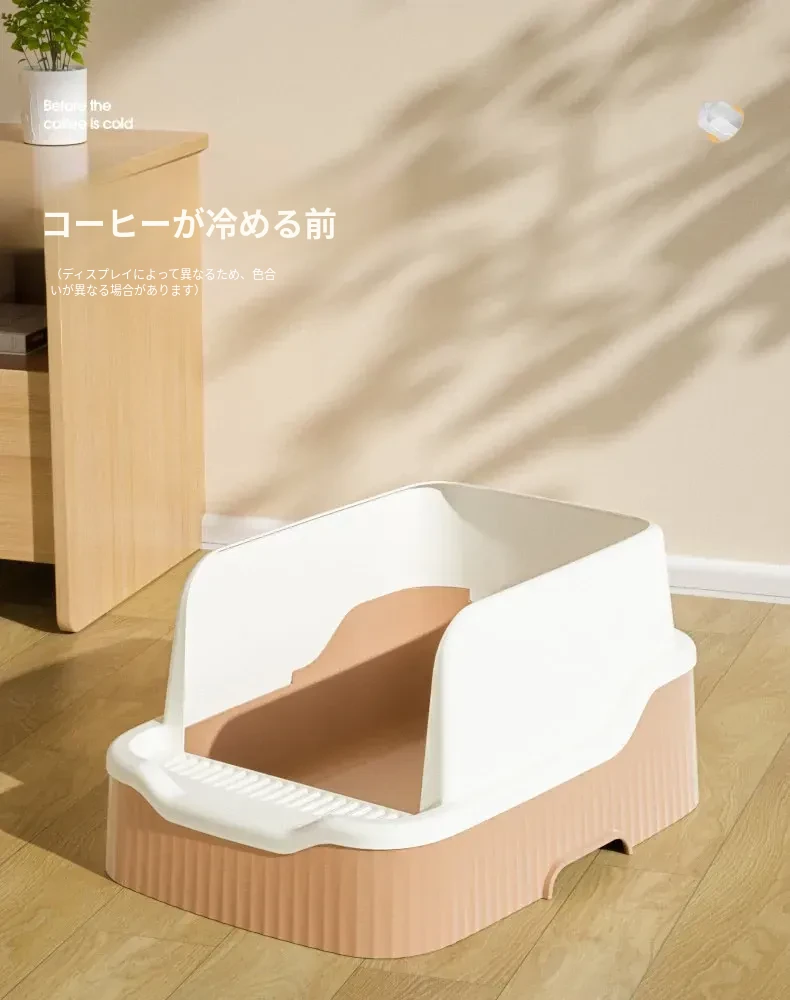 超大型猫用トイレ!高めの全半封閉デザインで、外に飛び散らず安心。広々としたスペースで、猫ちゃんも快適に利用できます。特大サイズの猫砂盆で、愛猫のトイレタイムをもっと楽しく!