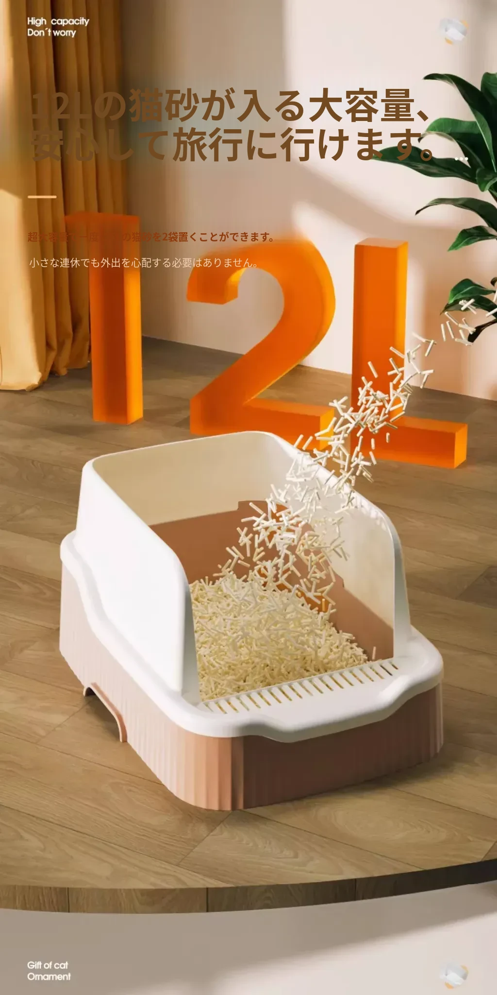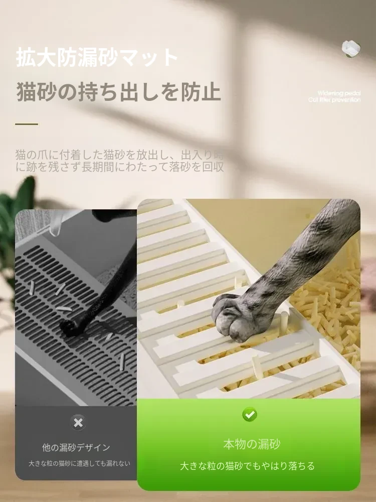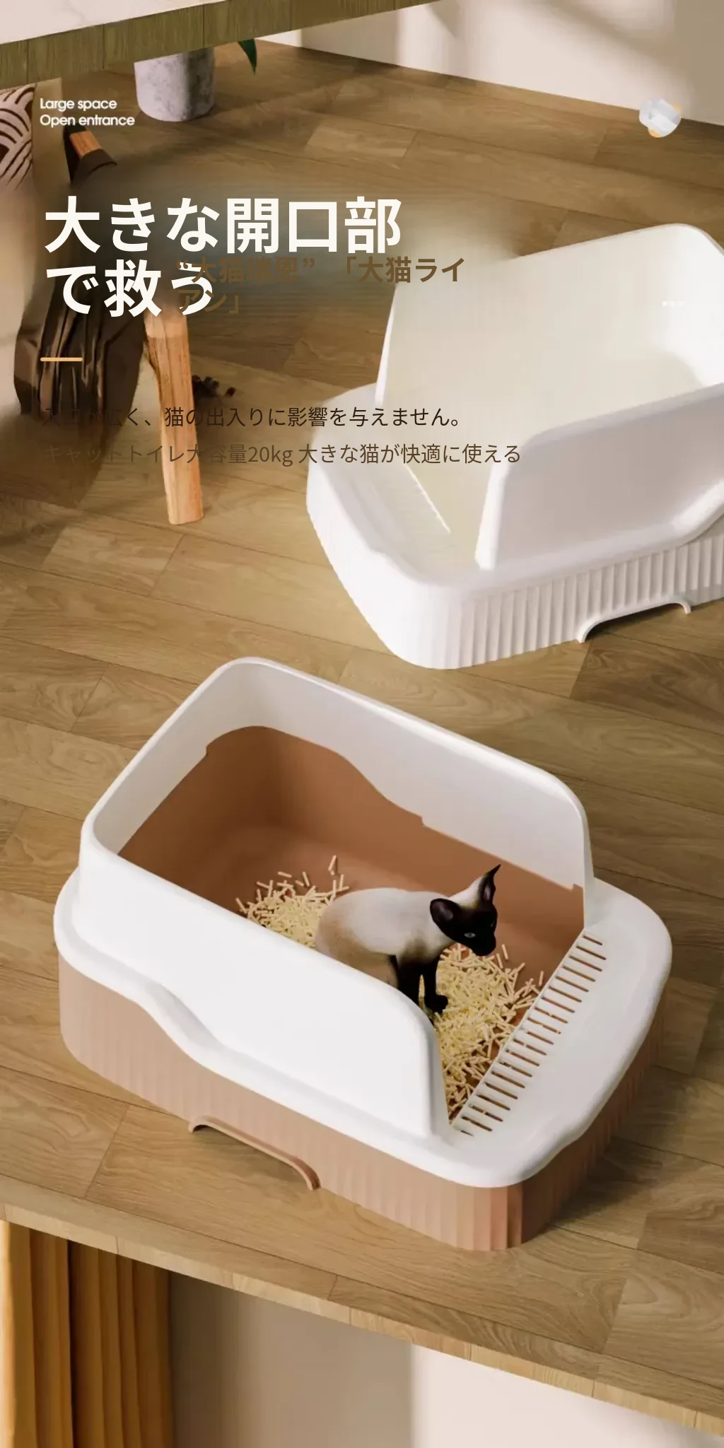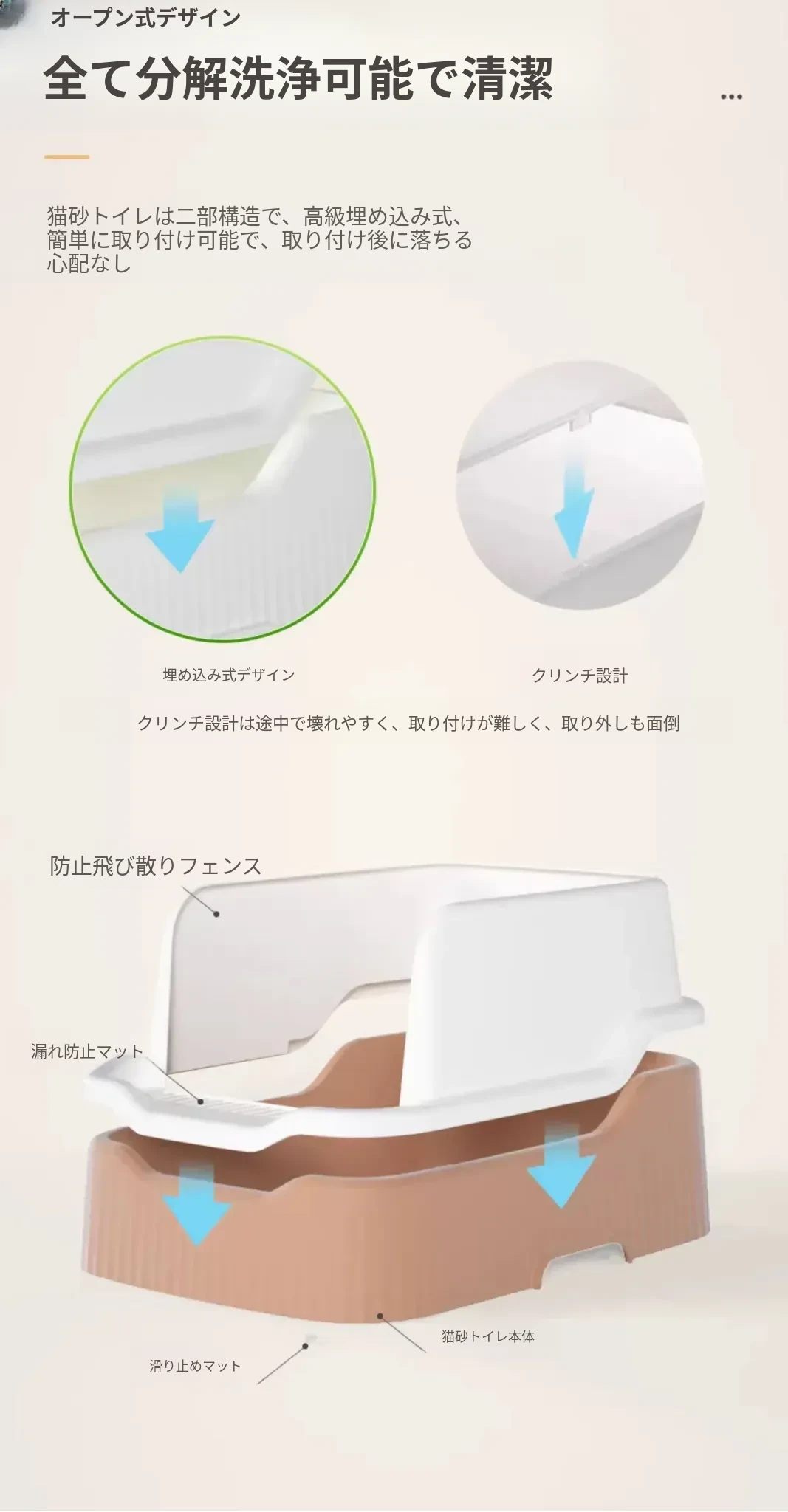 超大型猫用トイレ!高めの全半封閉デザインで、外に飛び散らず安心。広々としたスペースで、猫ちゃんも快適に利用できます。特大サイズの猫砂盆で、愛猫のトイレタイムをもっと楽しく!