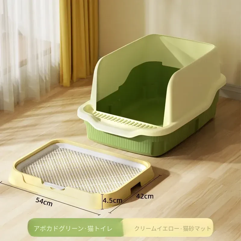 猫トイレメイン画像モデル グリーン+クリームイエロー猫砂マット