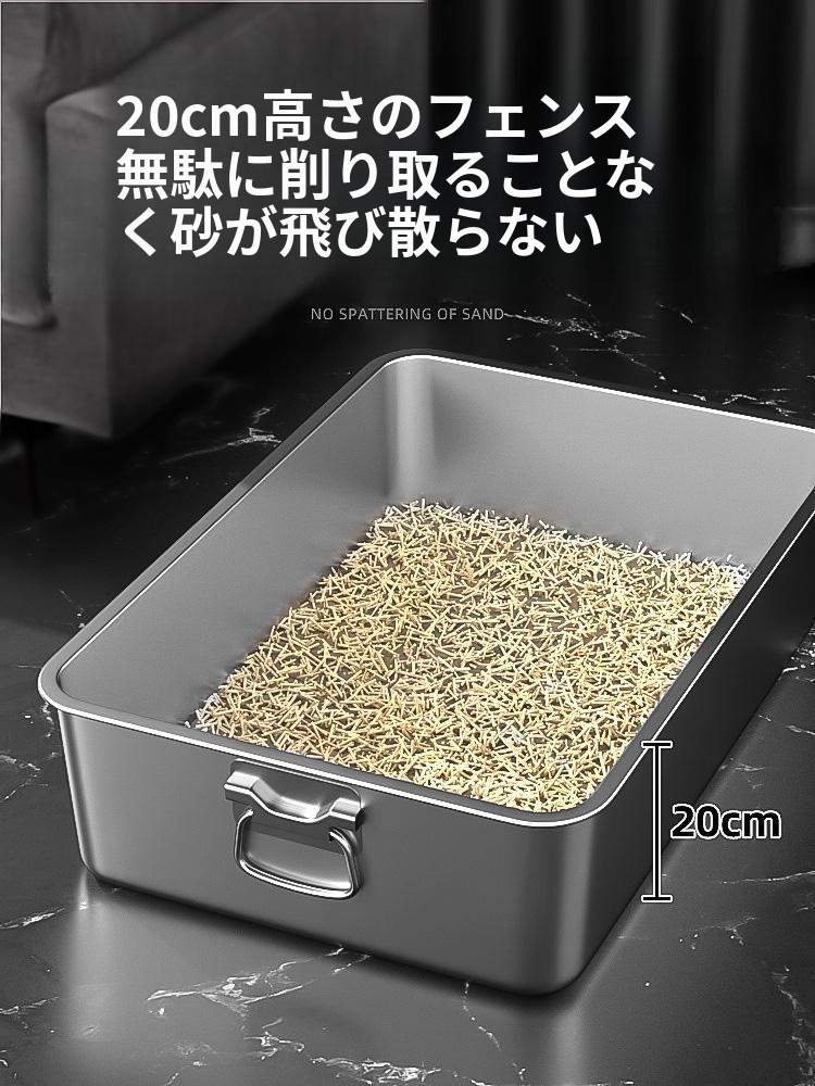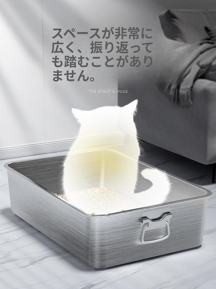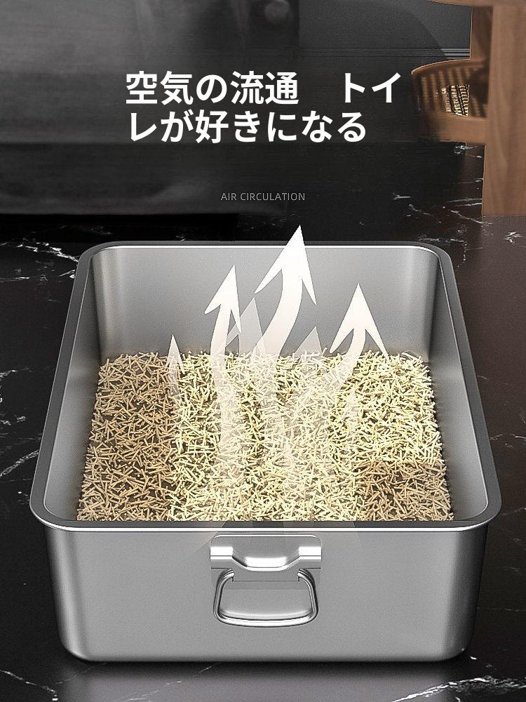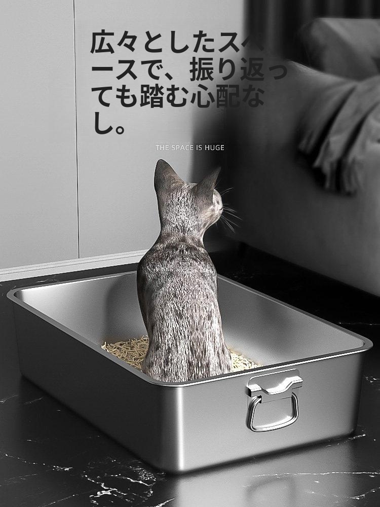 猫用ステンレスオープン型トイレ、大型特別設計!防止飛び散り!快適で清潔な猫砂盆で、愛猫が大満足!