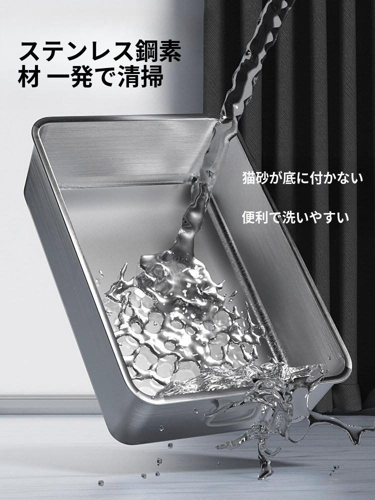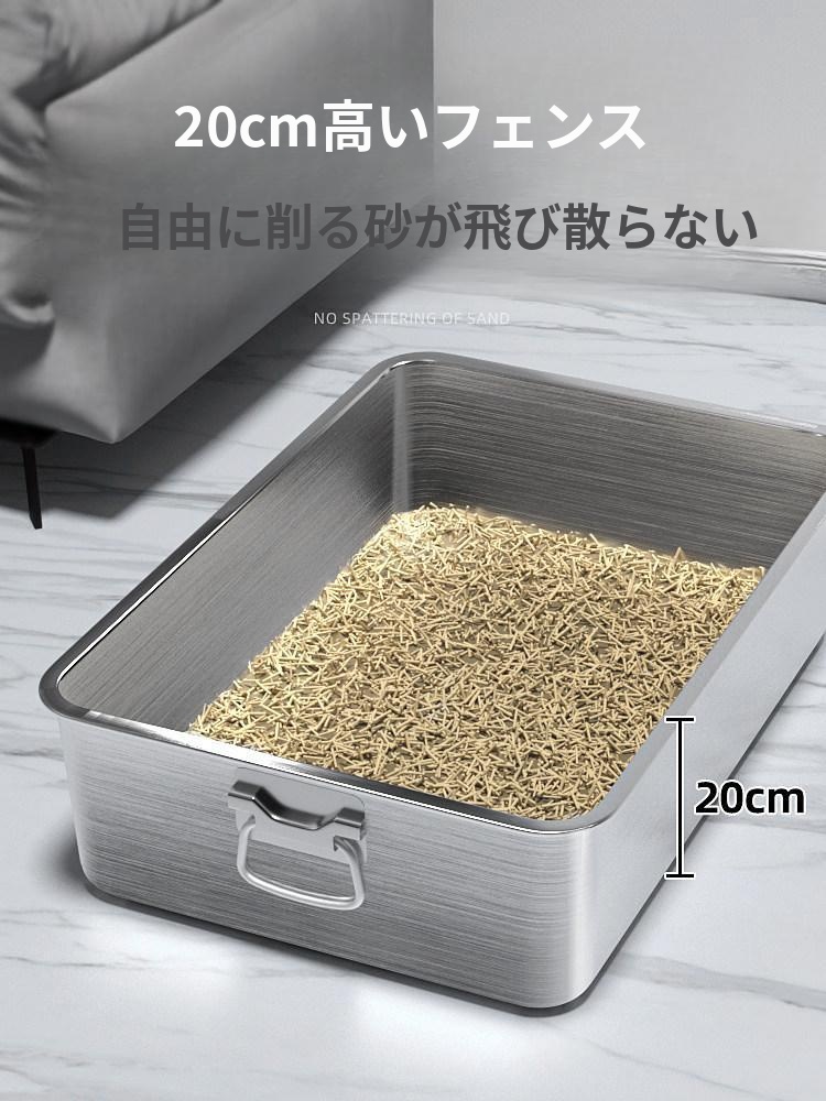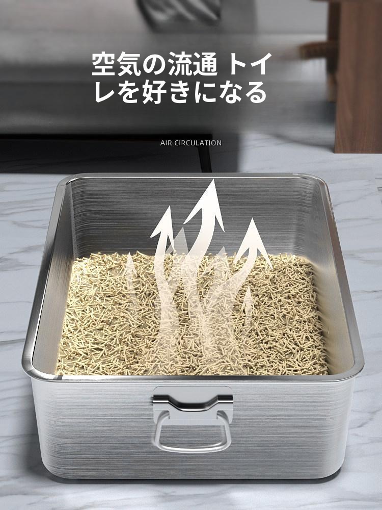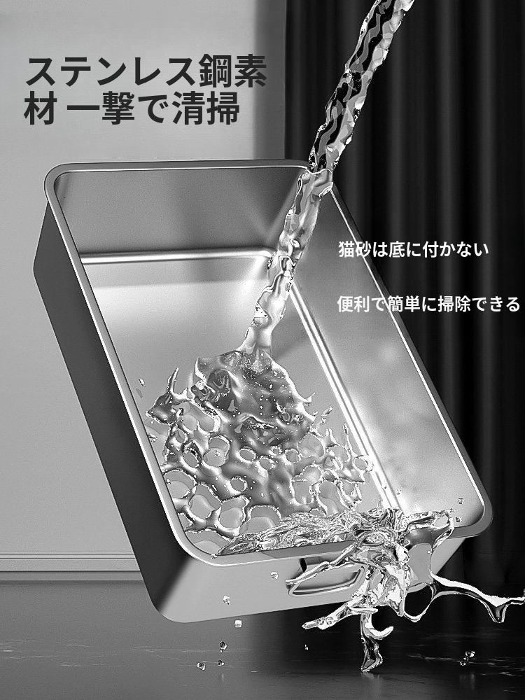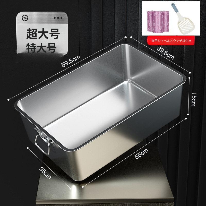 猫用ステンレスオープン型トイレ、大型特別設計!防止飛び散り!快適で清潔な猫砂盆で、愛猫が大満足!
