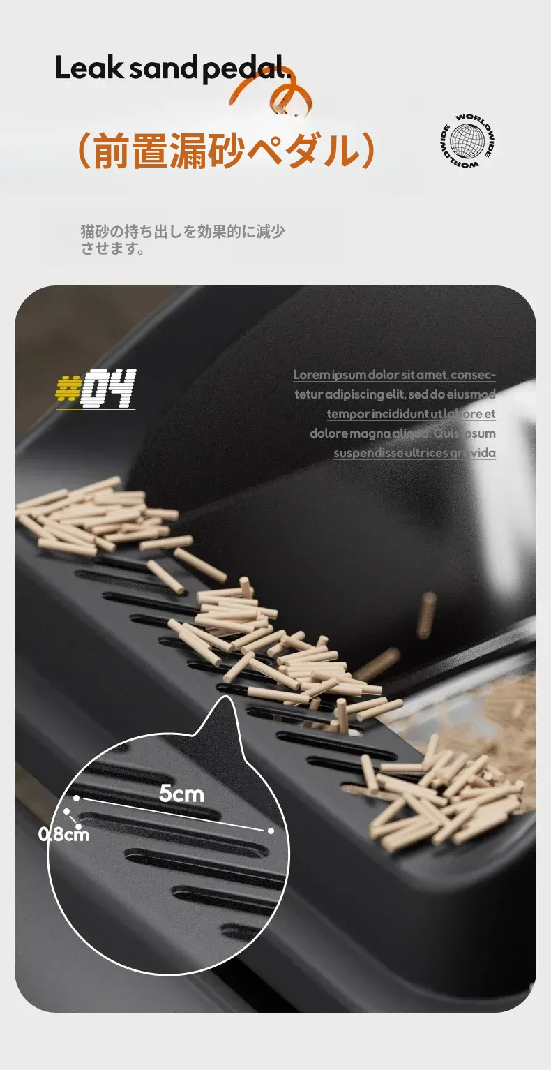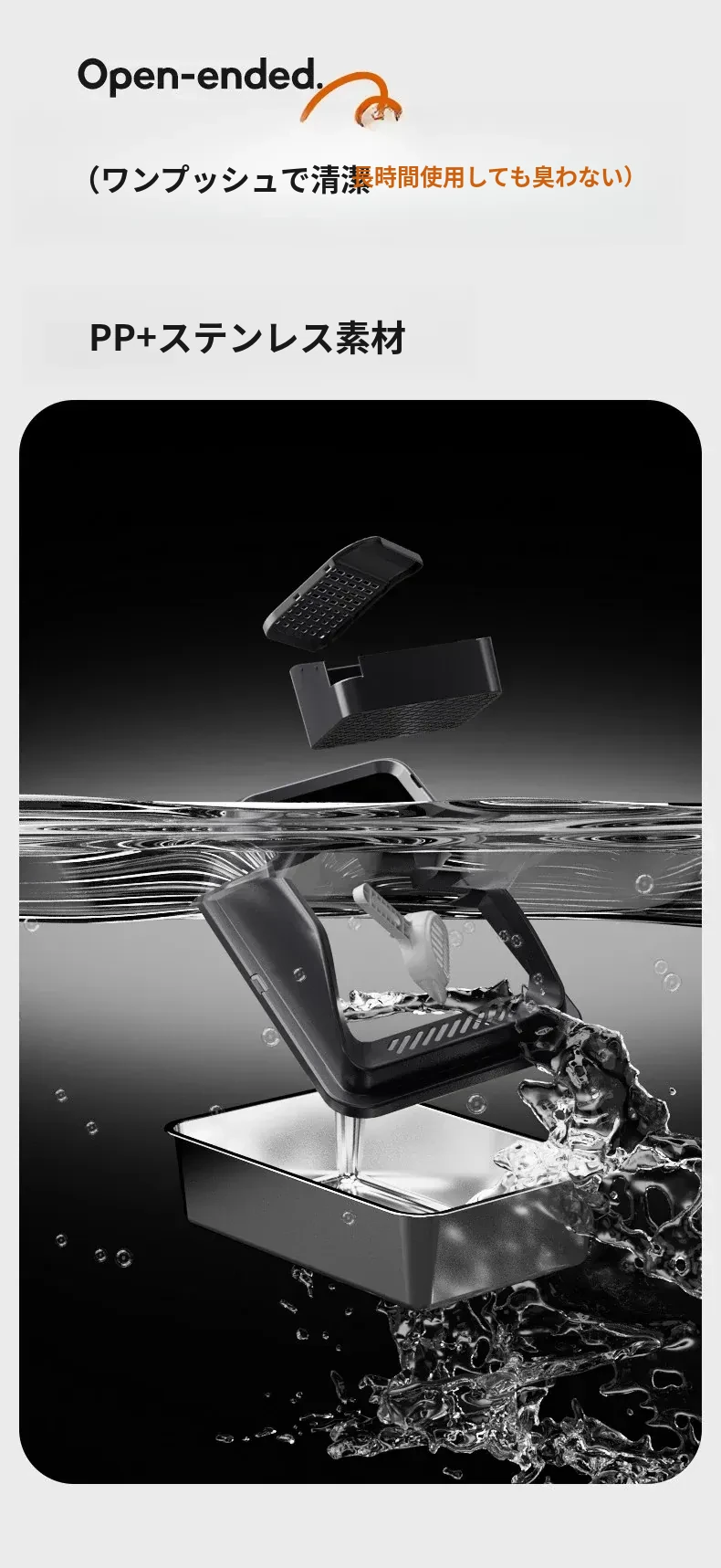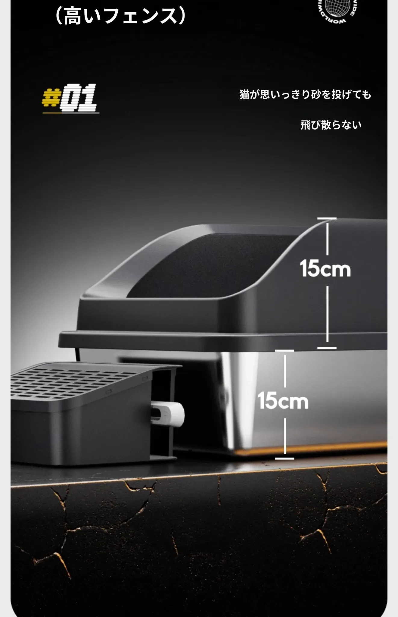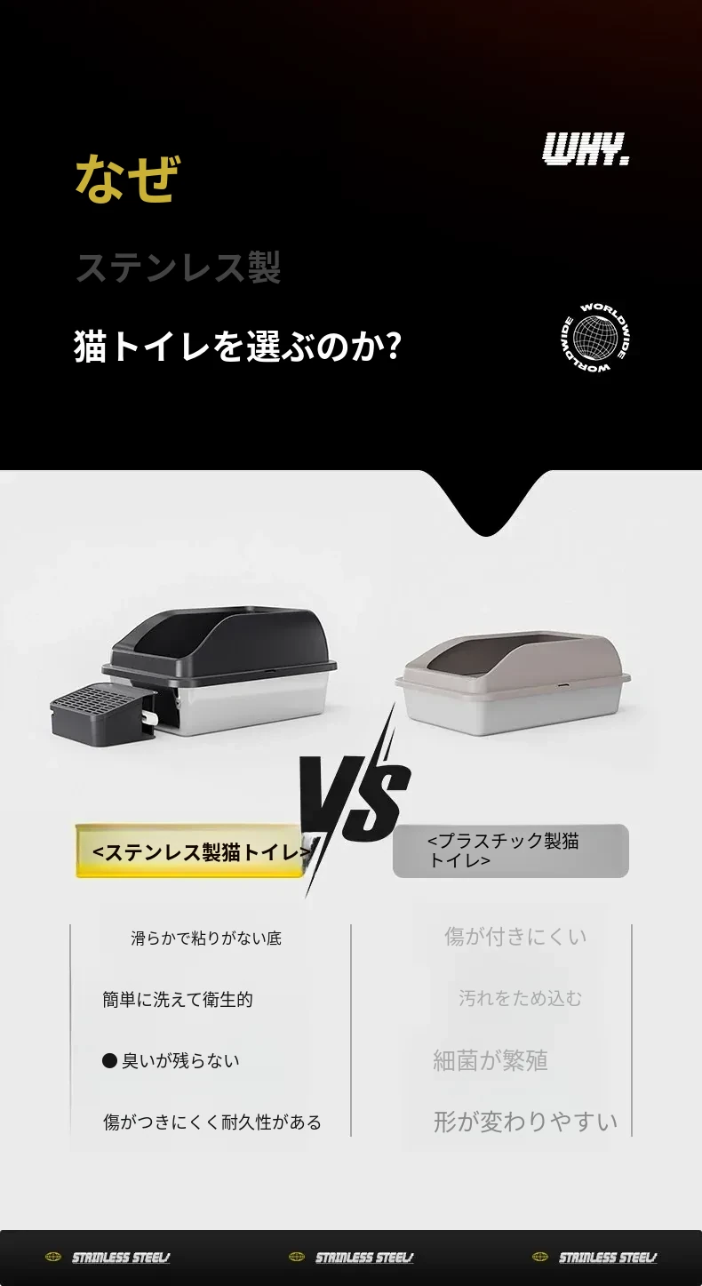 ステンレス製の超大型キャットトイレ!高い防飛散設計で安心、半密閉型のペット専用オープンキャットトレイ。愛猫の快適なトイレタイムを実現します!