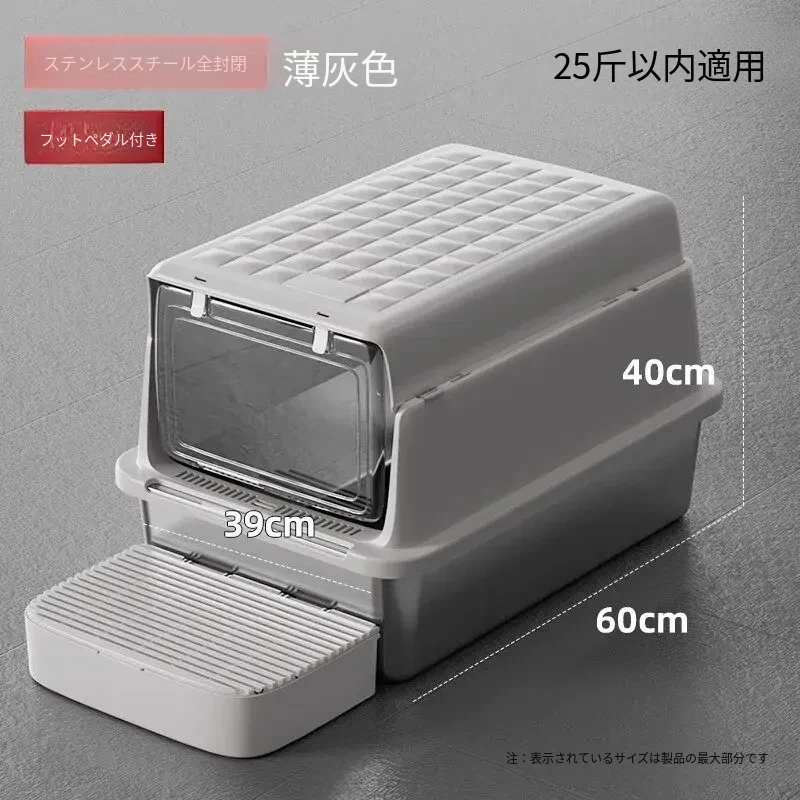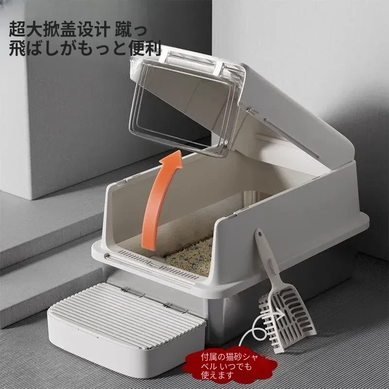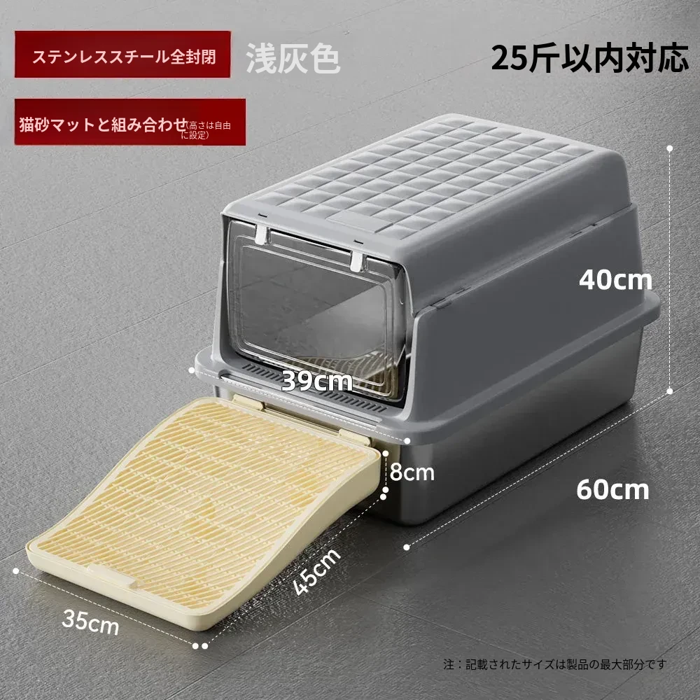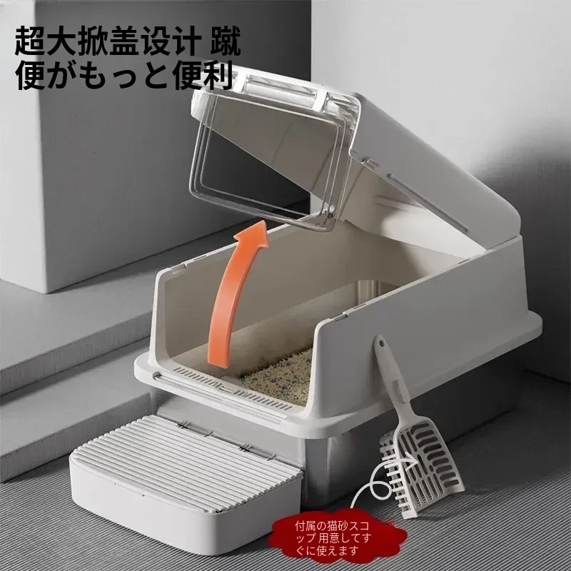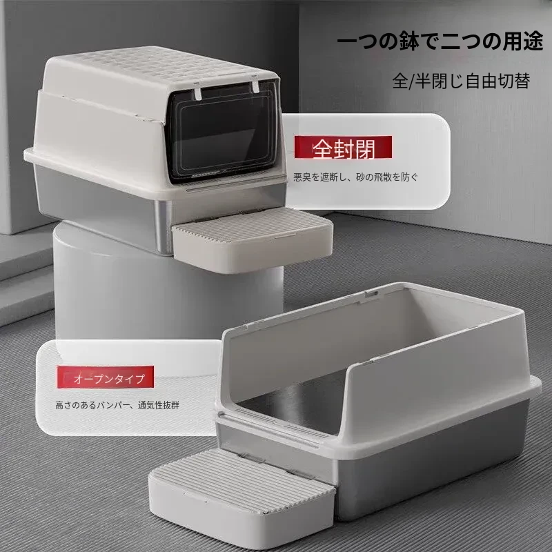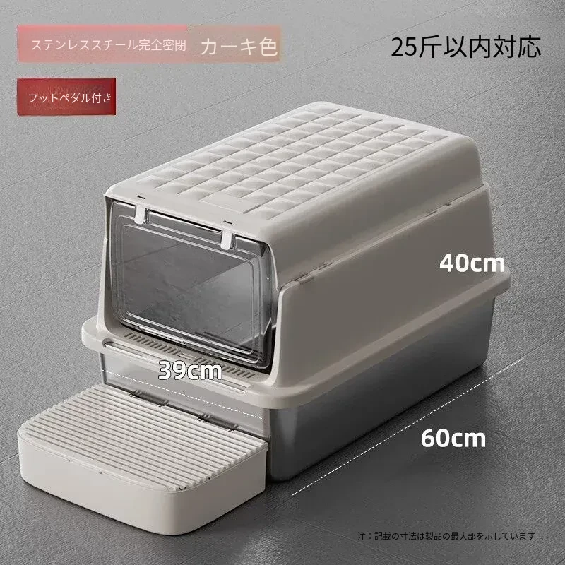 超大型ステンレス製キャットトイレ|防水・防砂・高くて広々としたデザインで、猫ちゃんも快適!砂が外に出にくい密閉型トイレ、踏み台付きでお手入れも簡単!あなたの愛猫に最適な選択です。