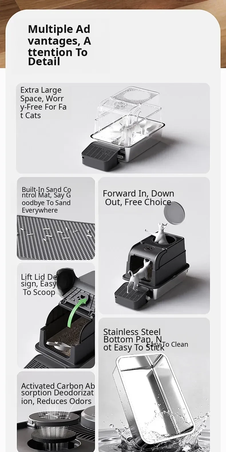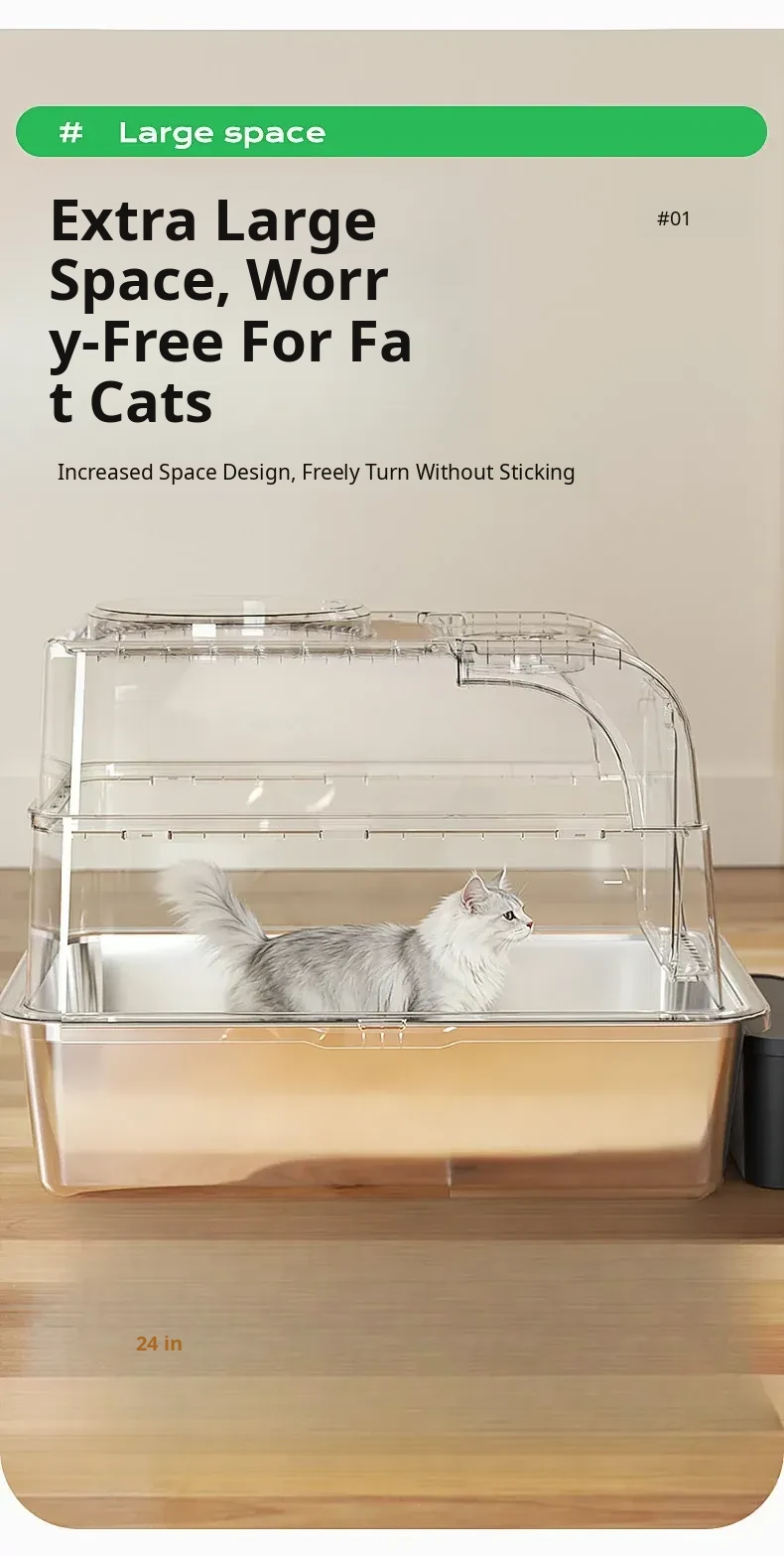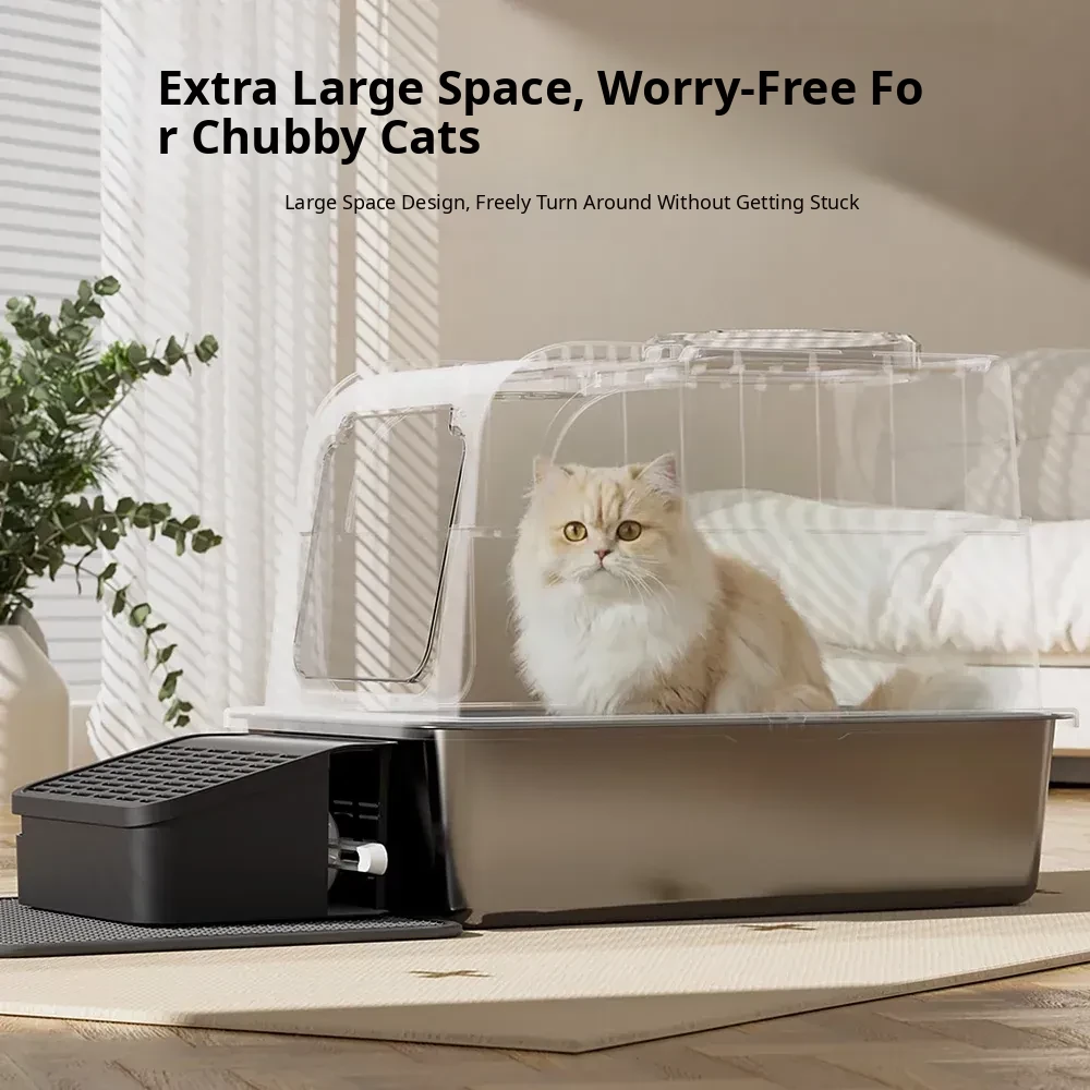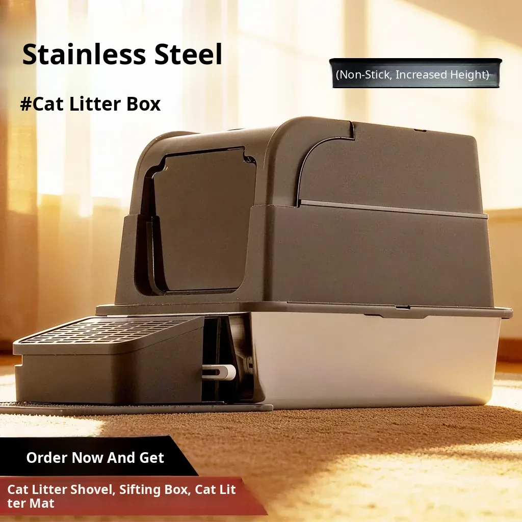 Extra Large Stainless Steel Cat Litter Box - Splash-Proof, Odor-Resistant, Fully Enclosed Design for Kittens and Cats - Ideal Pet Toilet for a Clean Home