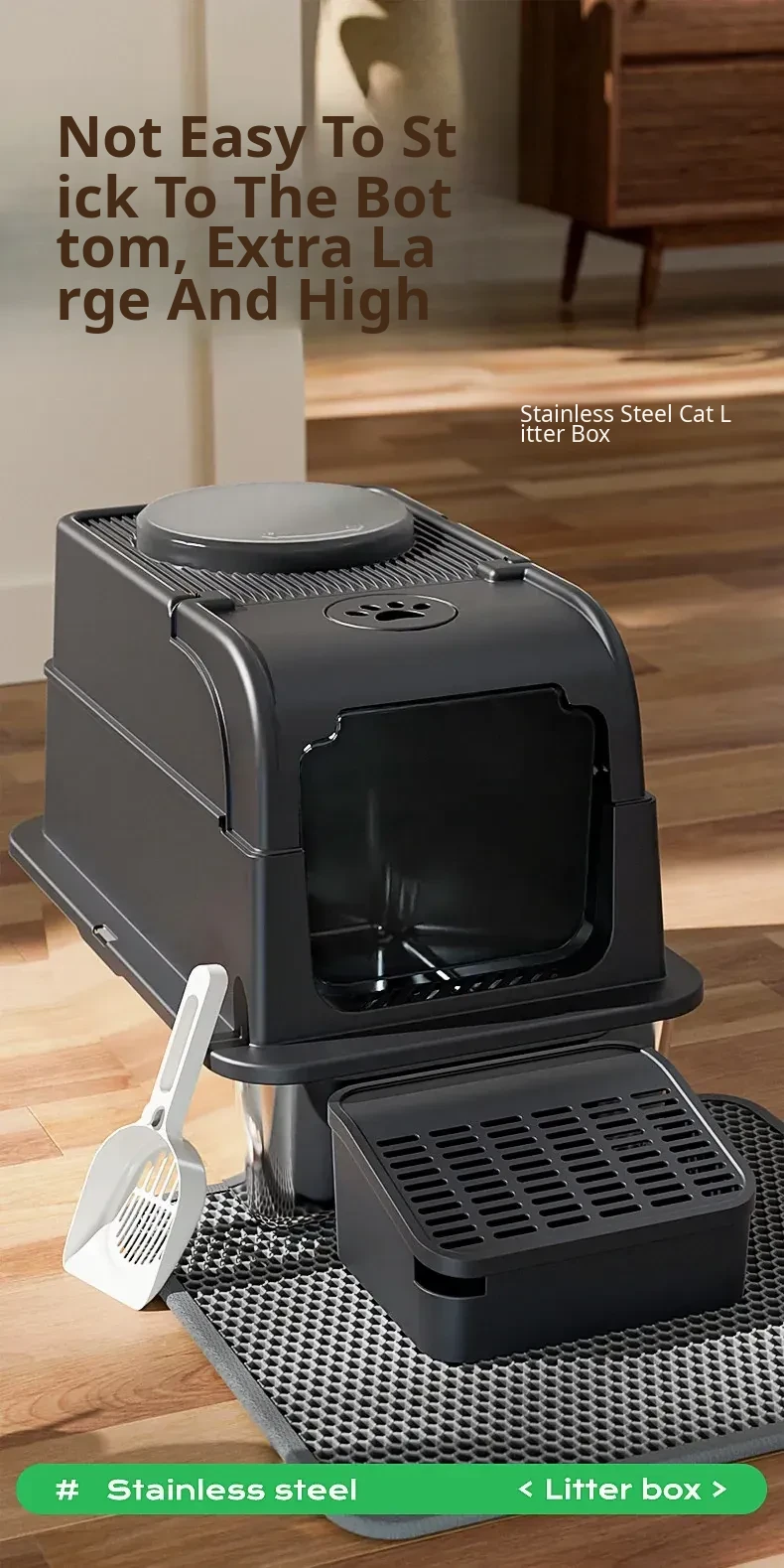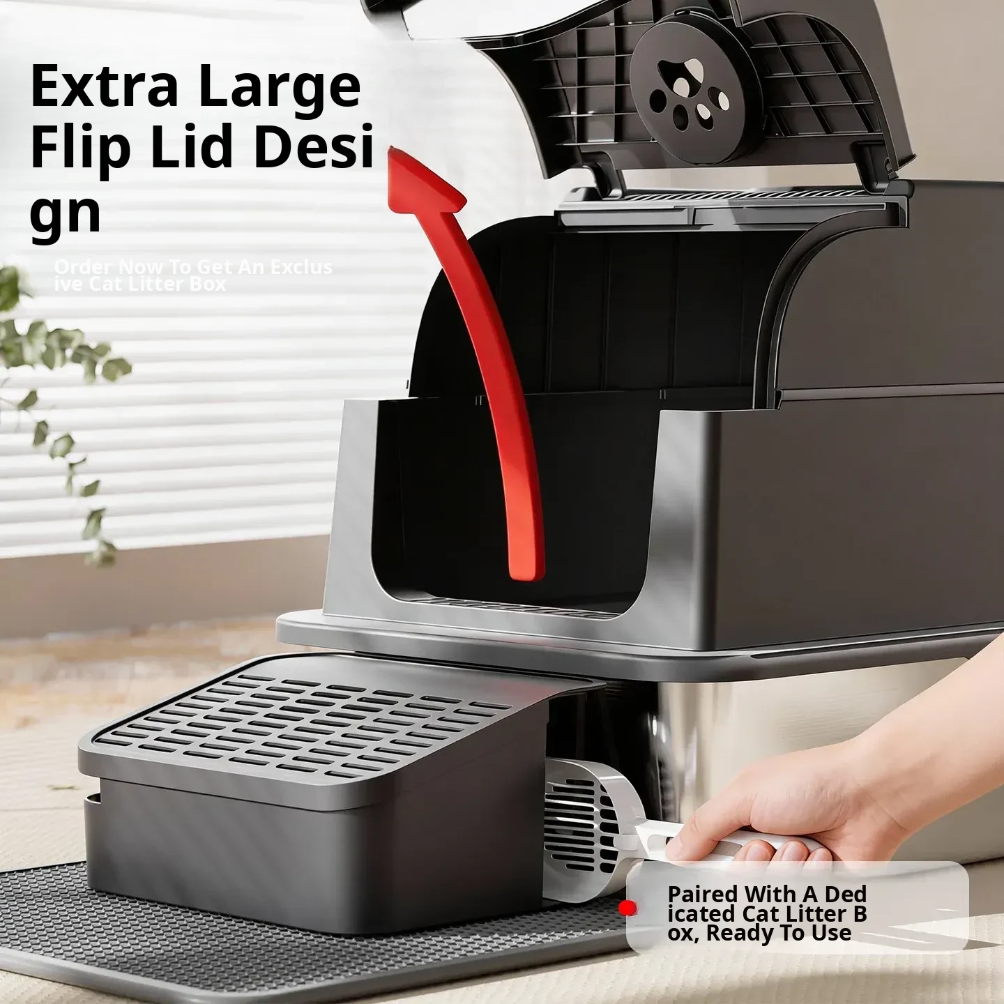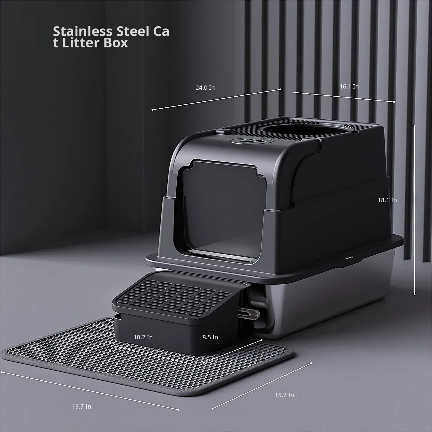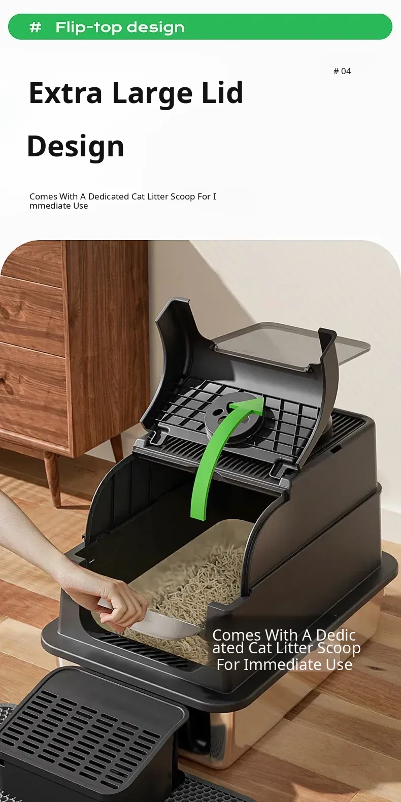 Stainless Steel Flip-Top Cat Litter Box