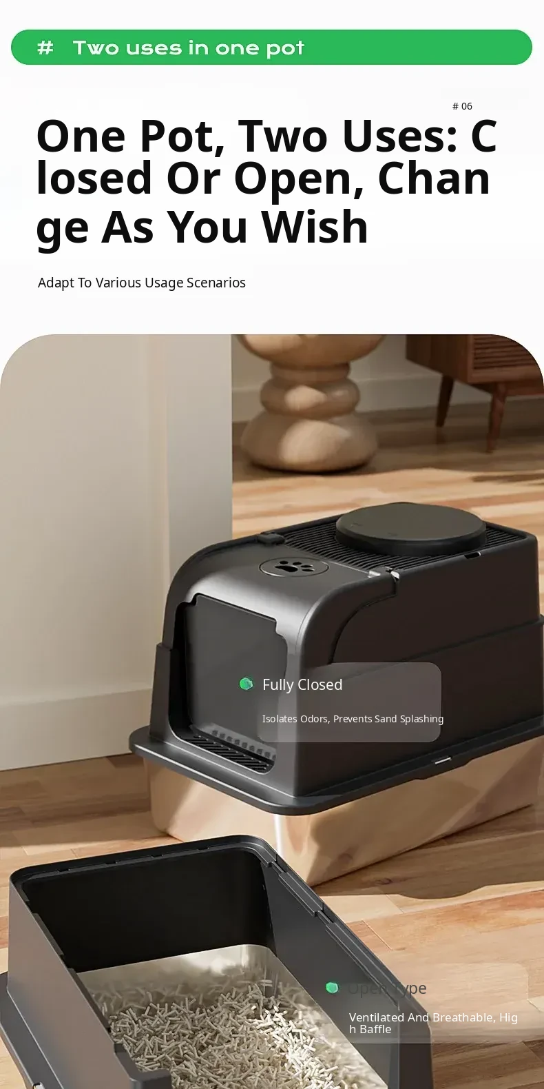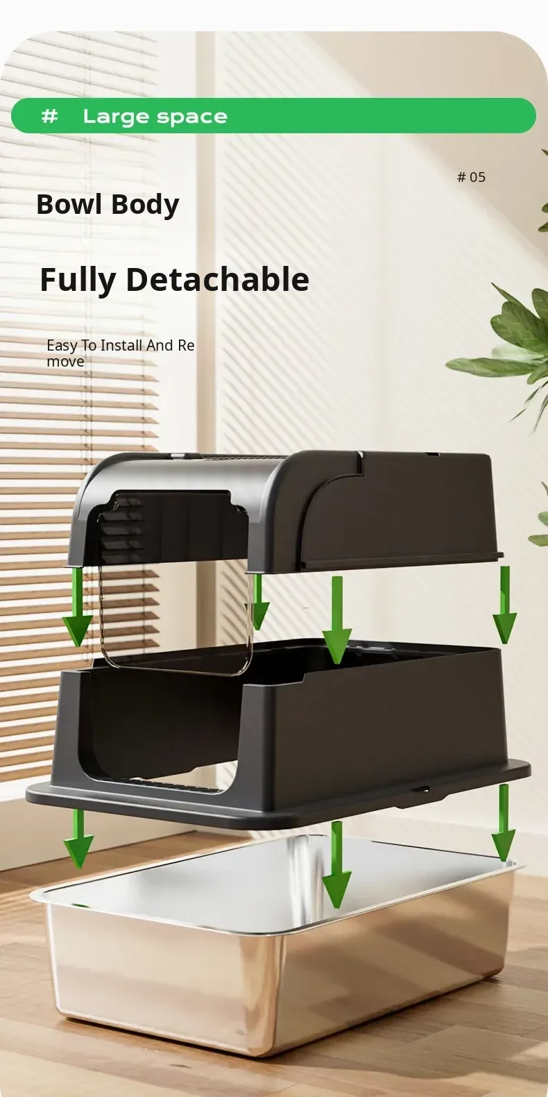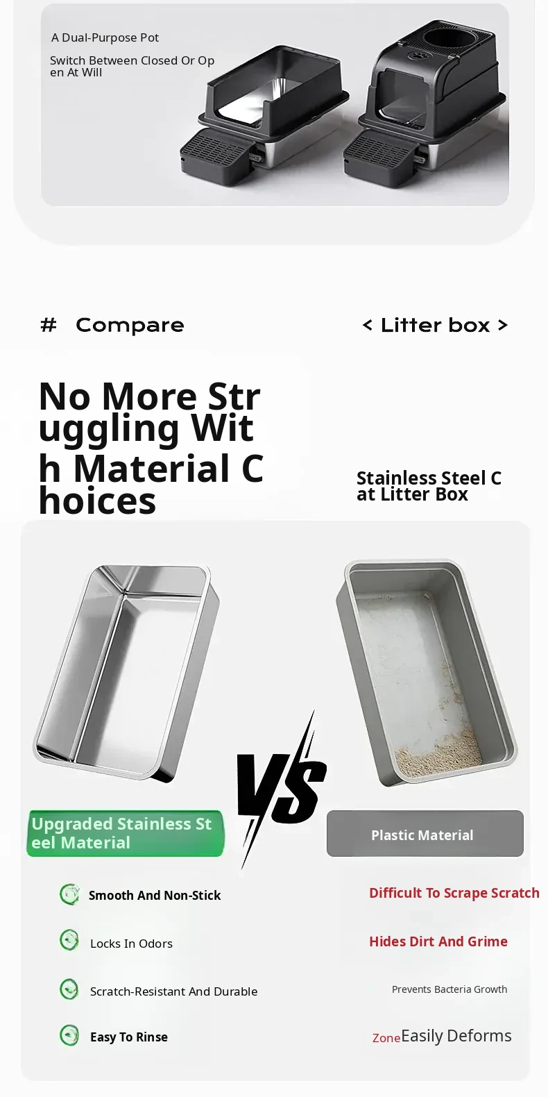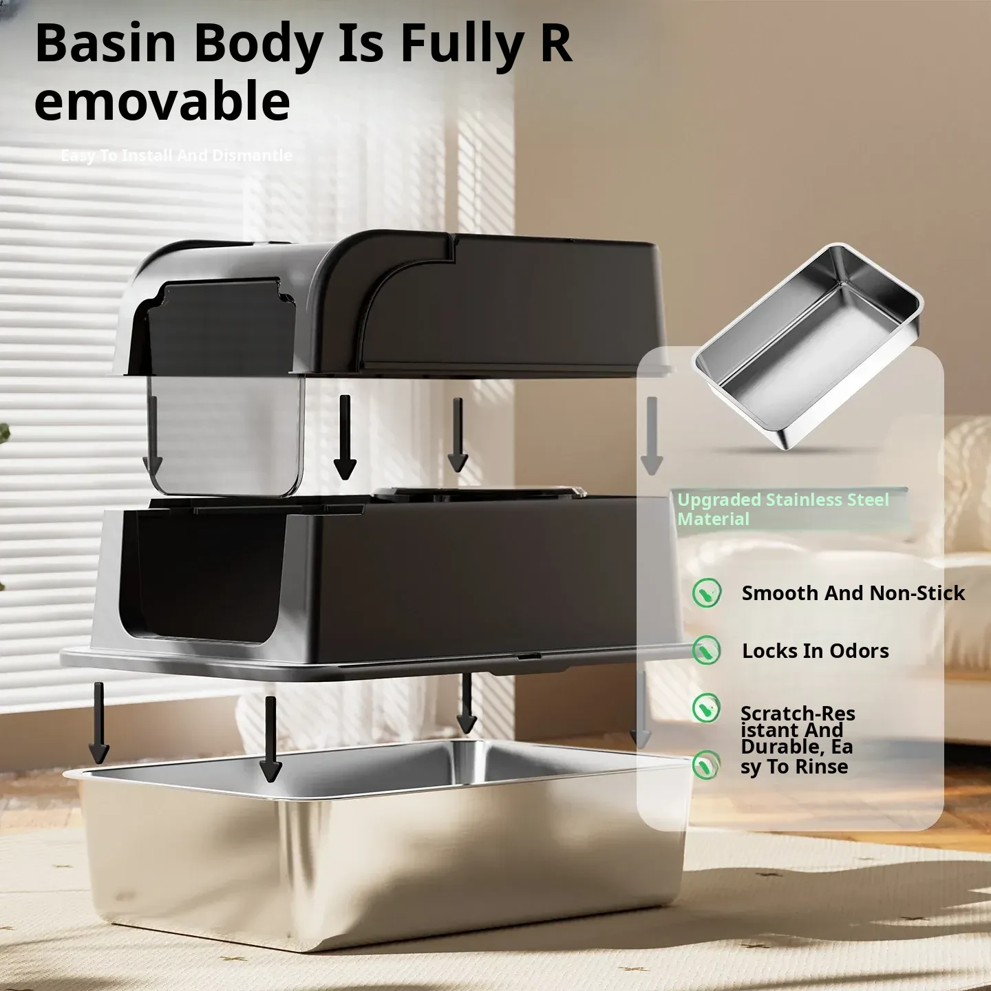 Stainless Steel Flip-Top Cat Litter Box
