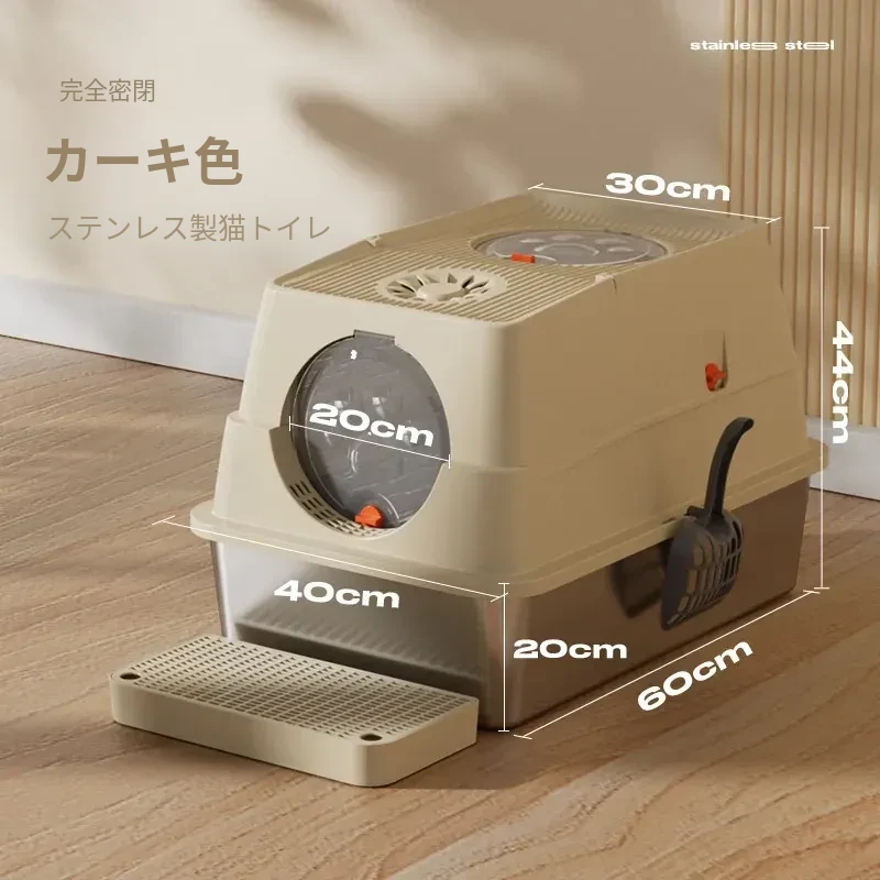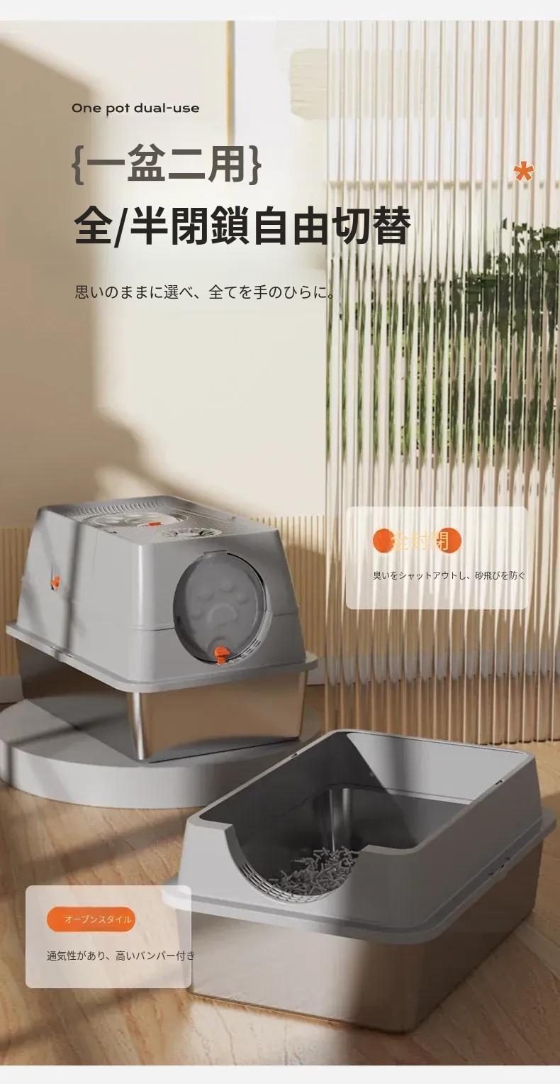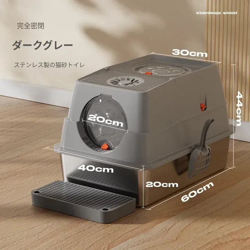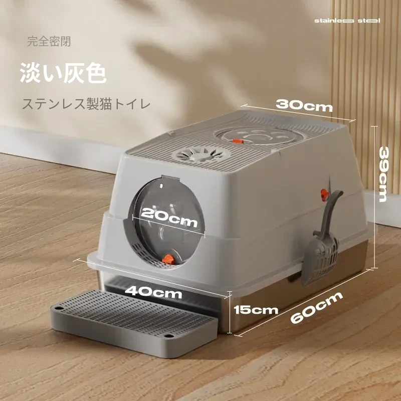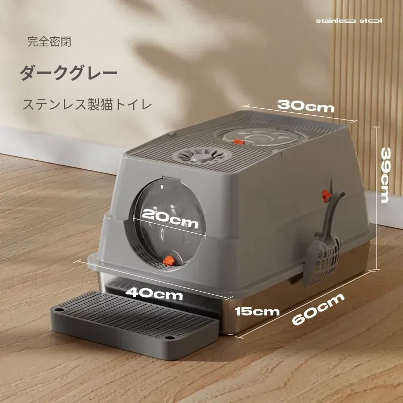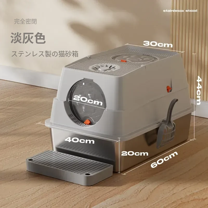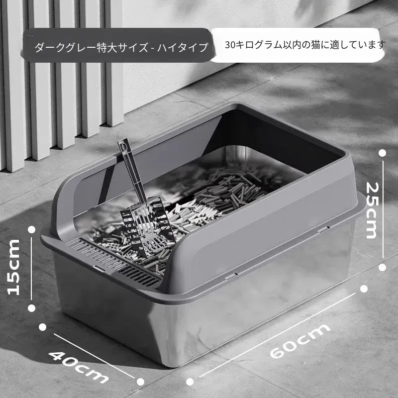 ステンレス製の超大型猫トイレ - スプラッシュ防止全閉型!子猫にも最適な深くて高い特大サイズで、清潔さを保ちながら快適なトイレタイムを実現します。猫ちゃんのための最高の選択!