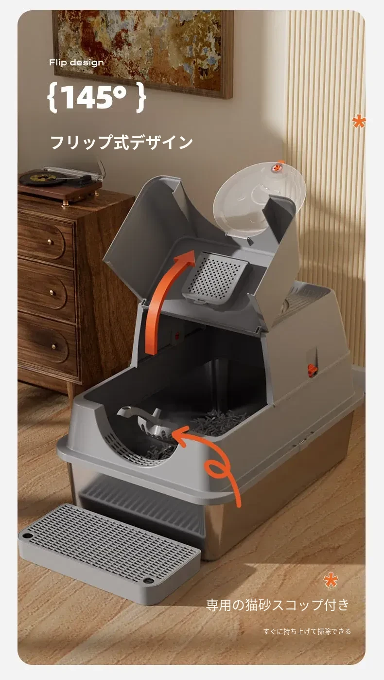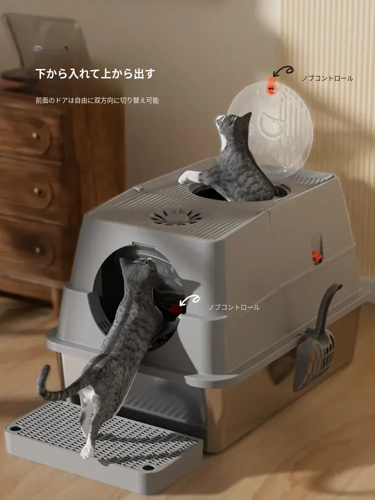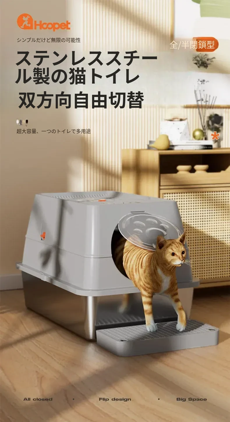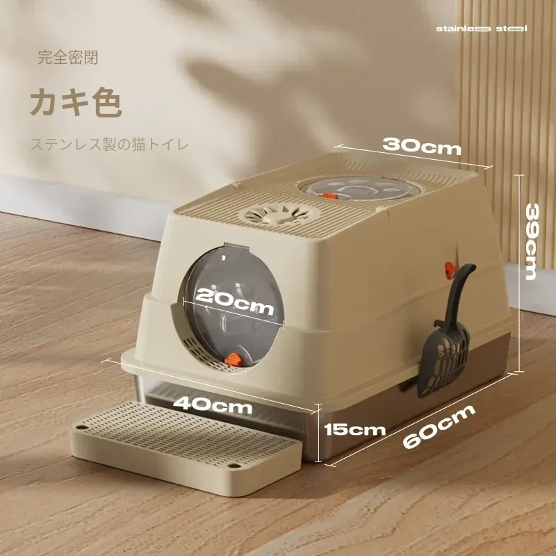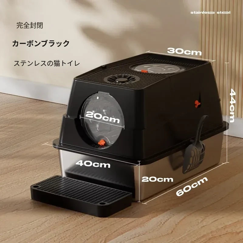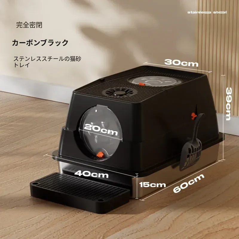 ステンレス製の超大型猫トイレ - スプラッシュ防止全閉型!子猫にも最適な深くて高い特大サイズで、清潔さを保ちながら快適なトイレタイムを実現します。猫ちゃんのための最高の選択!