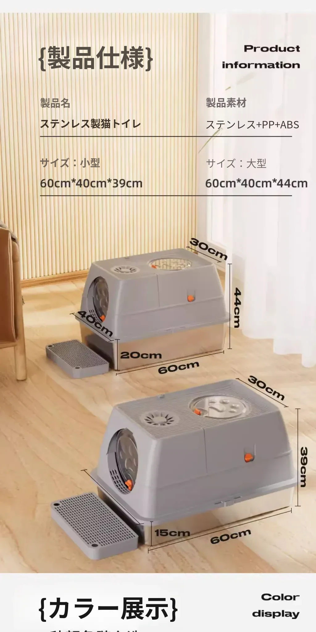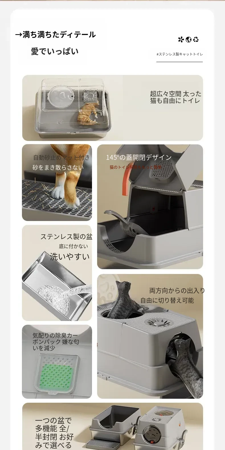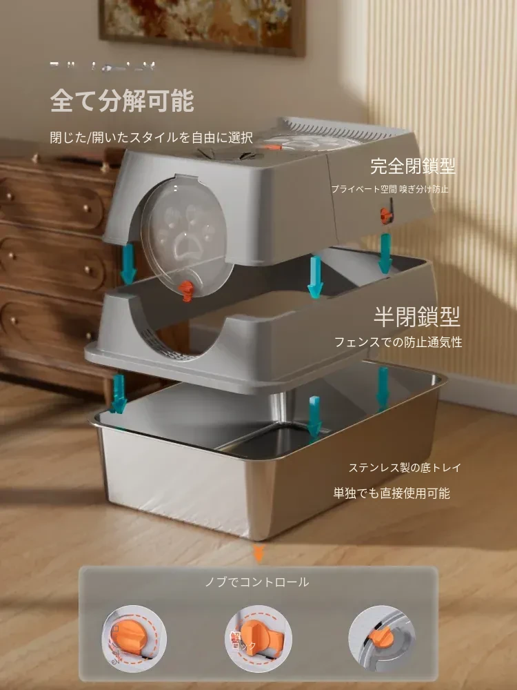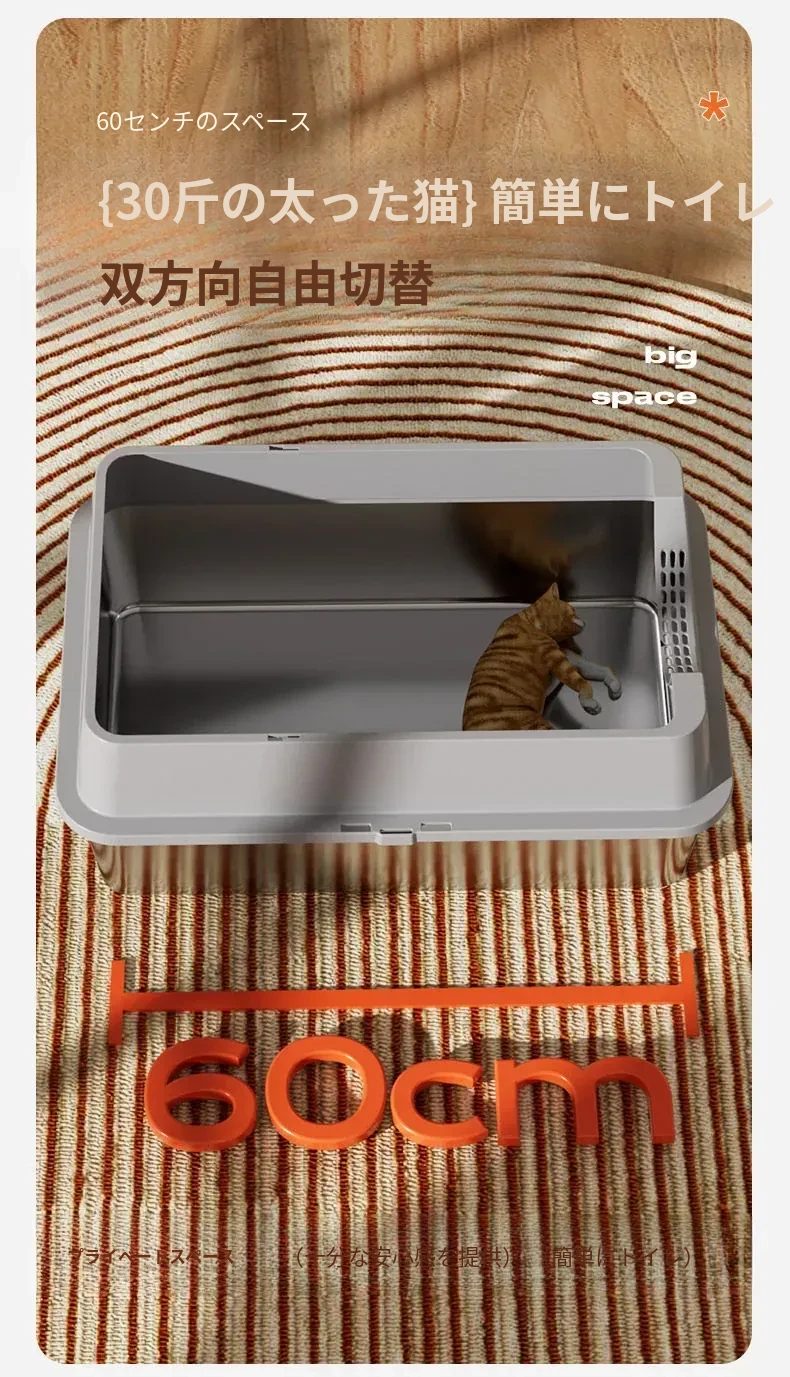 ステンレス製の超大型猫トイレ - スプラッシュ防止全閉型!子猫にも最適な深くて高い特大サイズで、清潔さを保ちながら快適なトイレタイムを実現します。猫ちゃんのための最高の選択!