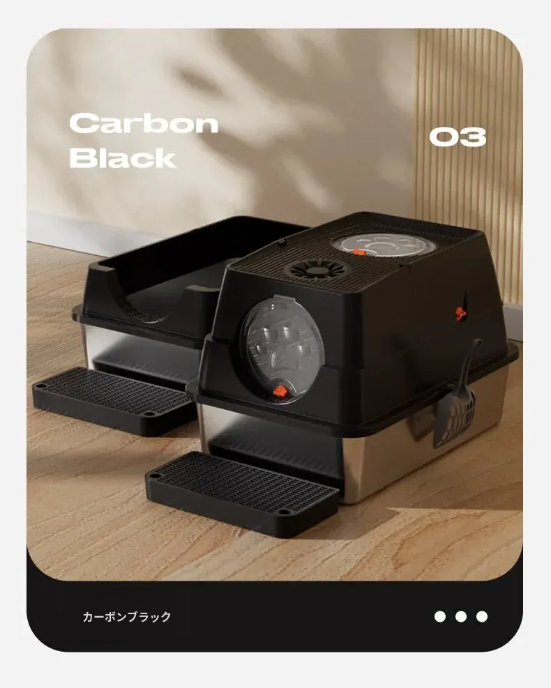 ハイタイプ-黒色-【コントロール砂板+猫砂シャベル+消臭炭パック+滑り止めシール】
