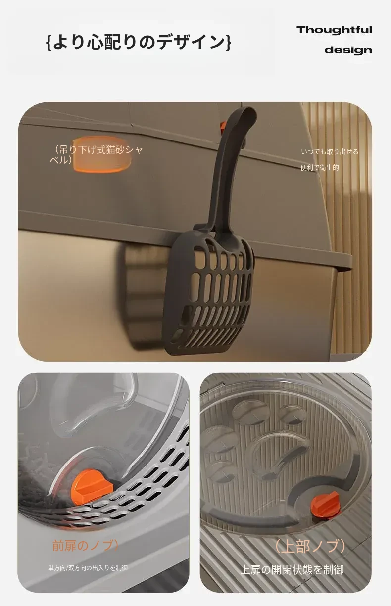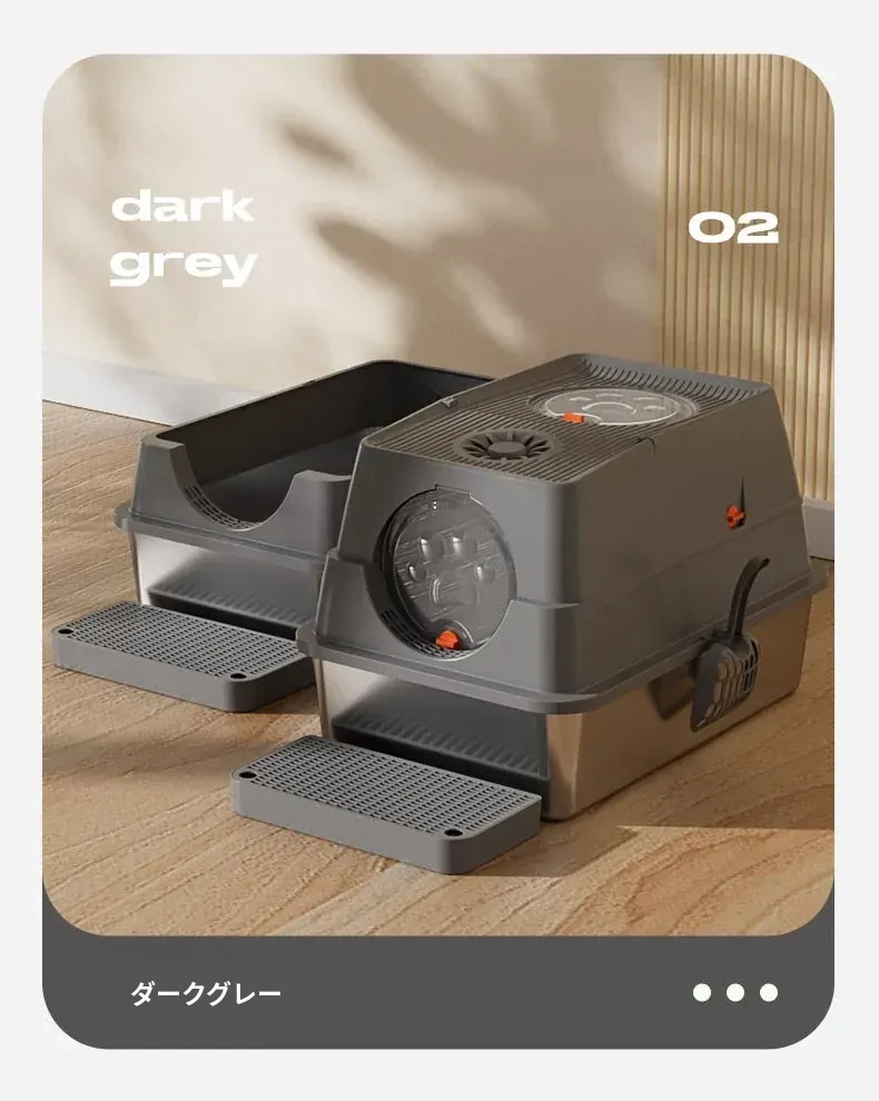ハイタイプ-深灰色-【コントロール砂板+猫砂シャベル+消臭炭パック+滑り止めシール】