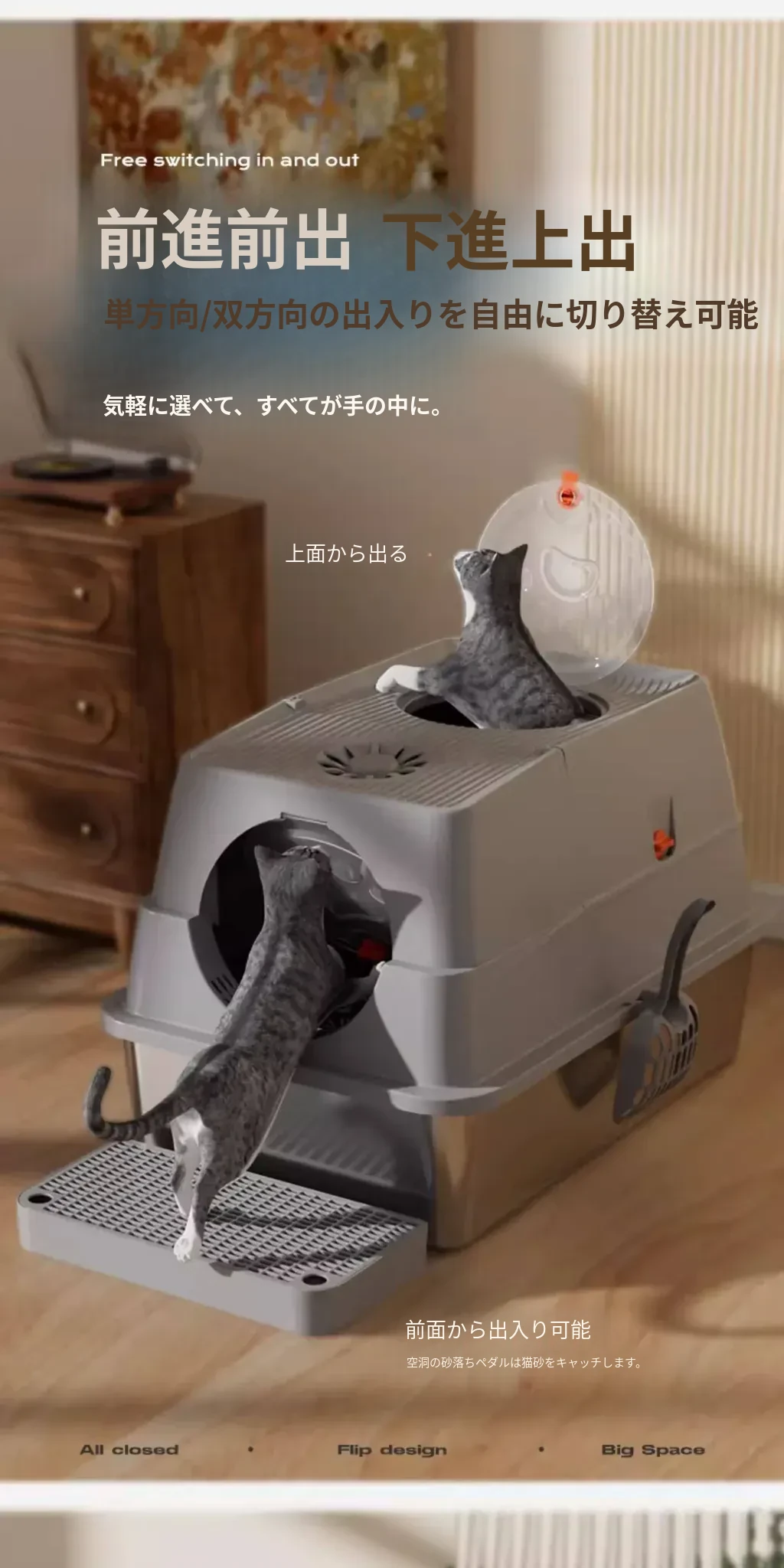 ハイタイプ-浅灰色-【コントロール砂板+猫砂シャベル+消臭炭パック+滑り止めシール】