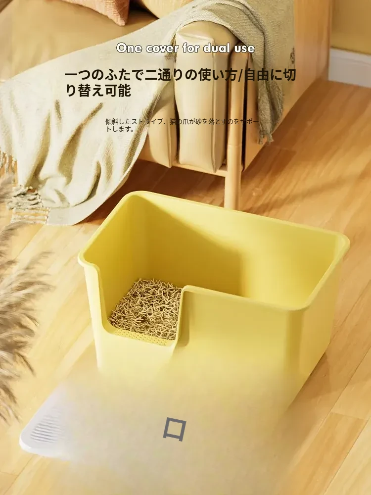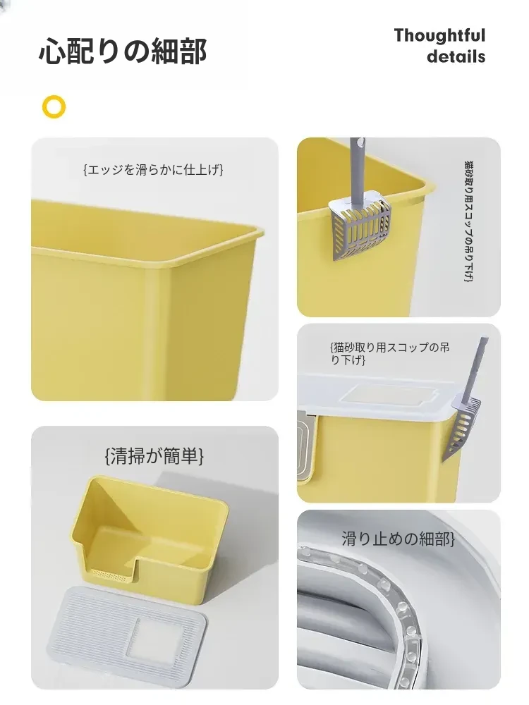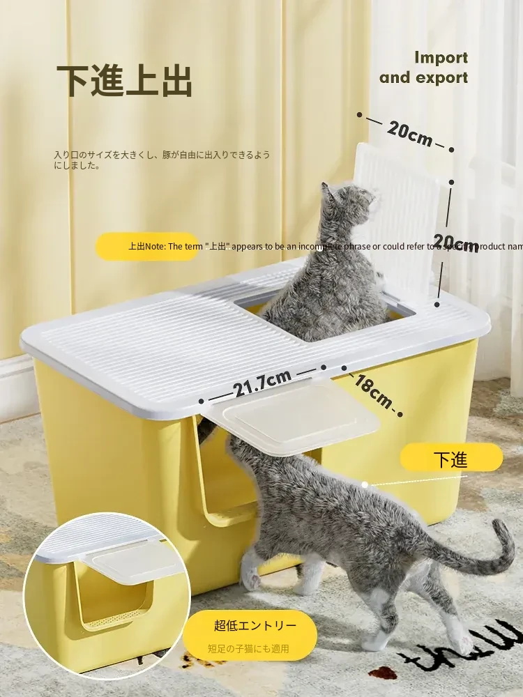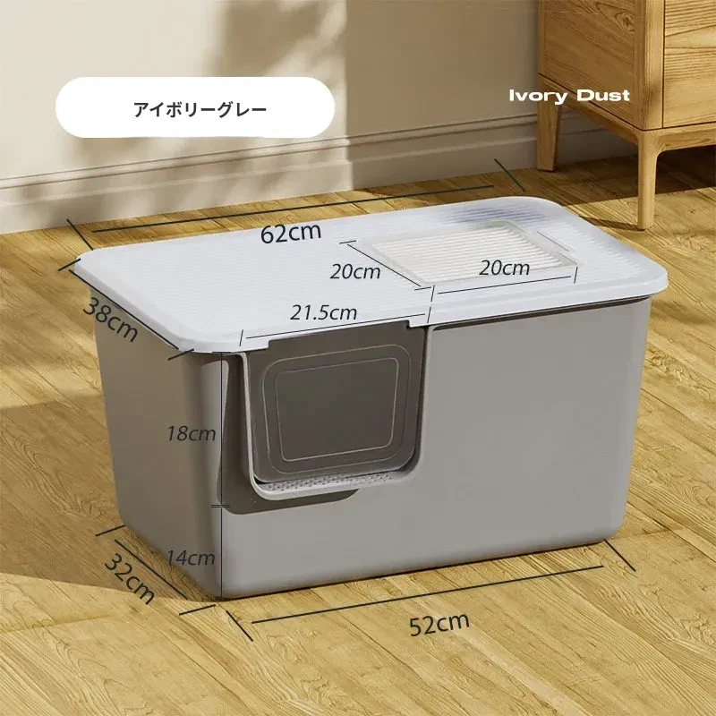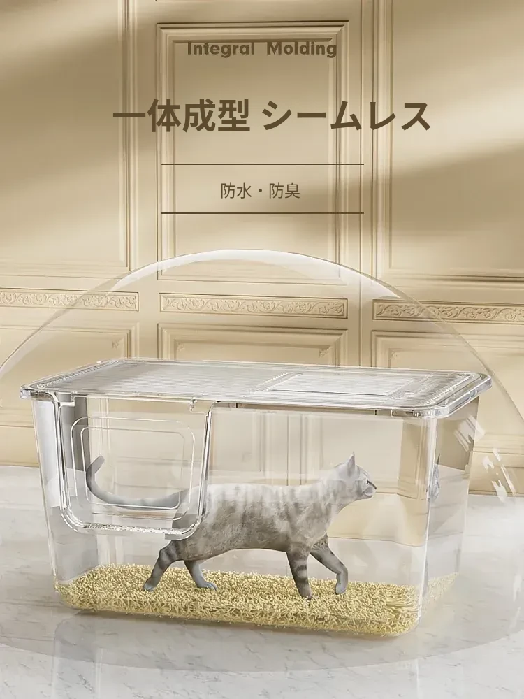 超大型トップイン型猫トイレ!半封閉デザインで外への飛び散りを防ぎ、子猫にも最適。清潔で使いやすい一体型の猫砂盆で、愛猫の快適なトイレタイムをサポートします!