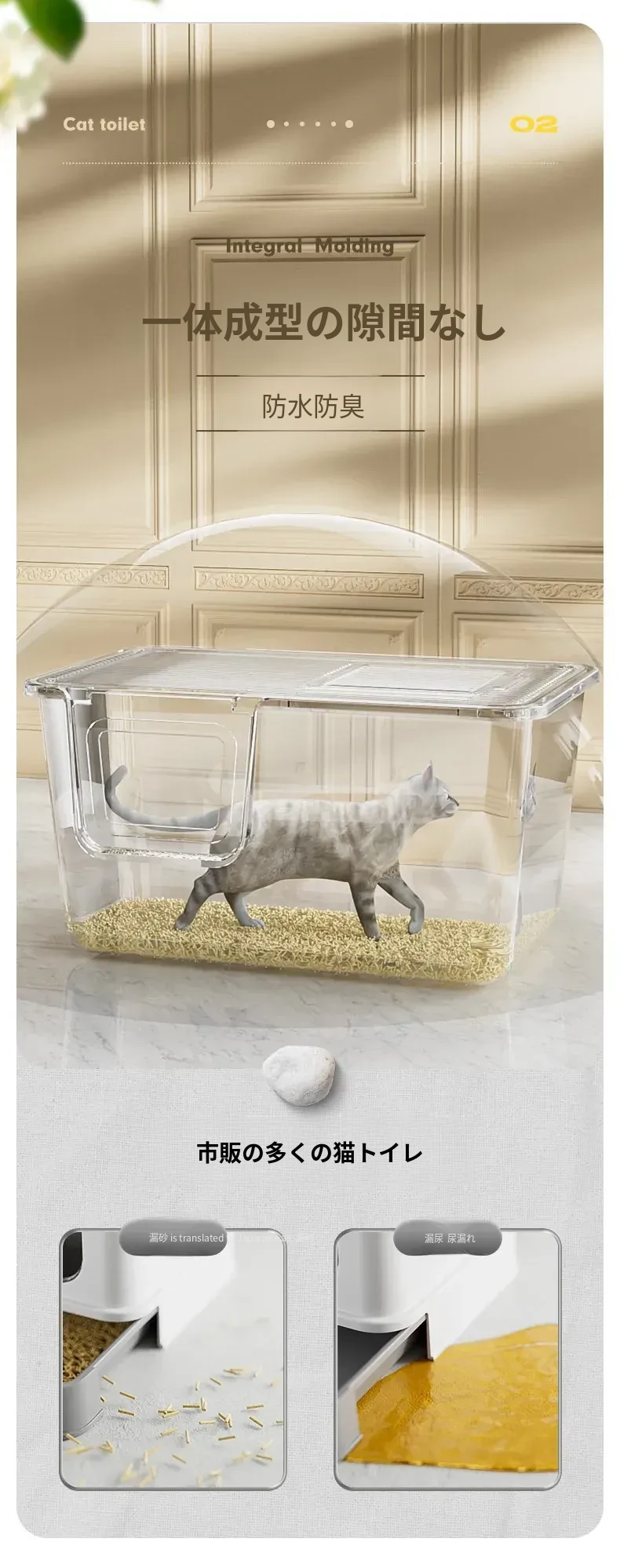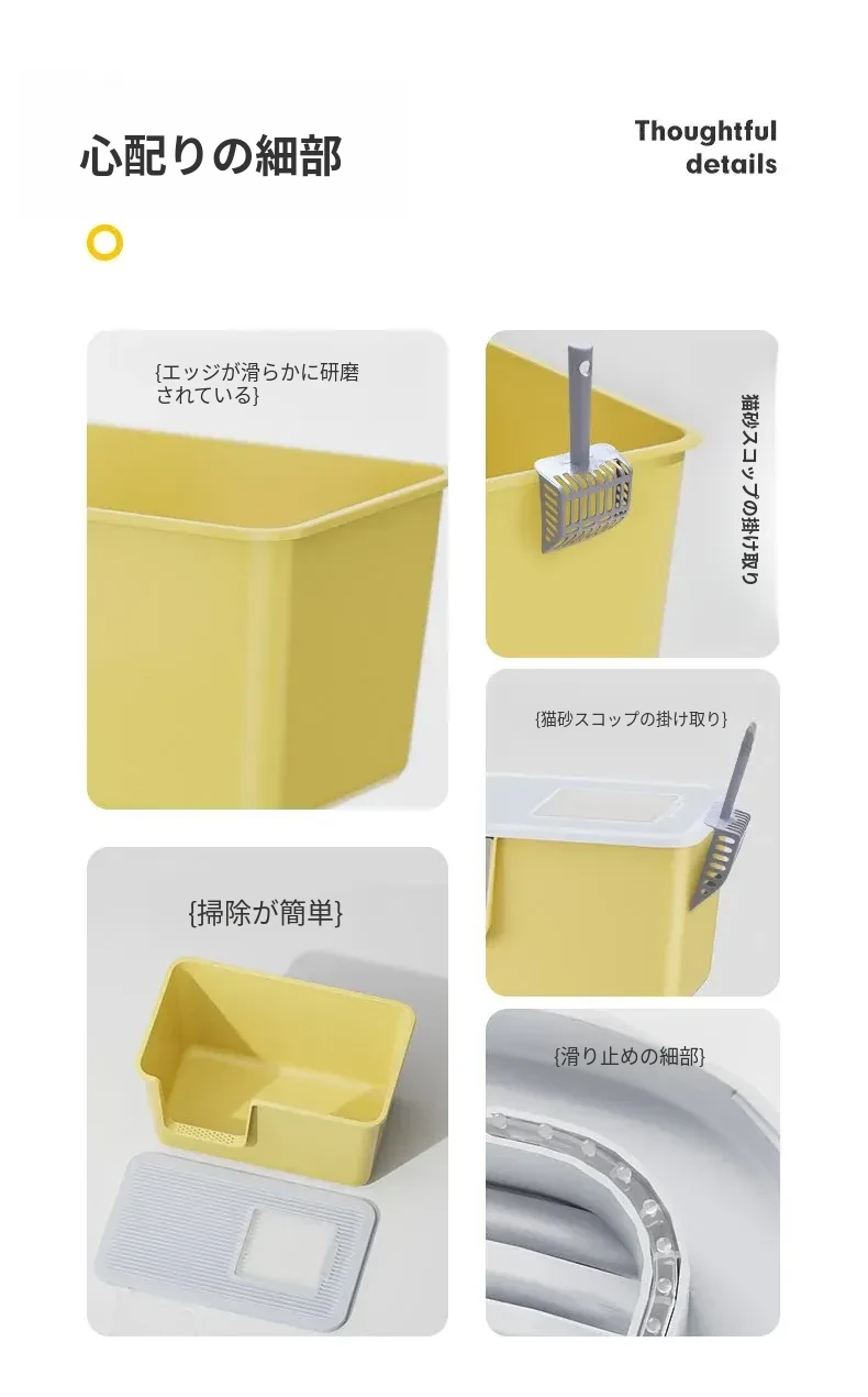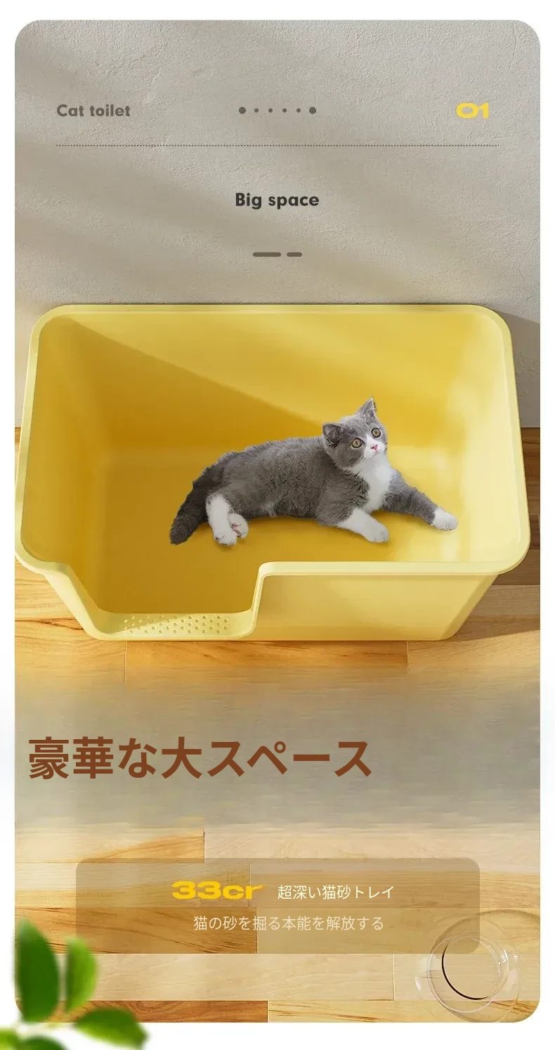超大型トップイン型猫トイレ!半封閉デザインで外への飛び散りを防ぎ、子猫にも最適。清潔で使いやすい一体型の猫砂盆で、愛猫の快適なトイレタイムをサポートします!