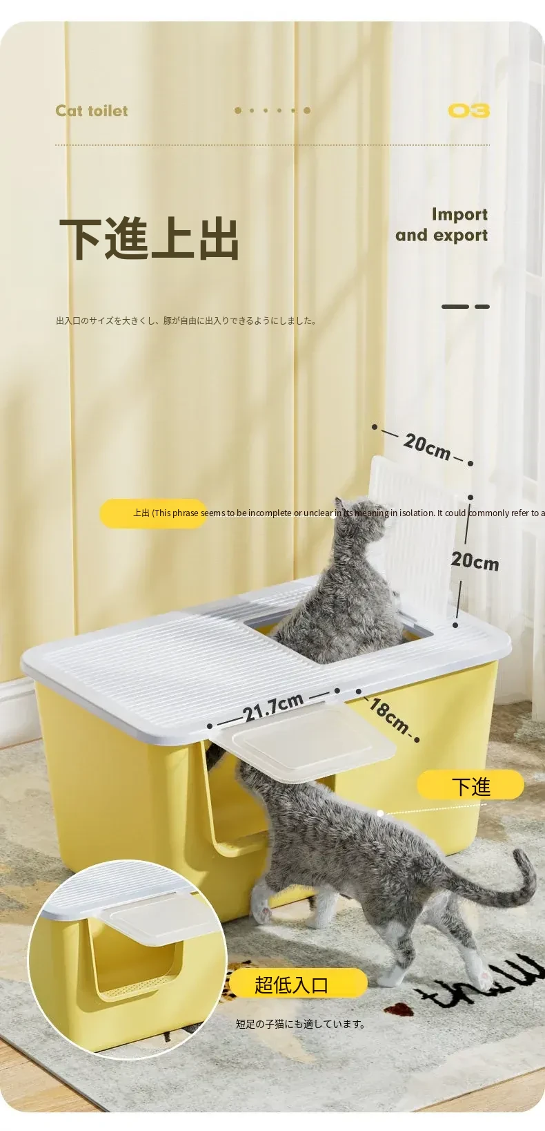 コンビネーション型猫トイレ-クリームイエロー【30斤以内適用】