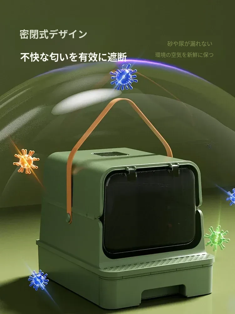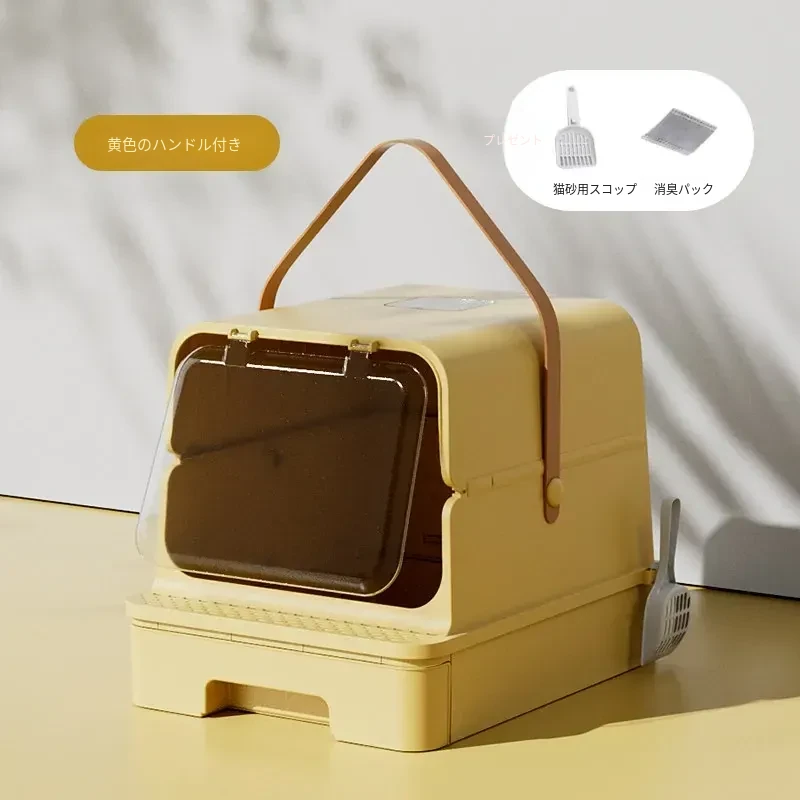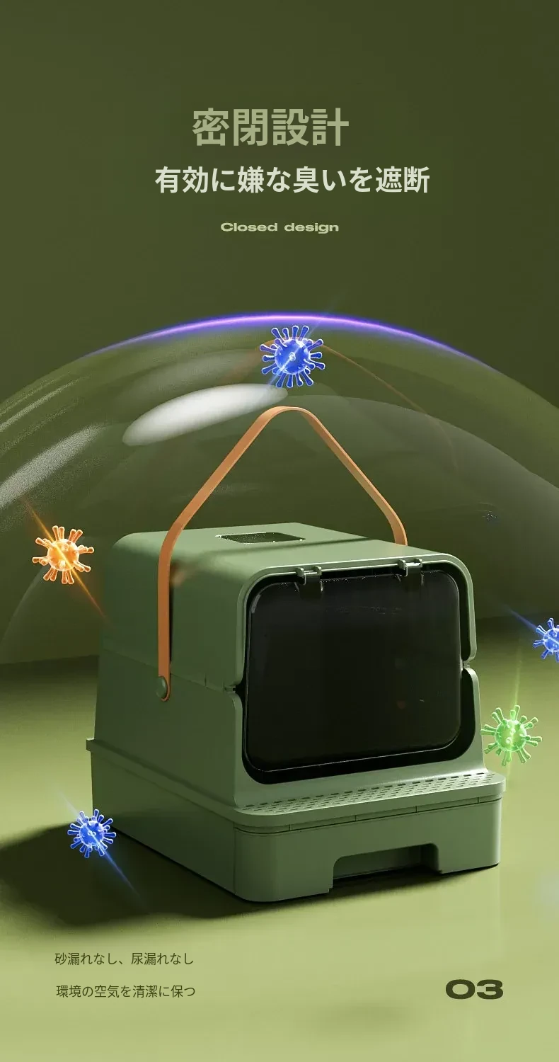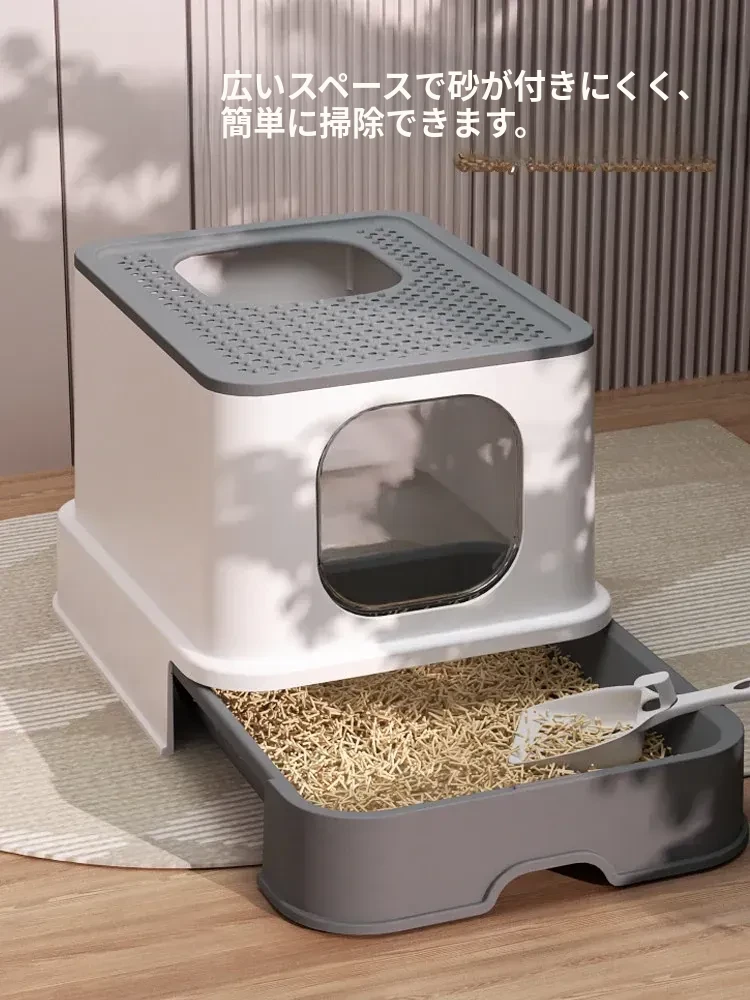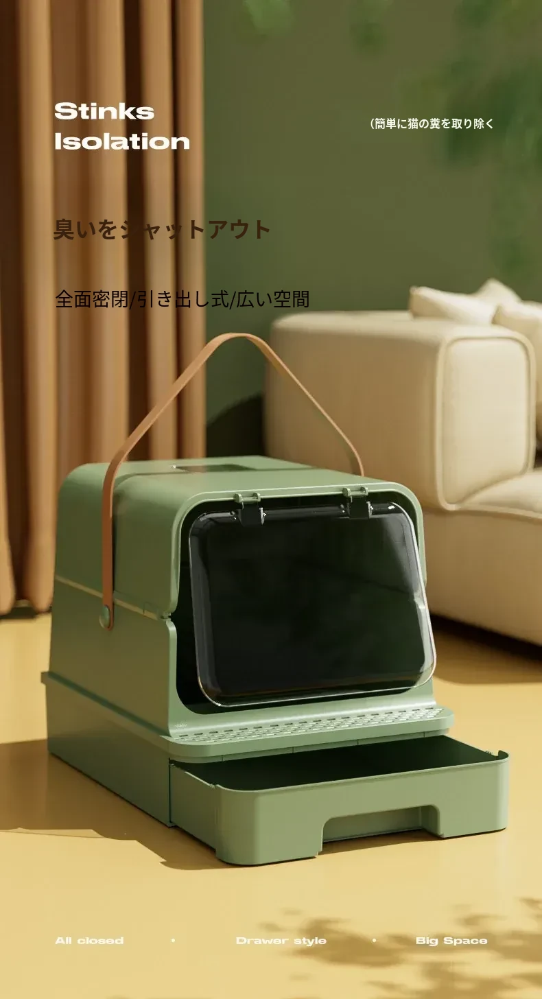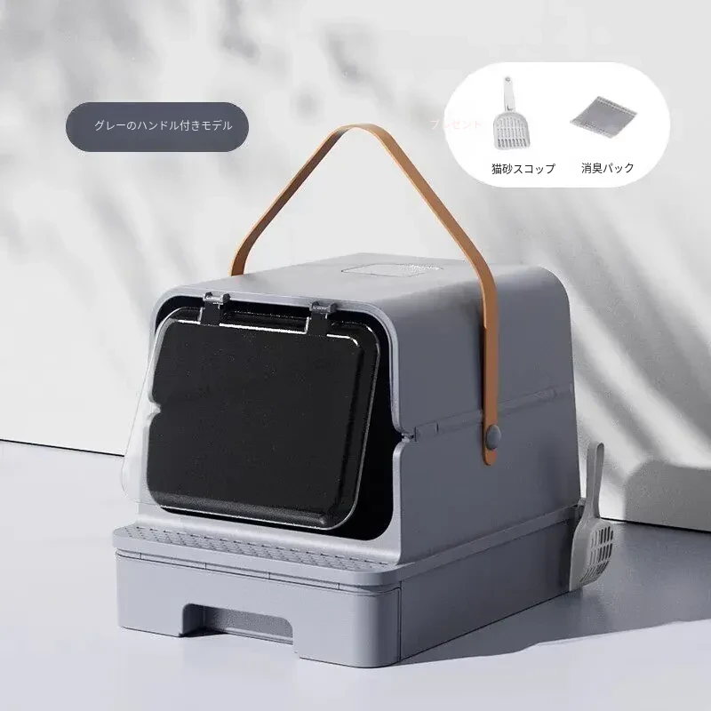 全封閉型超大型キャットトイレ - 引き出し式で飛び散り防止!特大ハイフェンス付きの巨型ネコ砂盆、強力消臭機能で清潔キープ!猫ちゃんの快適なトイレタイムを実現!