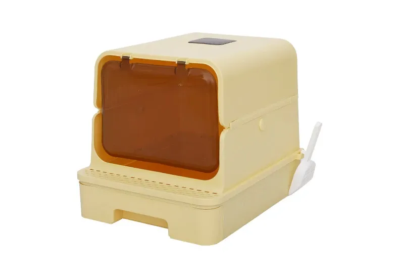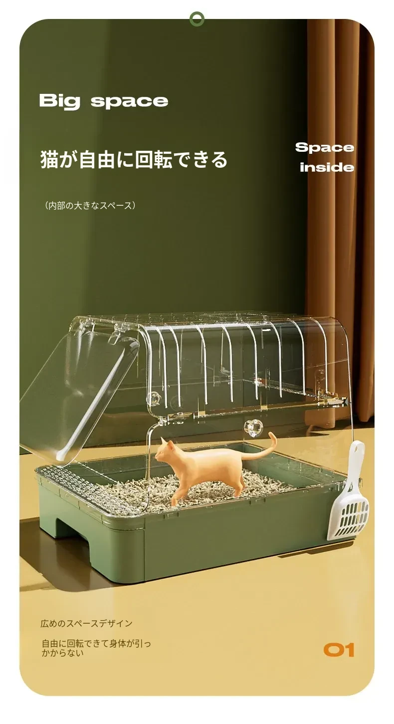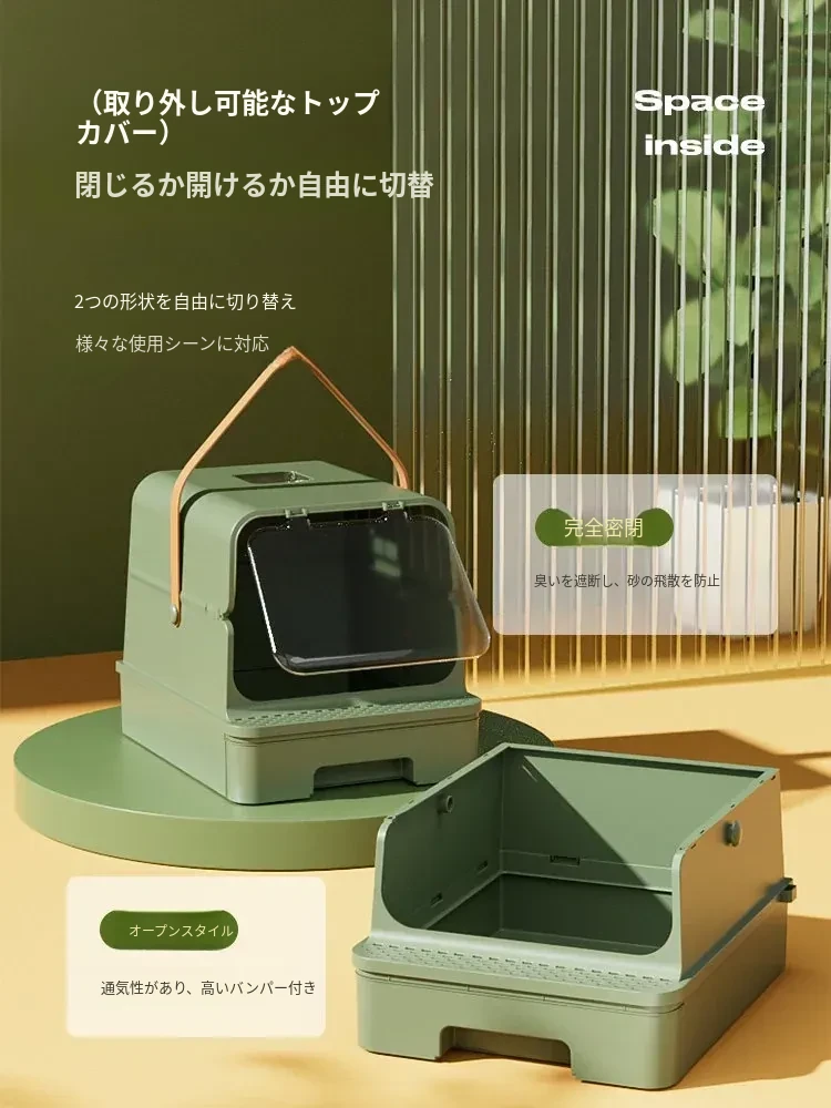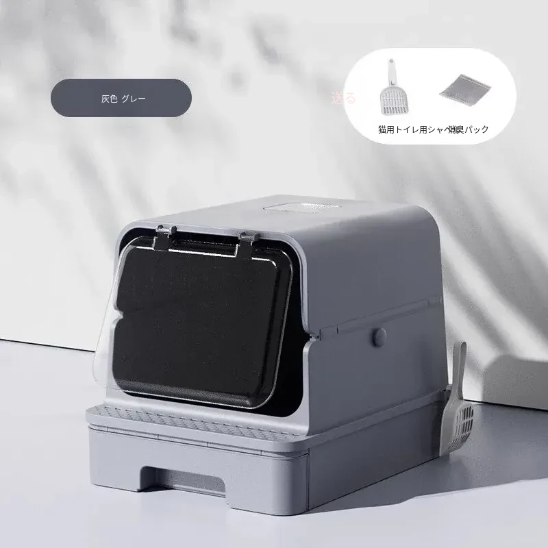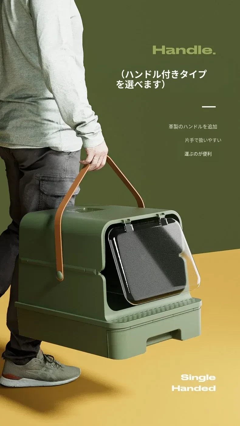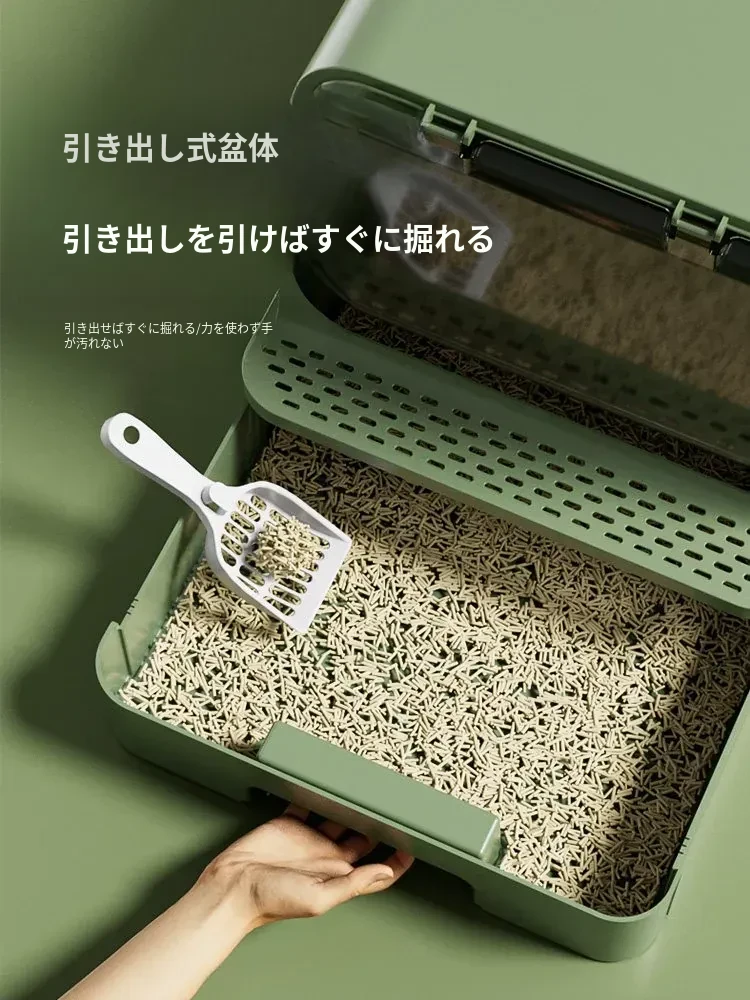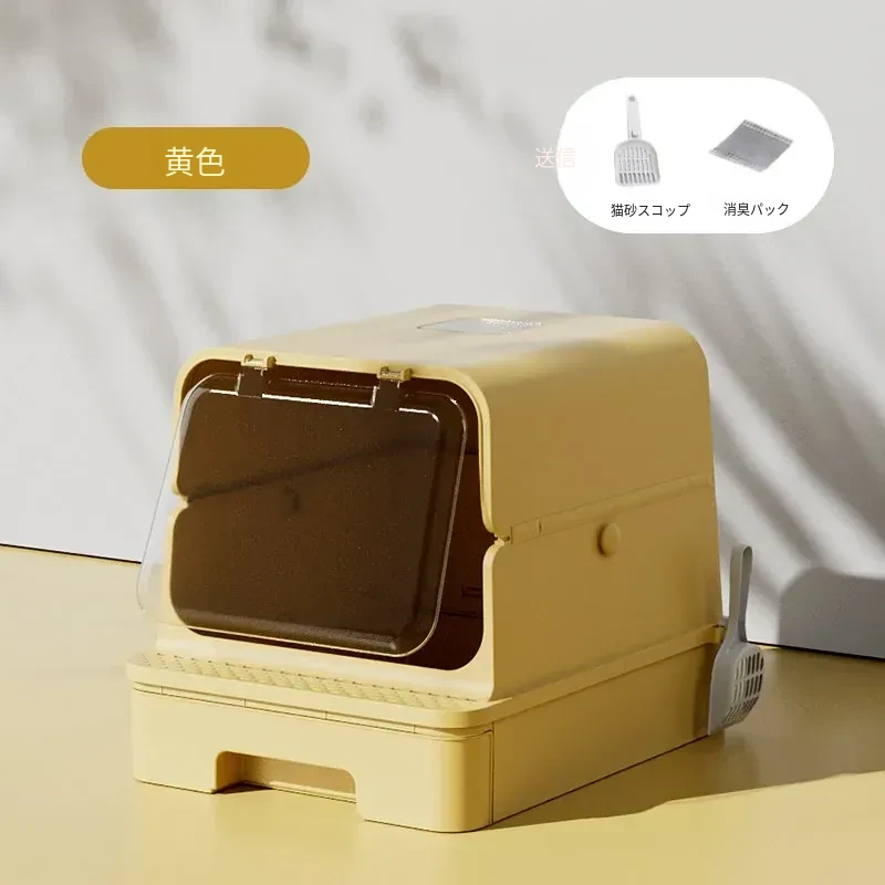 全封閉型超大型キャットトイレ - 引き出し式で飛び散り防止!特大ハイフェンス付きの巨型ネコ砂盆、強力消臭機能で清潔キープ!猫ちゃんの快適なトイレタイムを実現!