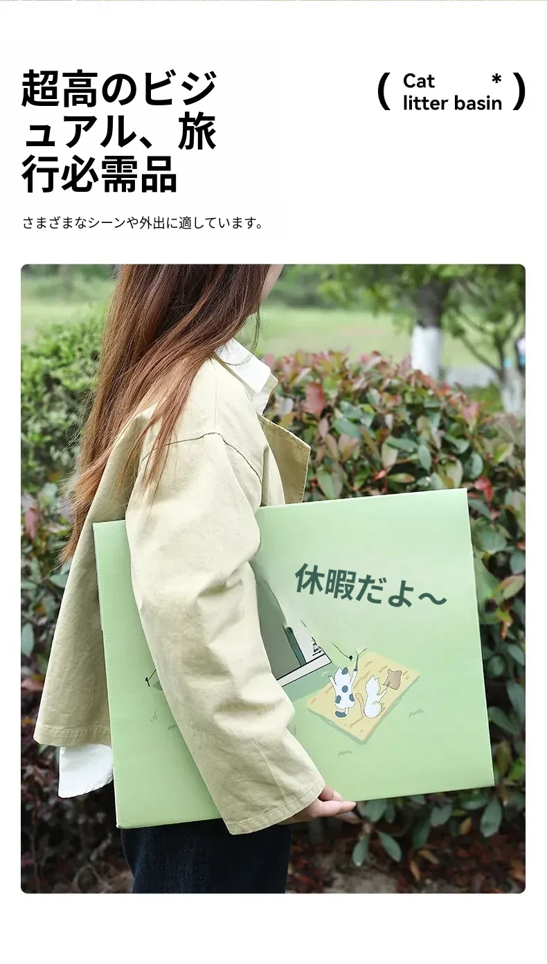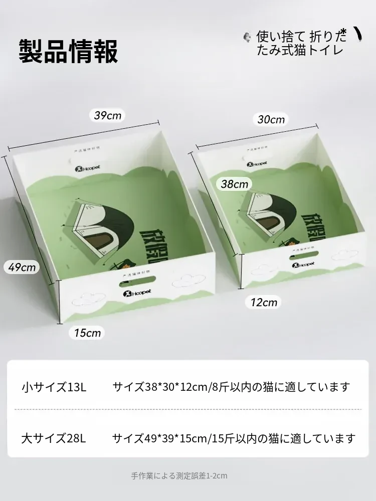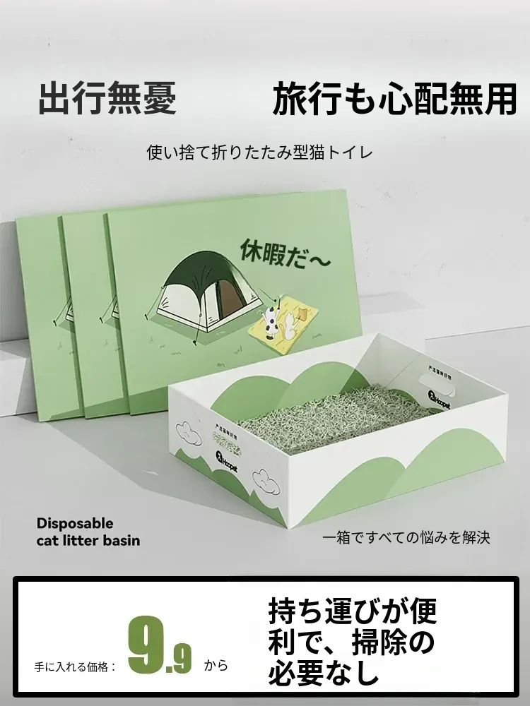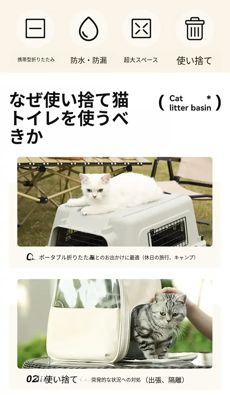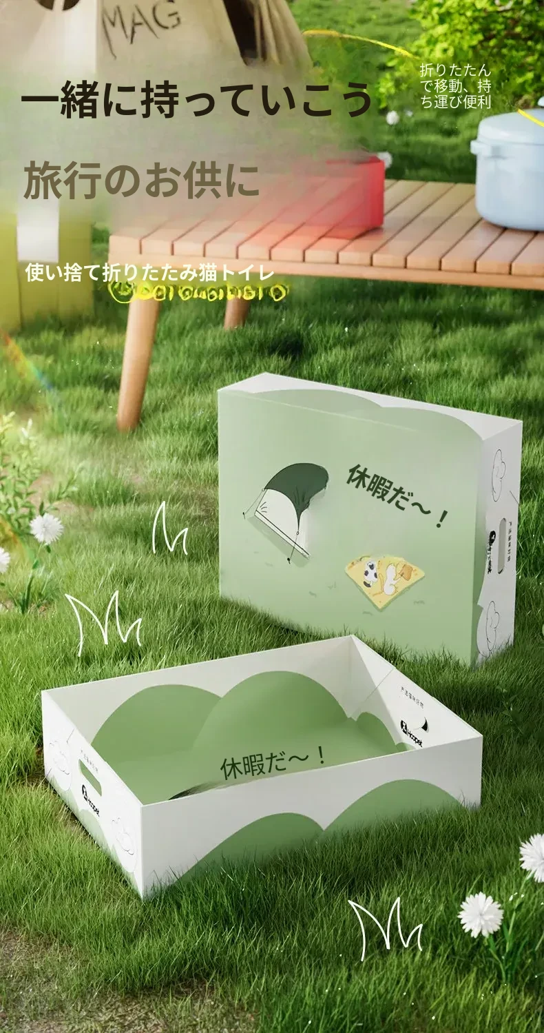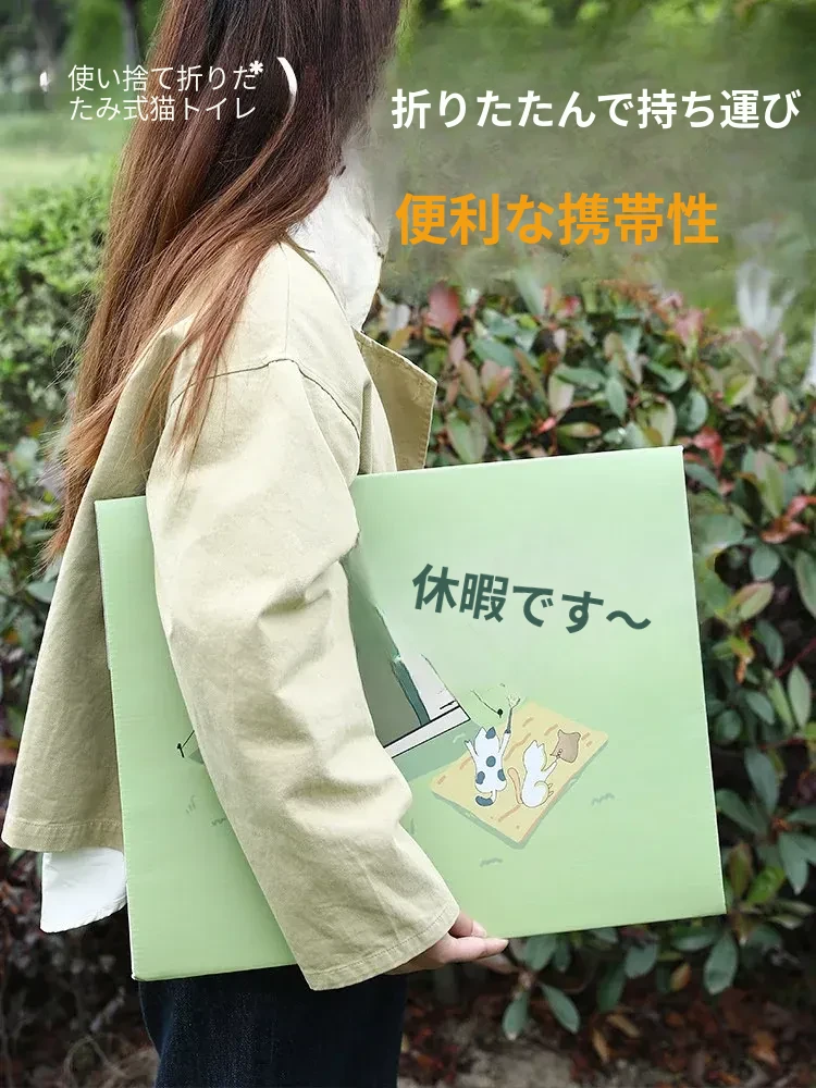 使いやすい!大型折りたたみ式の使い捨て猫トイレ - 外出時も安心の防水設計で、猫ちゃんが快適に用を足せる全開放型!携帯にも便利で、清潔な環境を保てます。