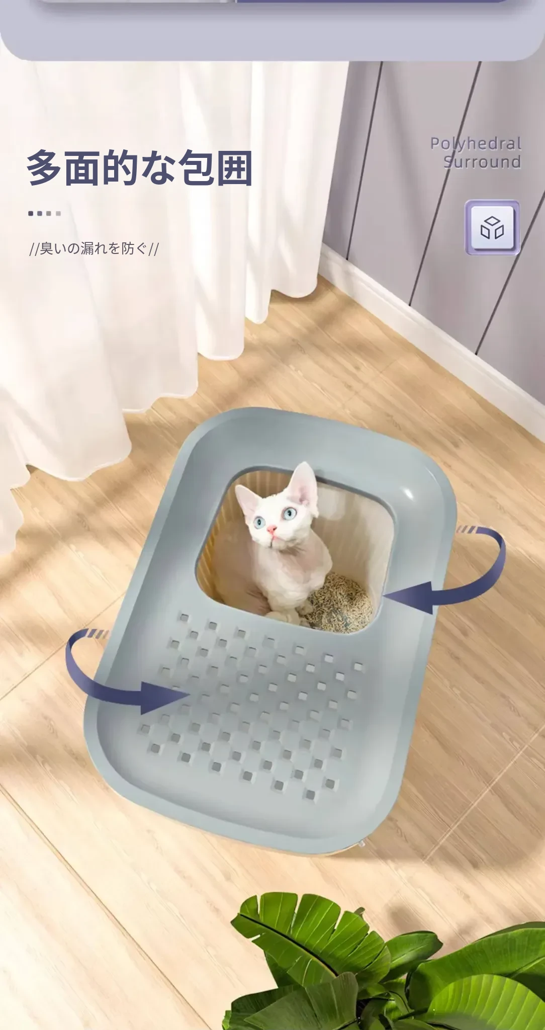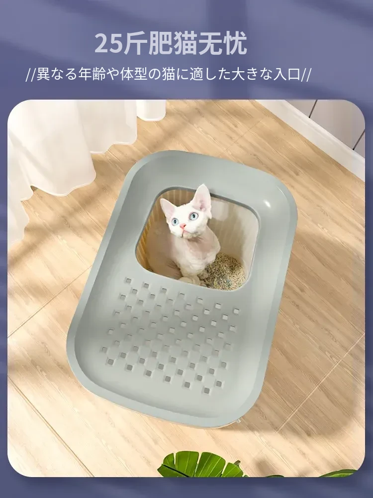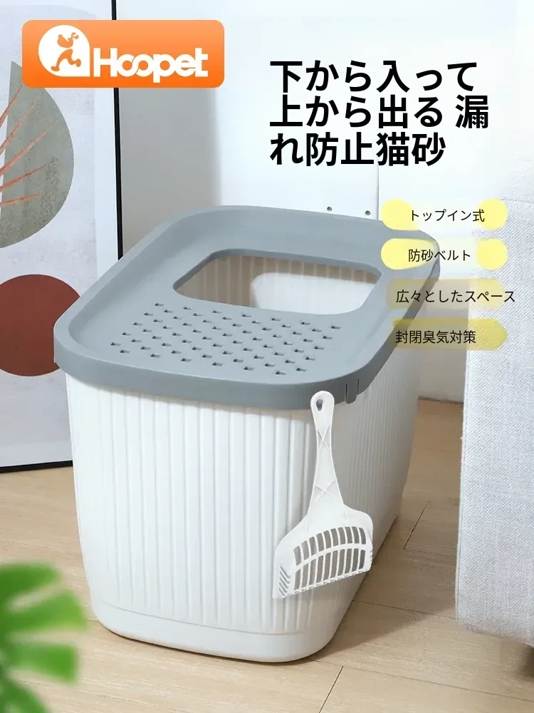 猫用トイレ 大型防臭半密閉型 上から入る砂こぼれ防止設計 ペット専用 猫砂盆