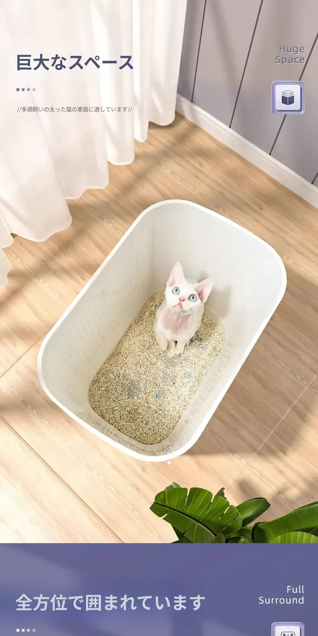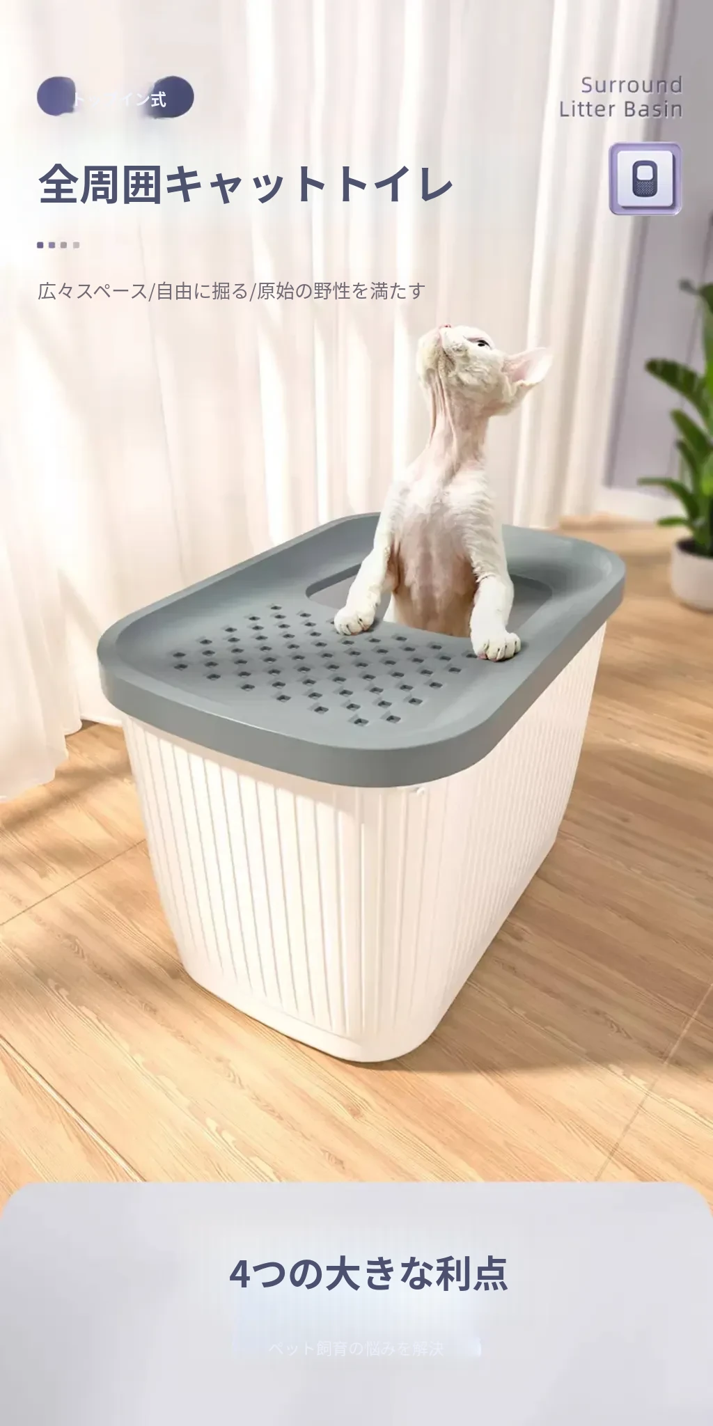 月牙白-トップイン式防砂【猫砂スコップ付き】
