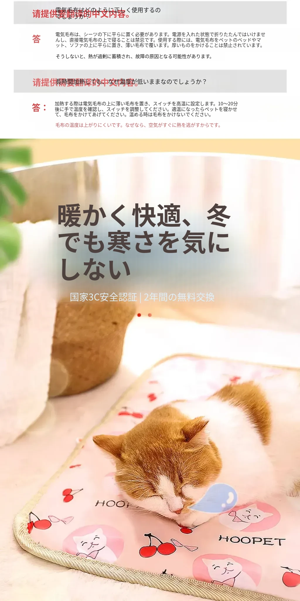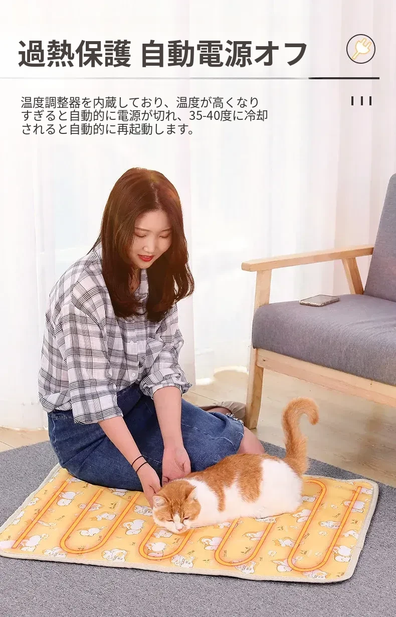 ペット用電気毛布 猫・犬用加熱マット 温度調節機能付き ベッドとしても使える暖かい冬の必需品!寒い季節に最適なペットの快適空間を提供します。