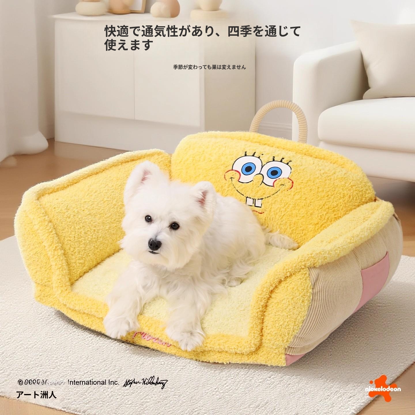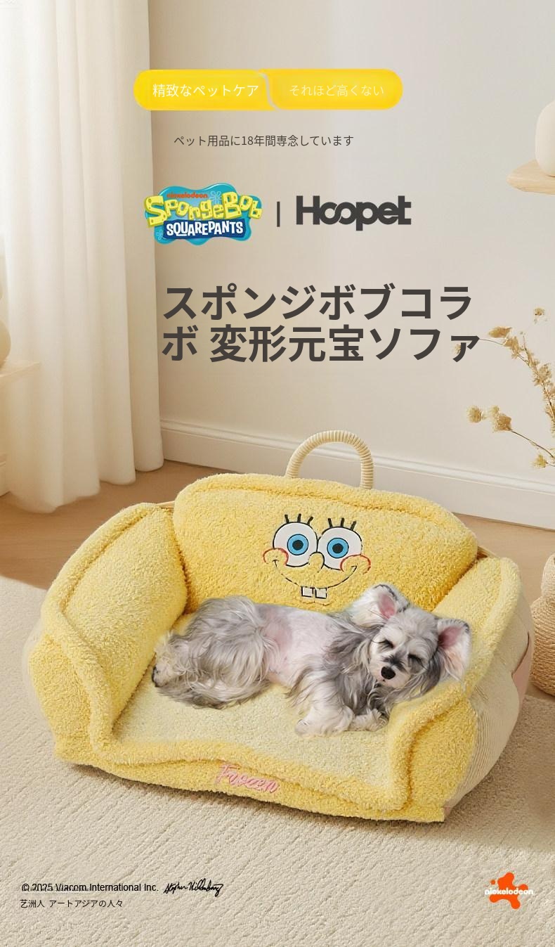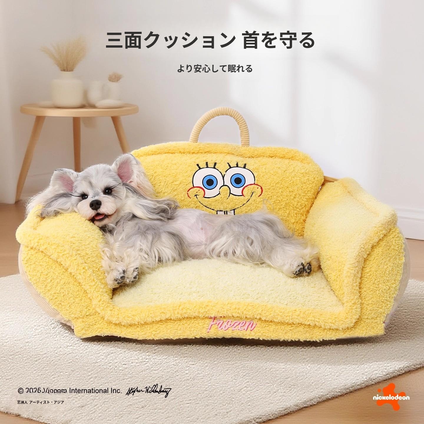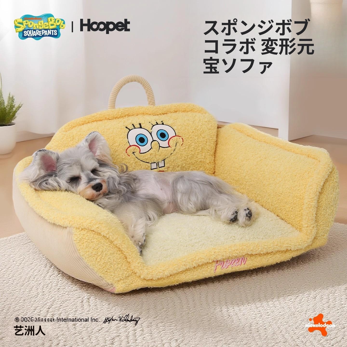 Hoopet × スポンジボブ コラボ 元宝型ソファベッド 四季対応・洗濯可能 小猫小犬用 おしゃれで快適な寝床