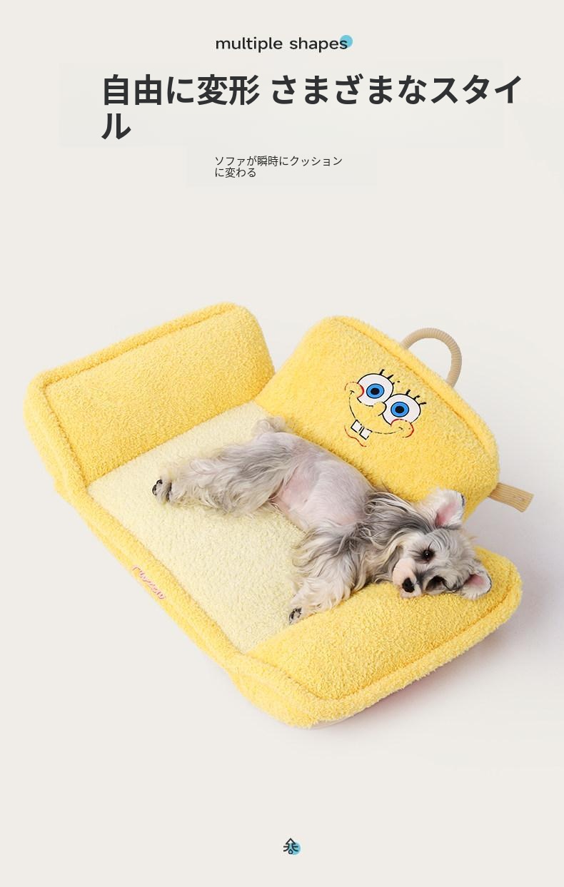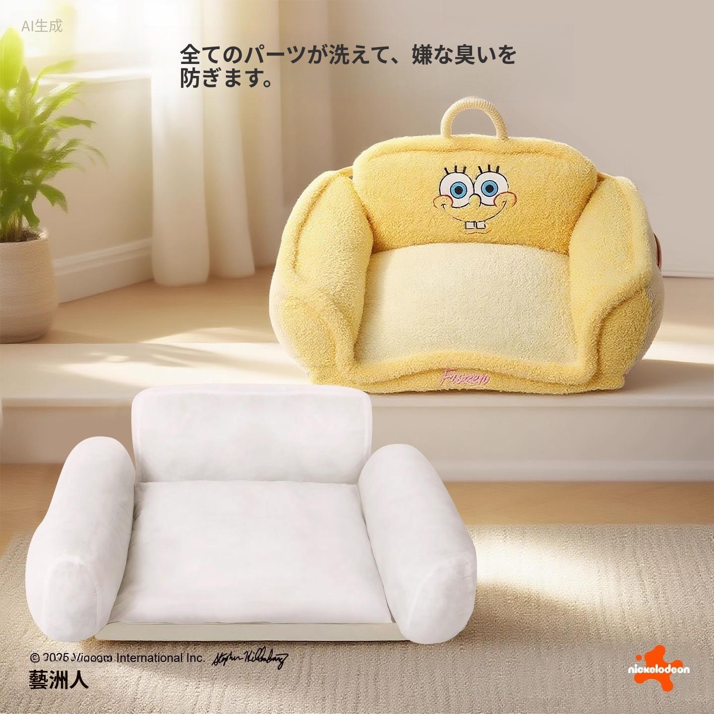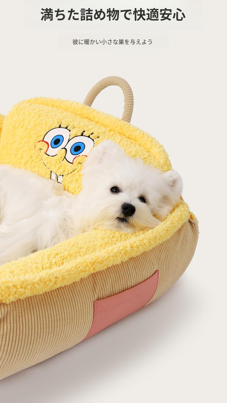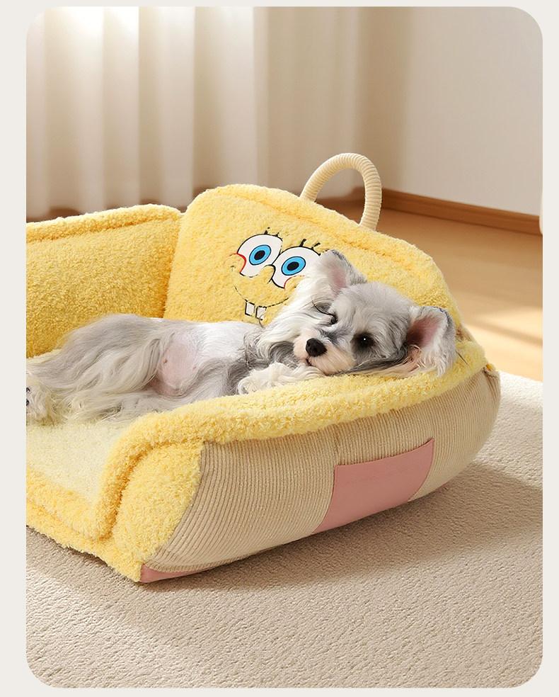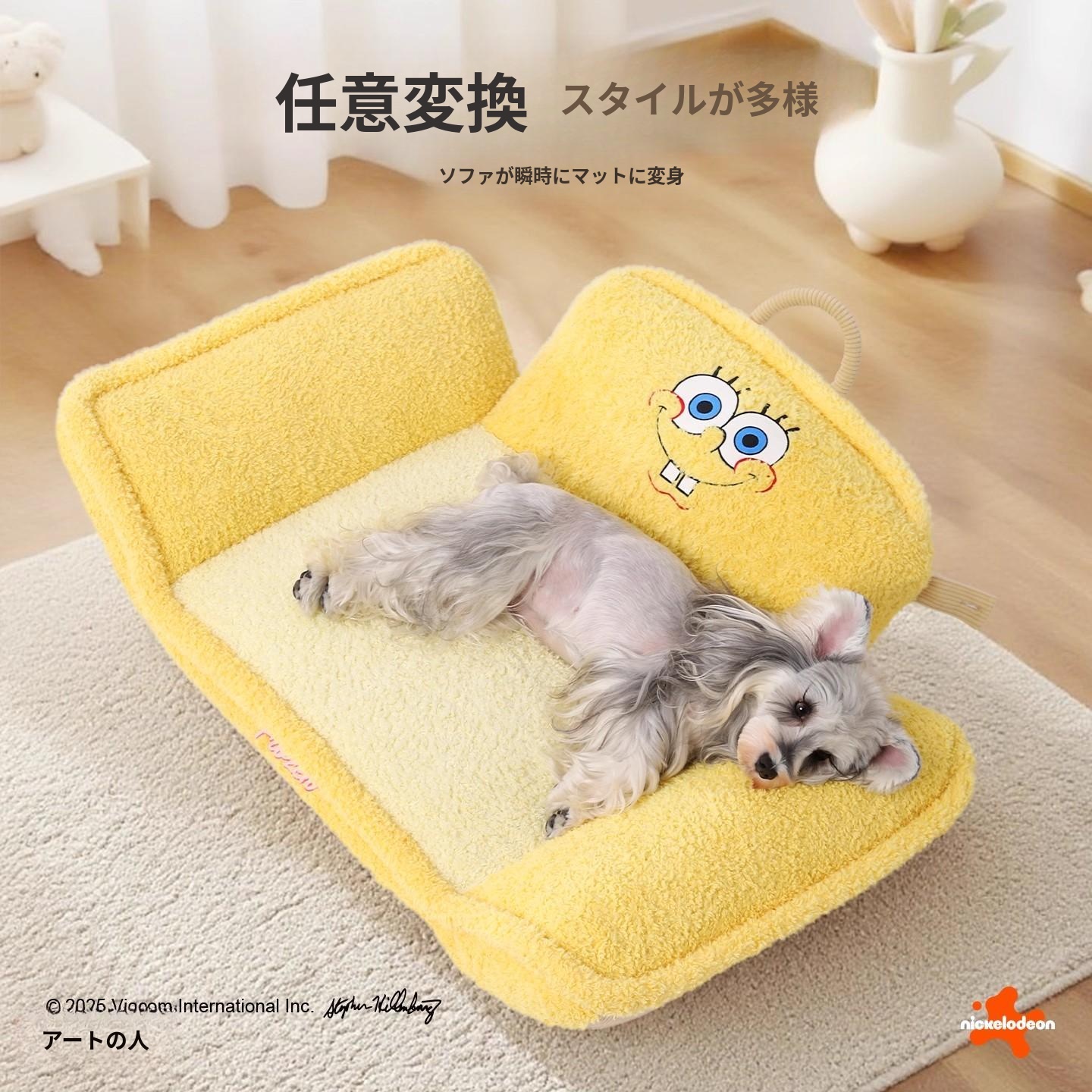 Hoopet × スポンジボブ コラボ 元宝型ソファベッド 四季対応・洗濯可能 小猫小犬用 おしゃれで快適な寝床