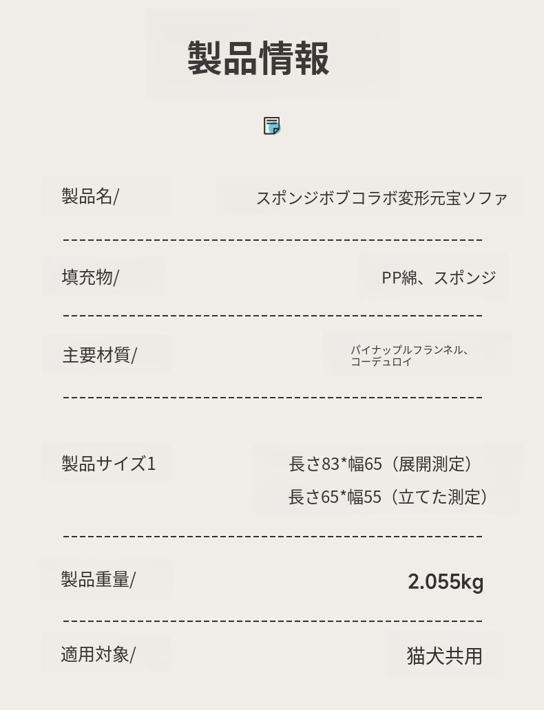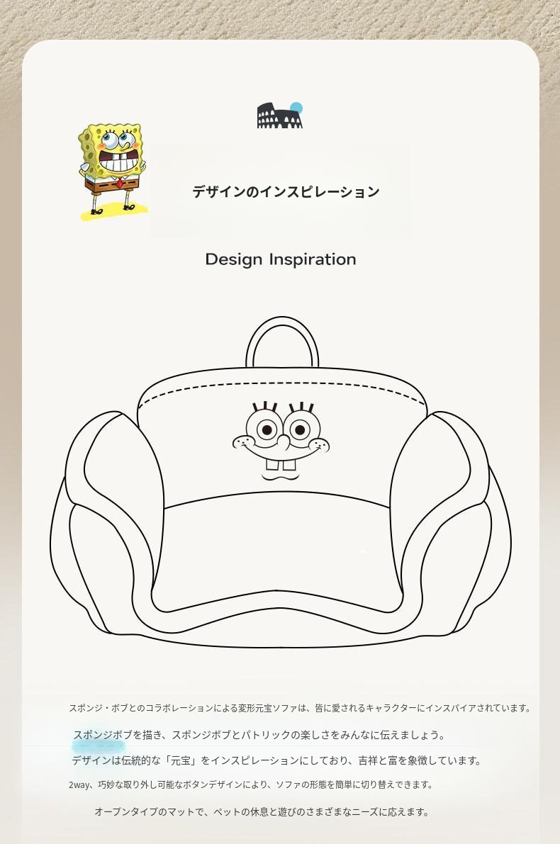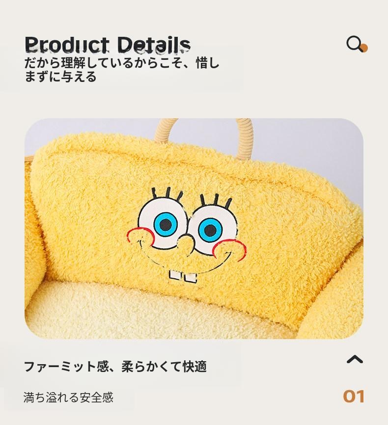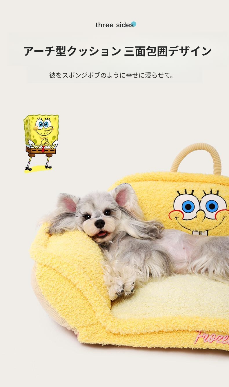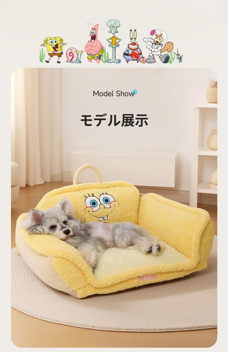Hoopet × スポンジボブ コラボ 元宝型ソファベッド 四季対応・洗濯可能 小猫小犬用 おしゃれで快適な寝床