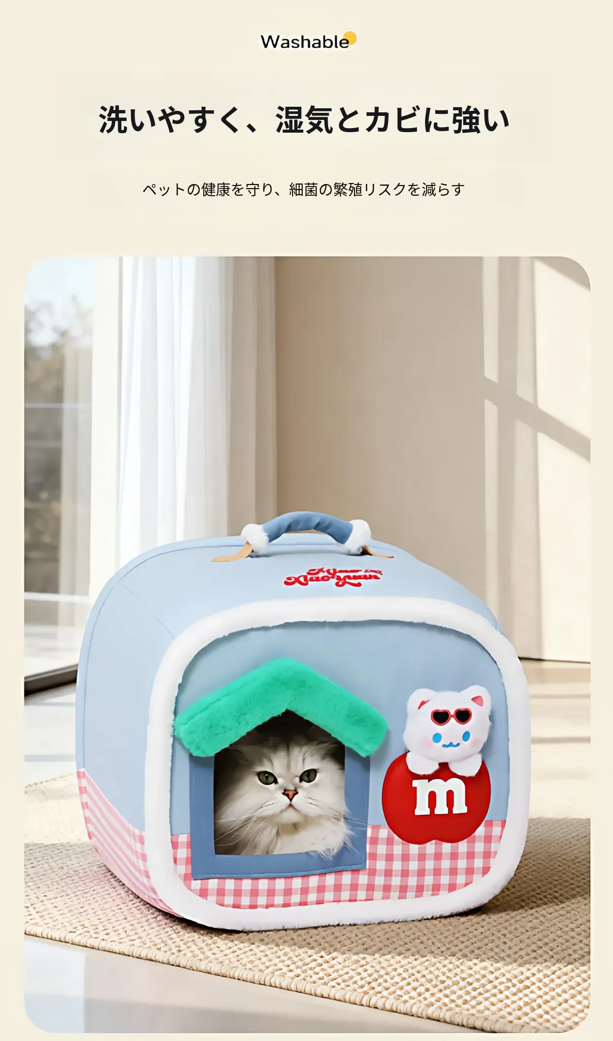 ホーペット猫ハウス 冬の暖かさを保つふんわり型 小型犬にもぴったり!取り外し可能で洗える冬用猫テント。愛猫に快適な寝床を提供して、寒い季節も安心して過ごせます!
