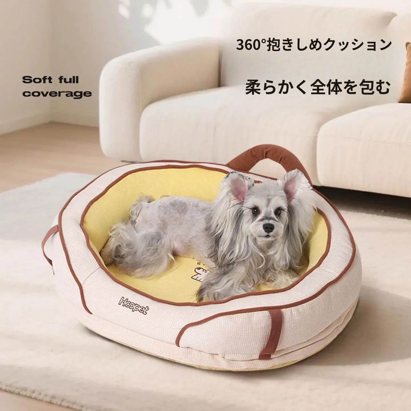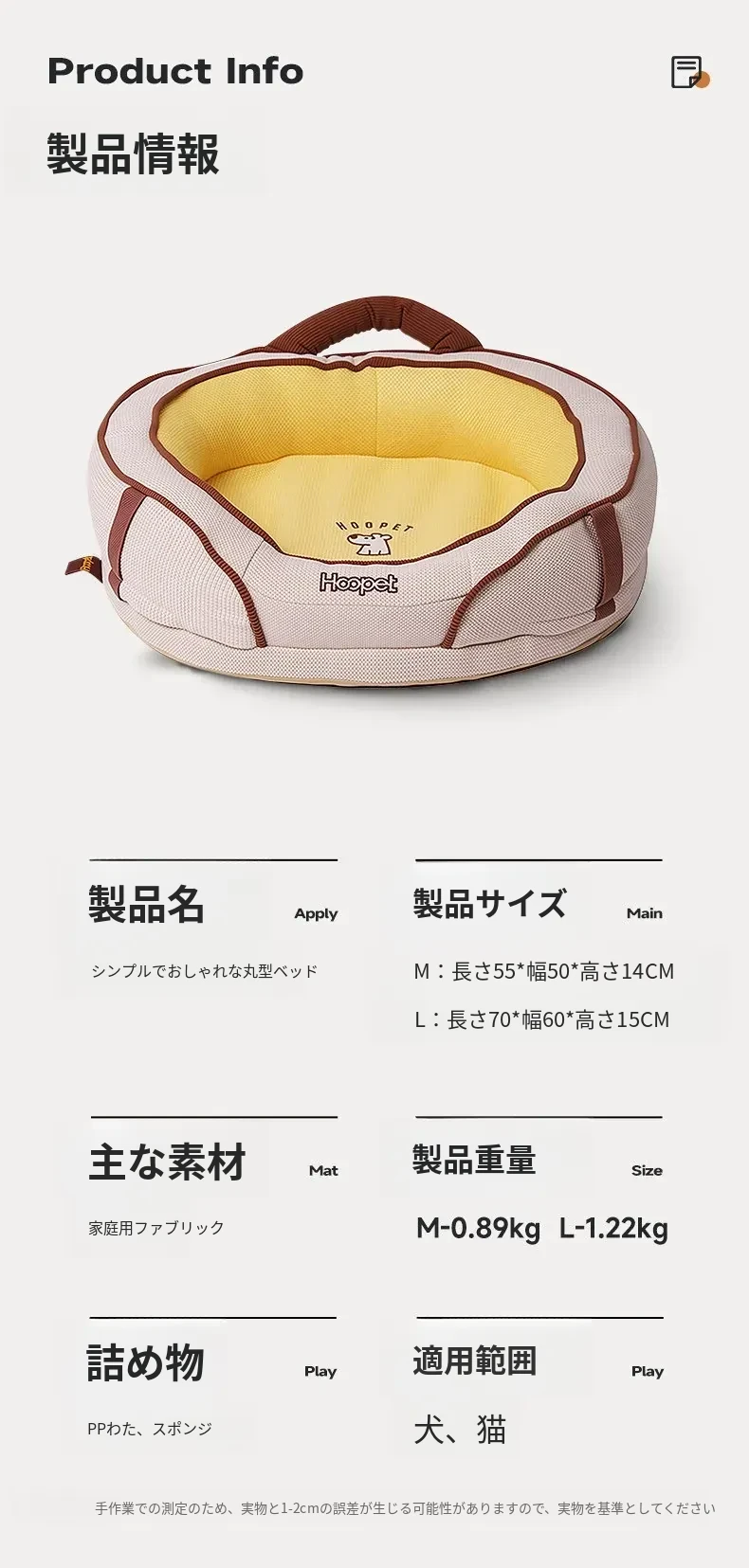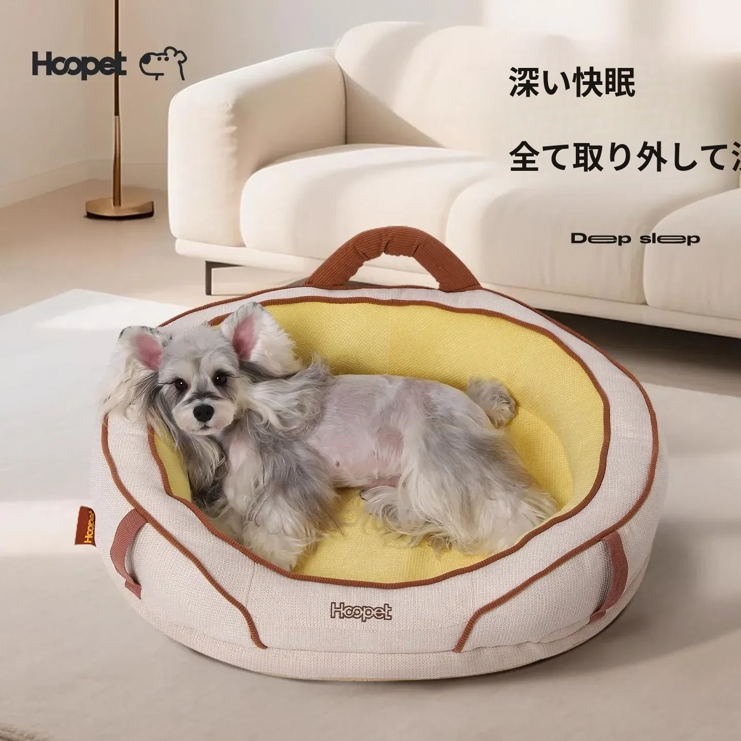 Hoopetシンプルでおしゃれな丸型ベッド|四季対応の小型犬用|シュナウザーにもぴったり!洗濯可能で清潔を保てる犬用ベッド!快適な睡眠を提供します。