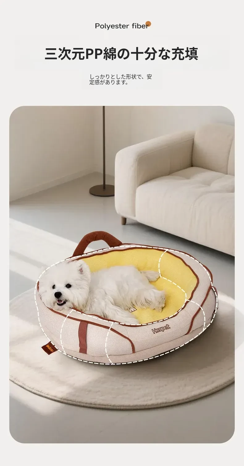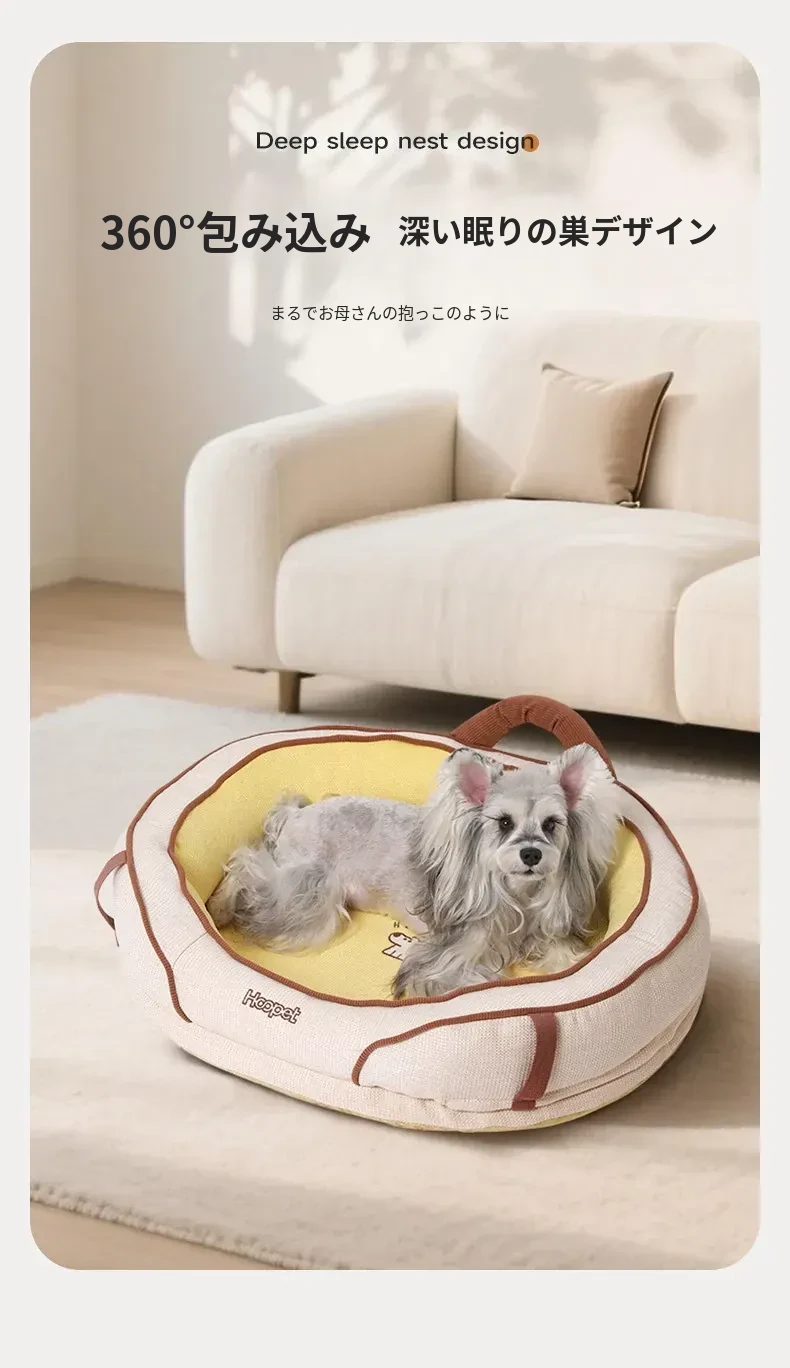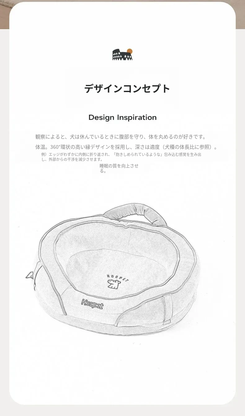 Hoopetシンプルでおしゃれな丸型ベッド|四季対応の小型犬用|シュナウザーにもぴったり!洗濯可能で清潔を保てる犬用ベッド!快適な睡眠を提供します。
