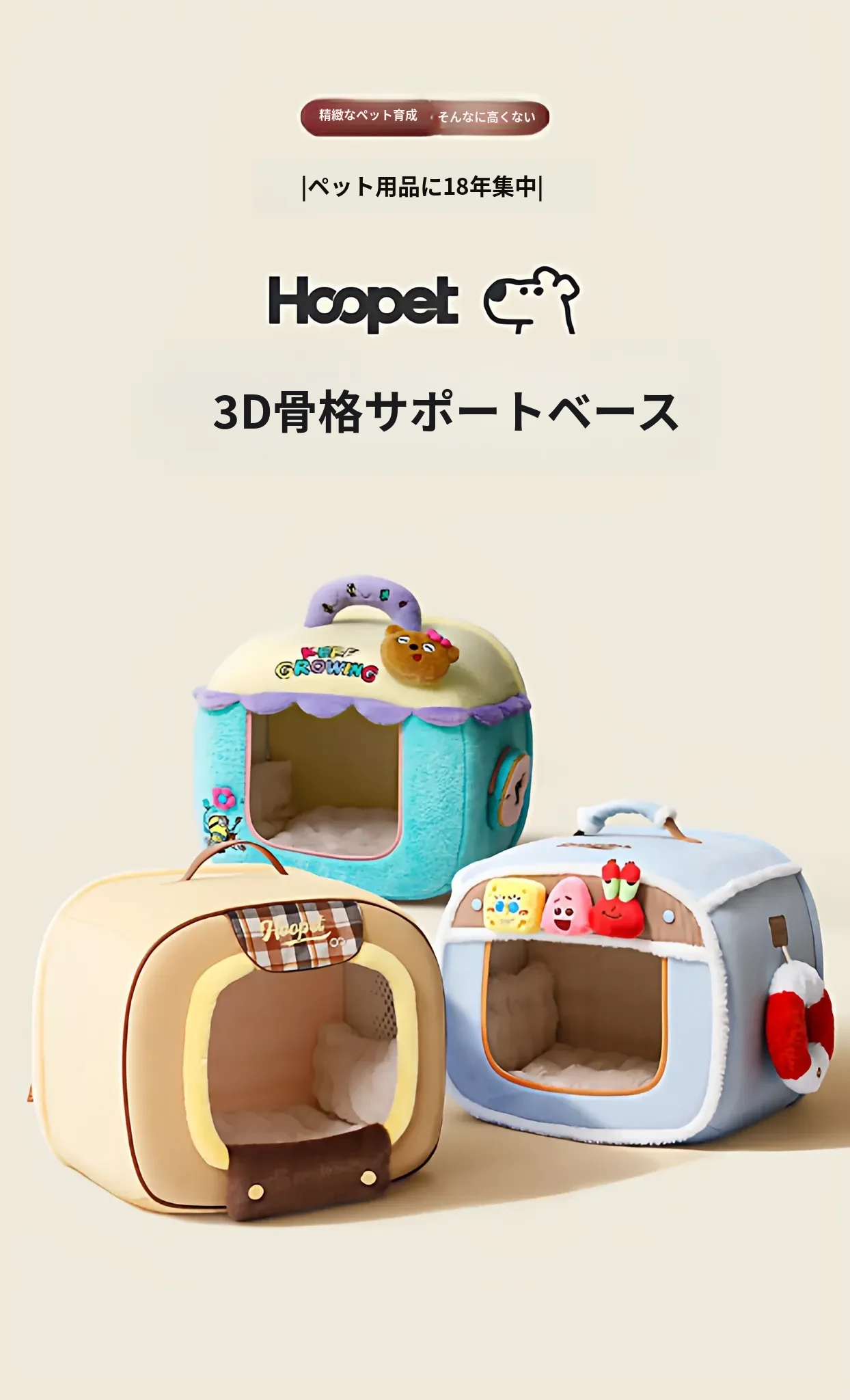 猫も犬も喜ぶ!Hoopetコラボのディズニーミニオン&スポンジボブ冬用洗えるベッド - つぶれない安心設計で、愛するペットに快適なくつろぎ空間を提供します。