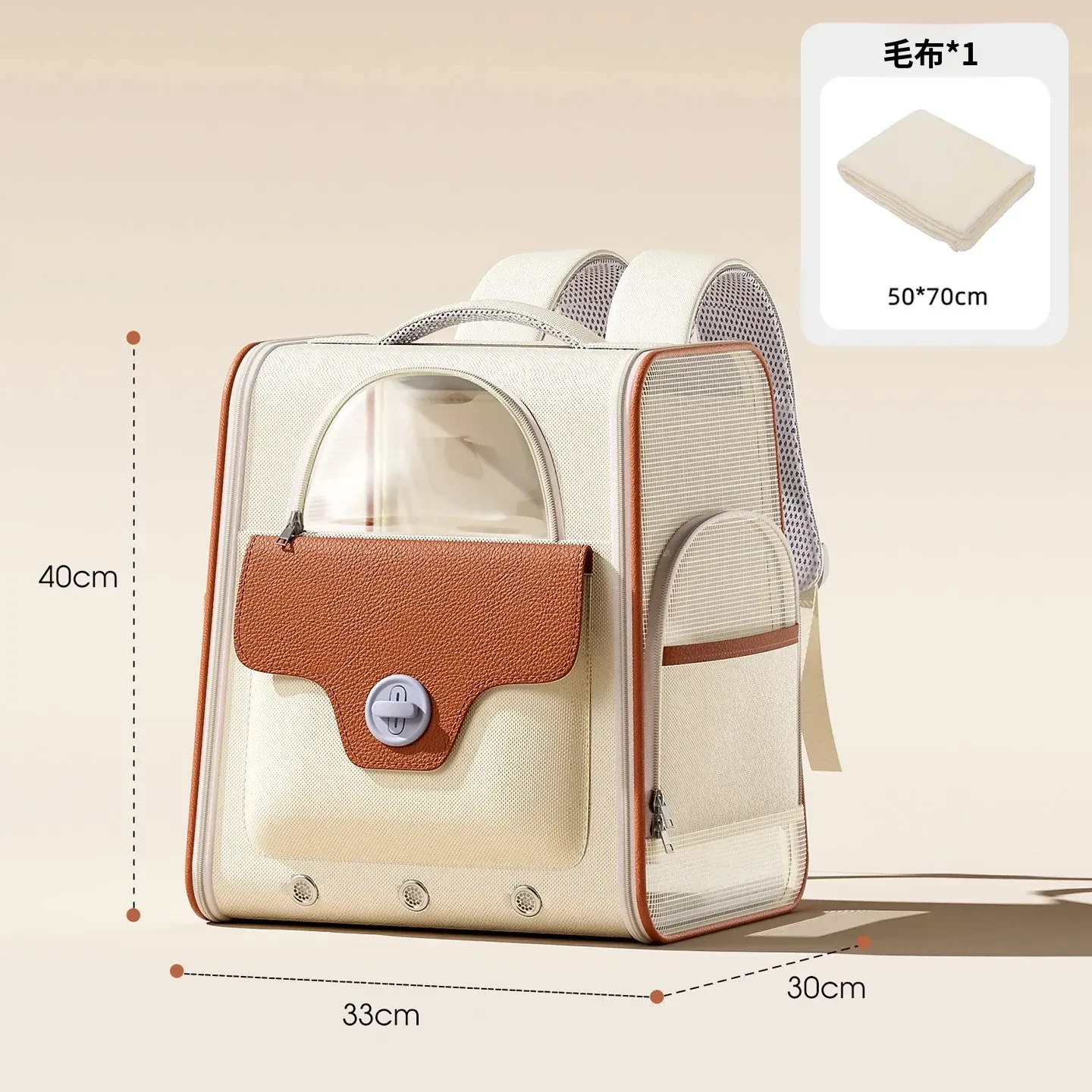 リュック型ペットバッグ(ミルクコーヒー)+ブランケット