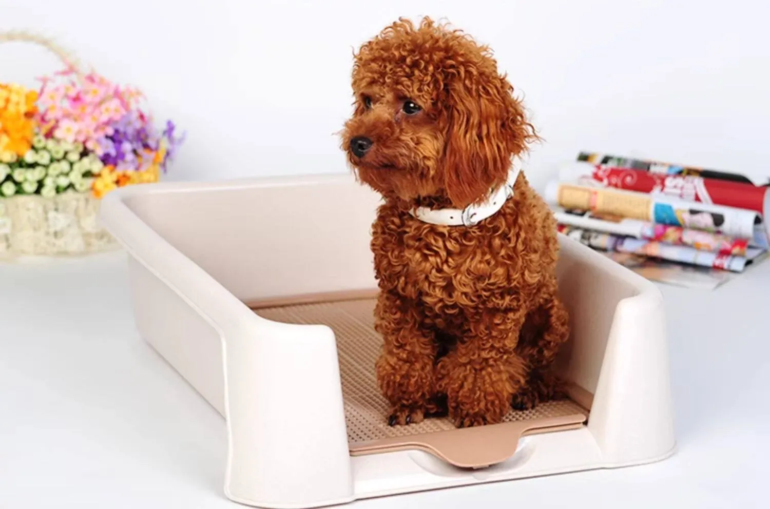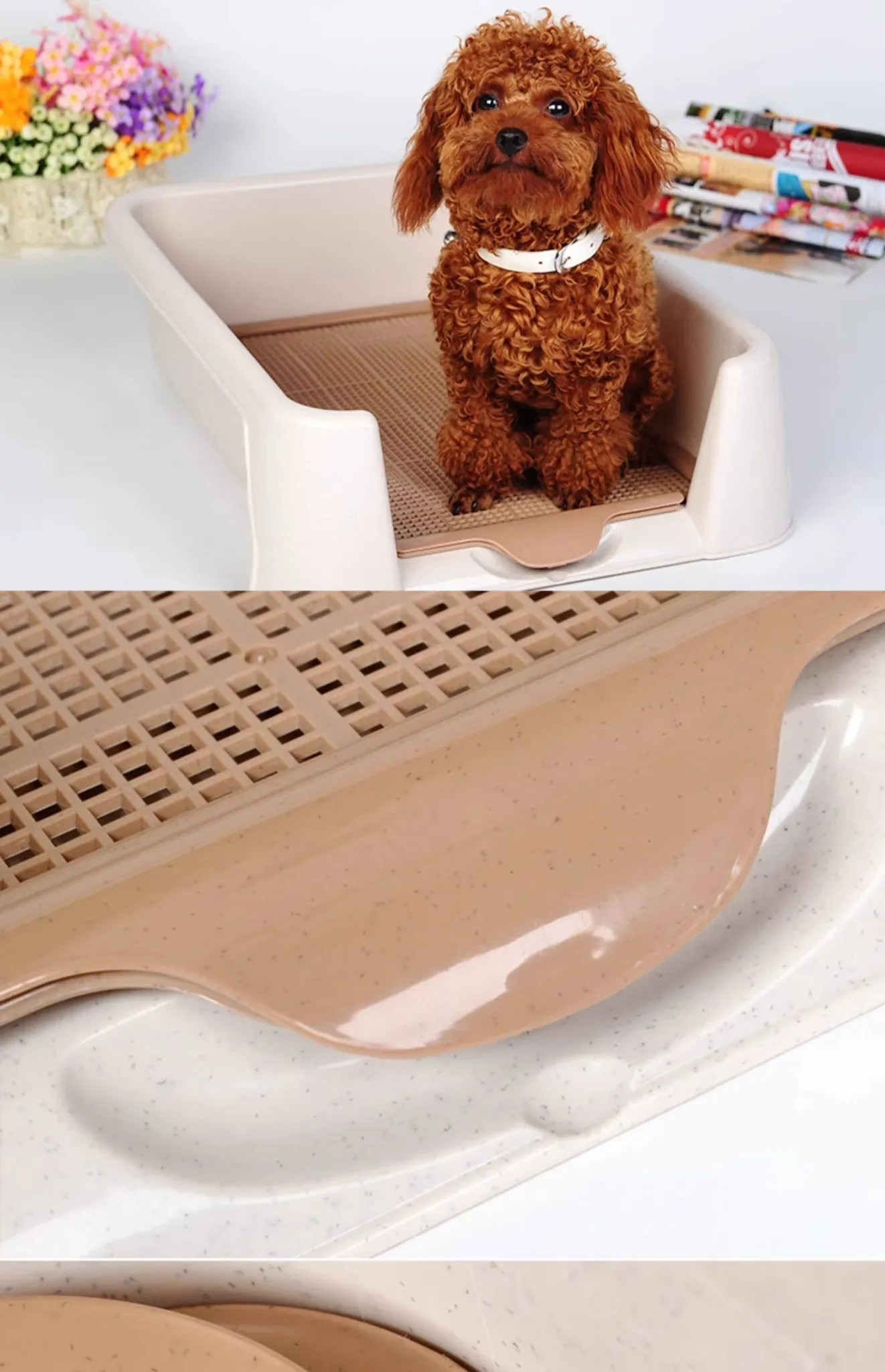クリームイエローのステンレスネット犬用トイレ-22mm