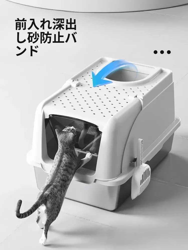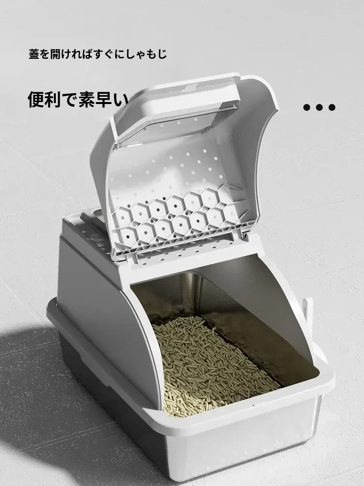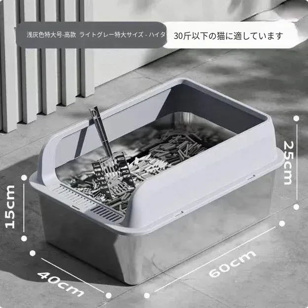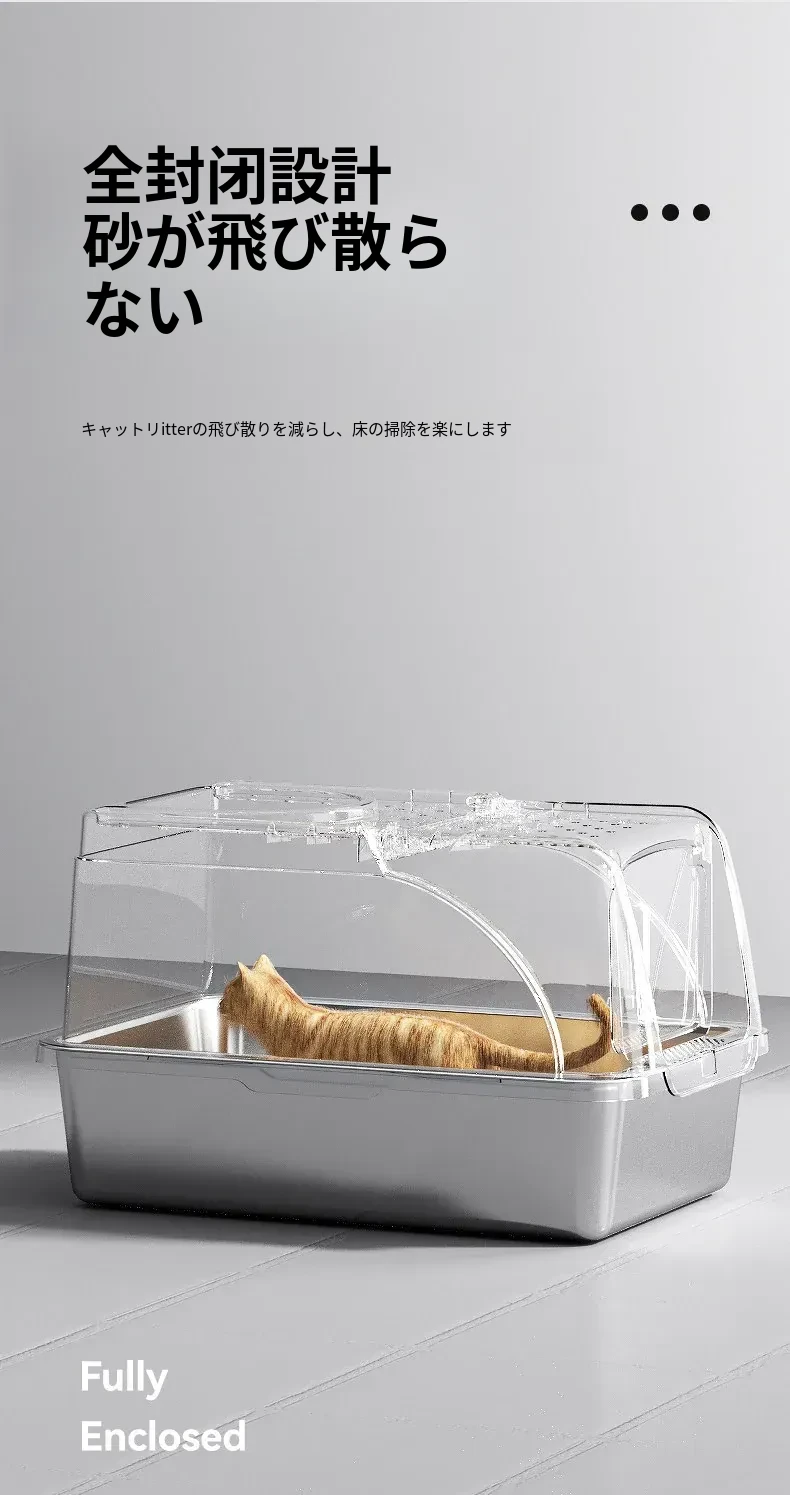 ステンレス製全閉型大サイズキャットトイレ - 脱臭効果抜群!飛び散り防止設計で、愛猫も快適に使えるおしゃれなトイレ。清潔さを保ちつつ、インテリアにもマッチするデザインです。