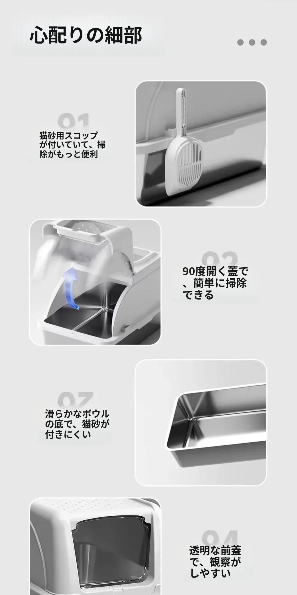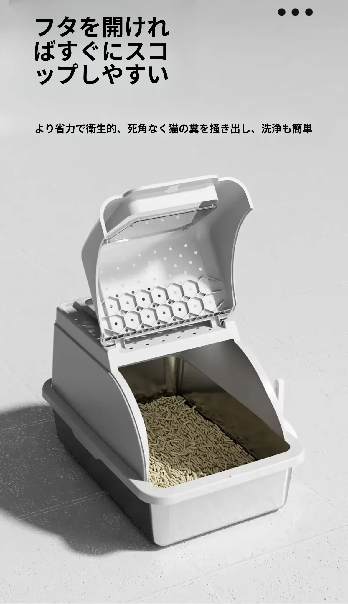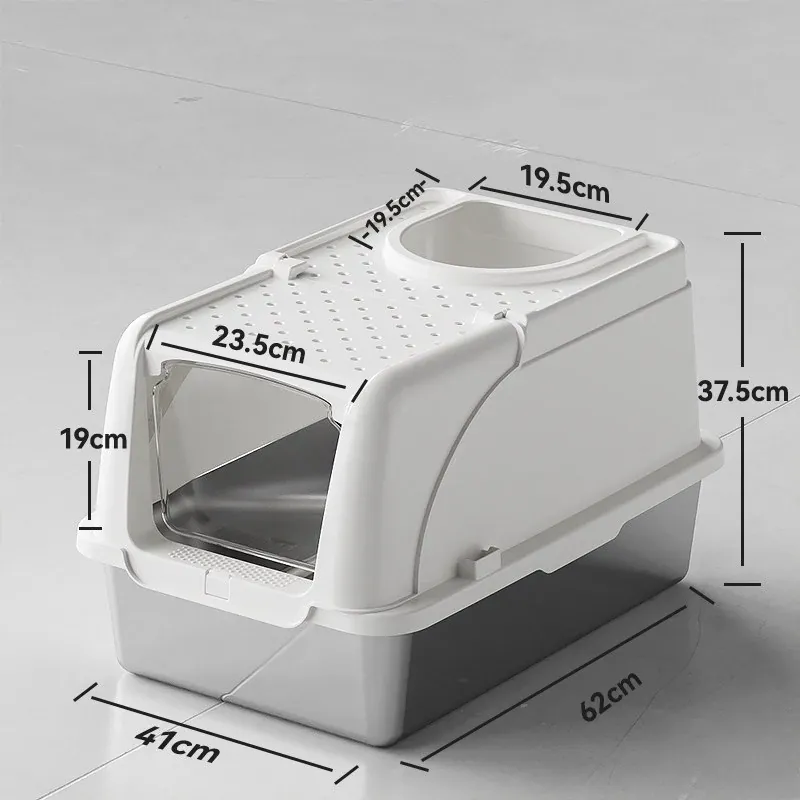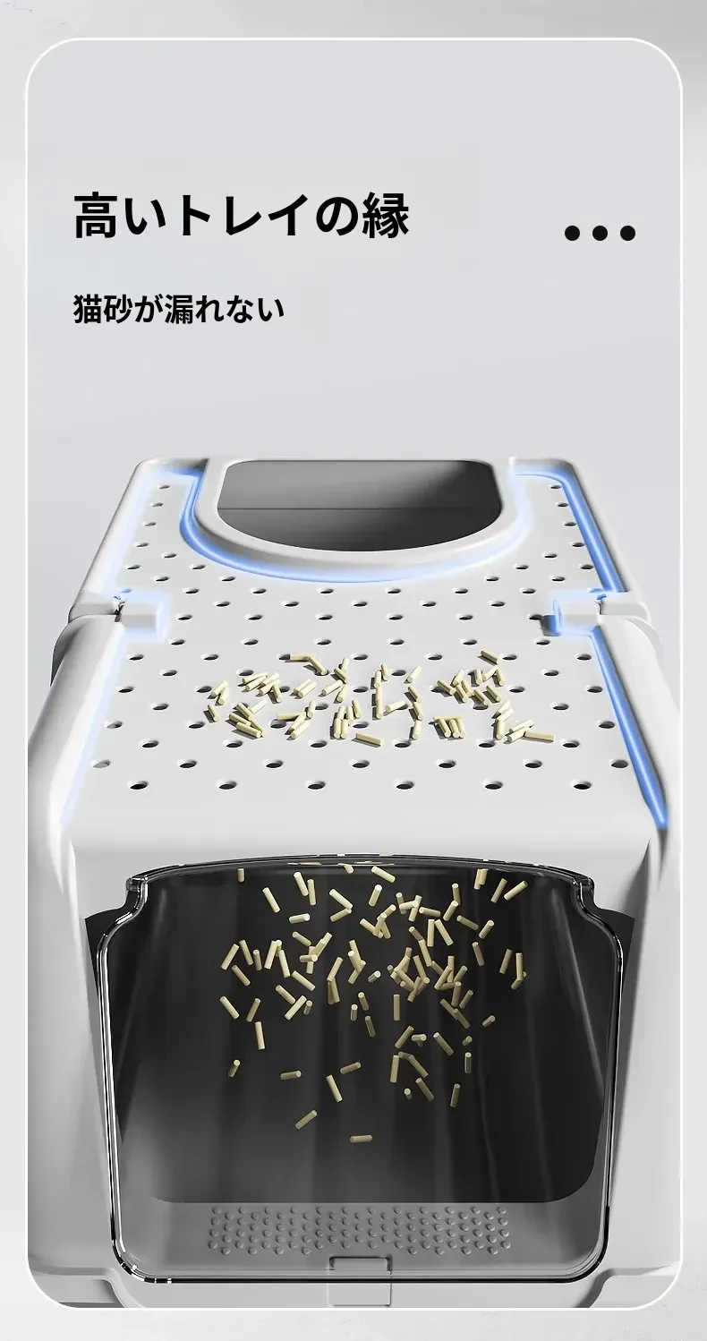 ステンレス製全閉型大サイズキャットトイレ - 脱臭効果抜群!飛び散り防止設計で、愛猫も快適に使えるおしゃれなトイレ。清潔さを保ちつつ、インテリアにもマッチするデザインです。