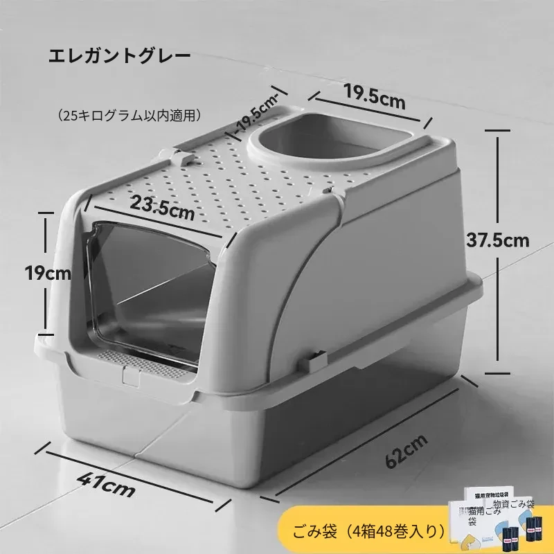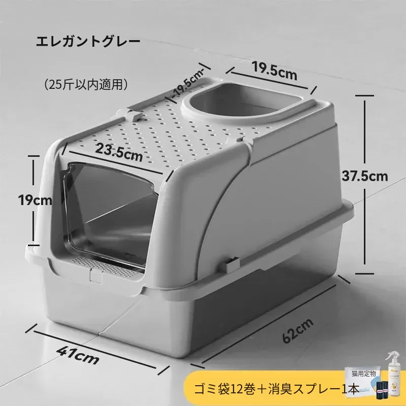 グレーの猫トイレ + ゴミ袋1箱 + 消臭剤1本