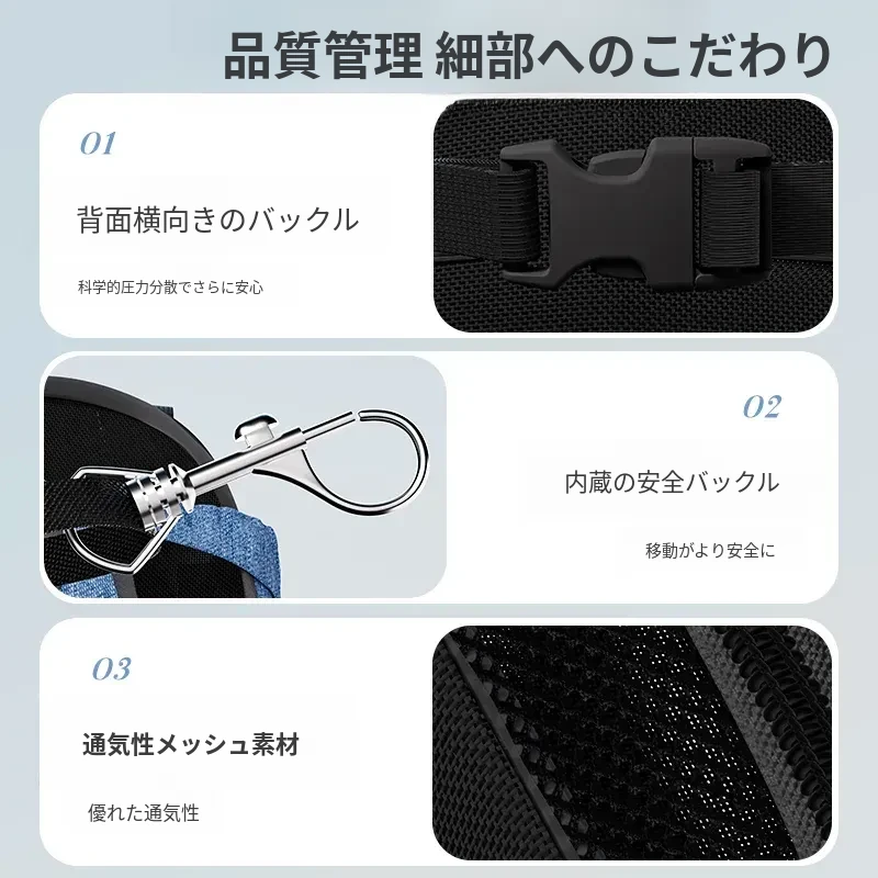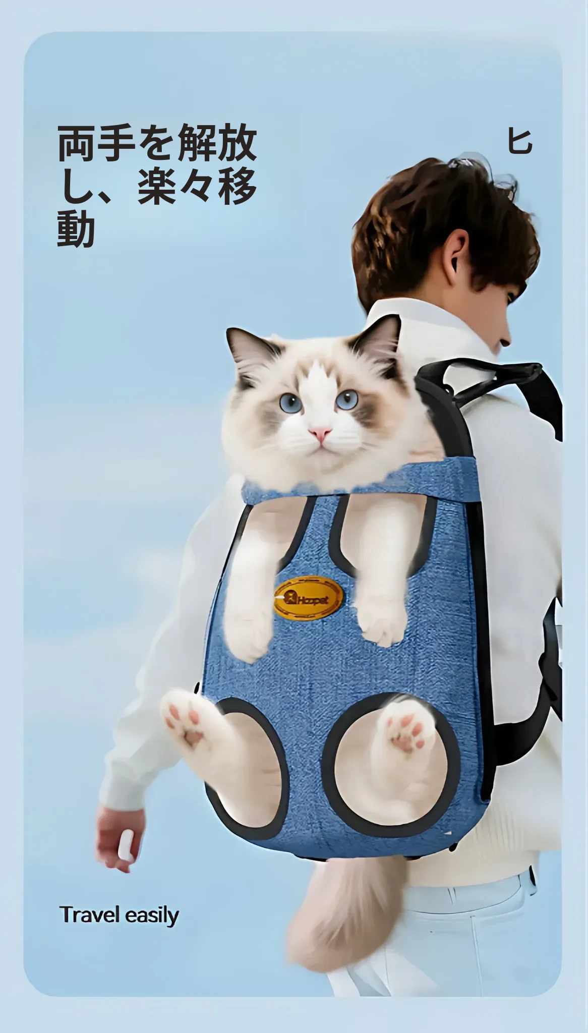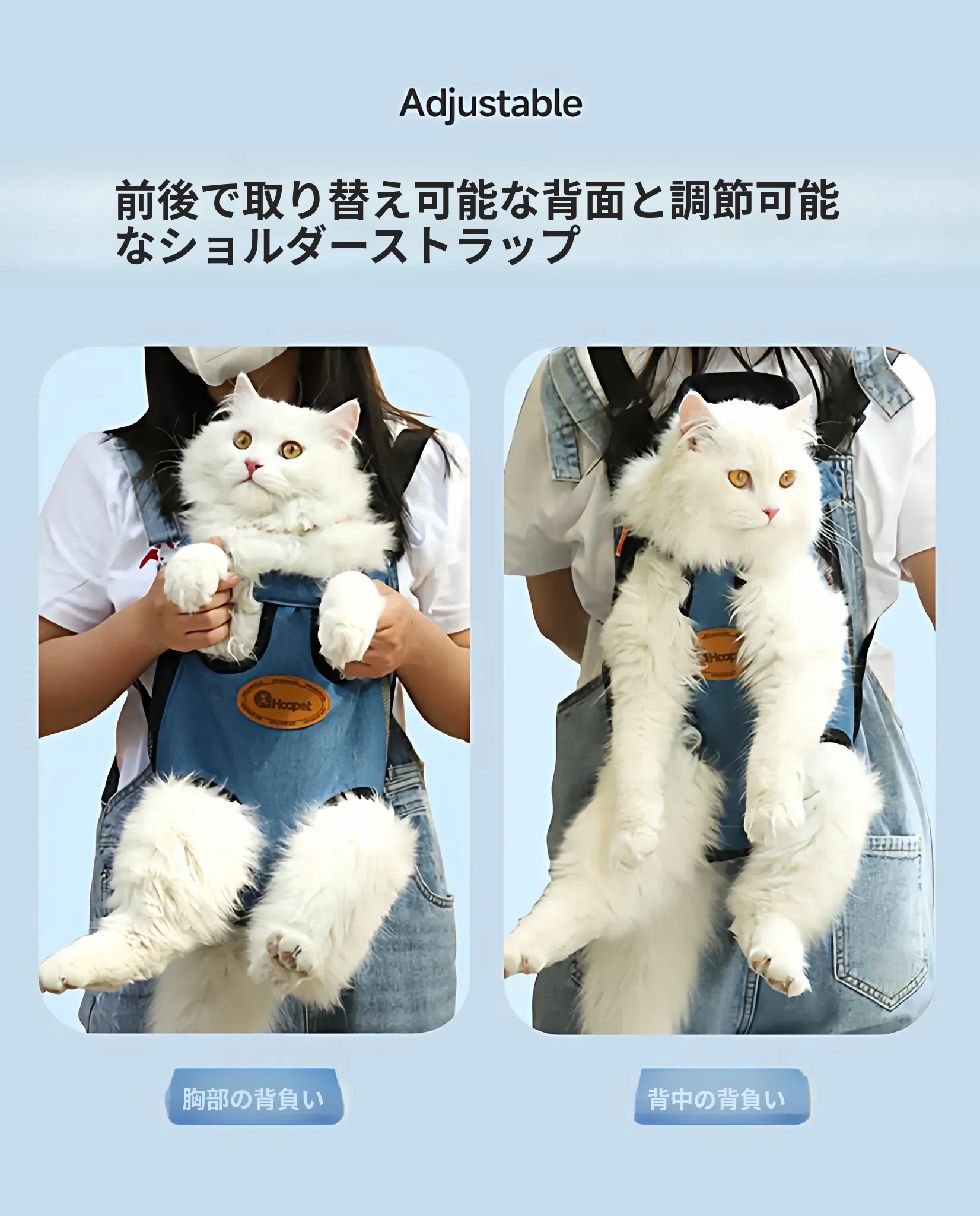 軽量で便利!ペット用キャットバッグ - 大容量のリュック型、肩掛け&胸前仕様、猫ちゃんや小型犬のお出かけに最適!
