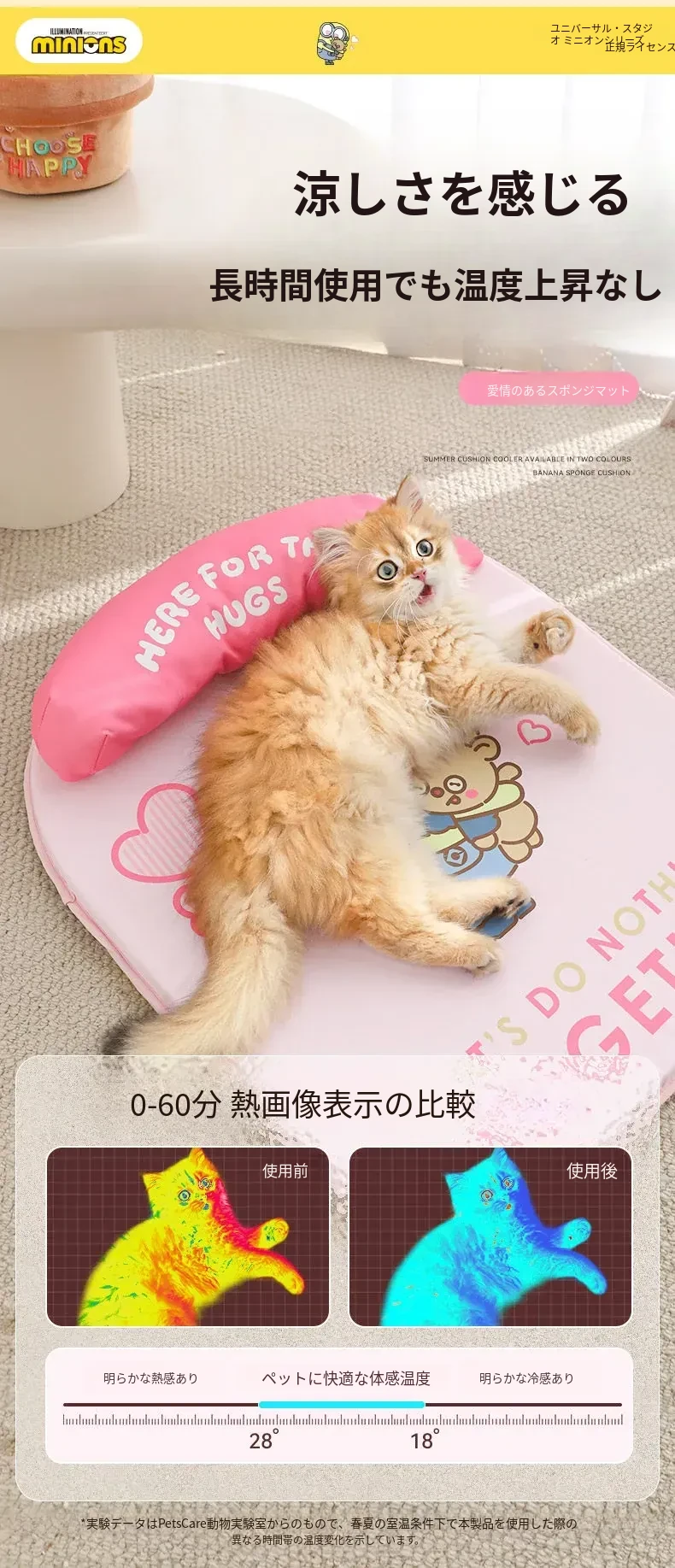 ミニオンペットハウス 夏用クールマット 四季使える小型犬・猫用ひんやり寝具 ペット用クールマットで快適な夏を!