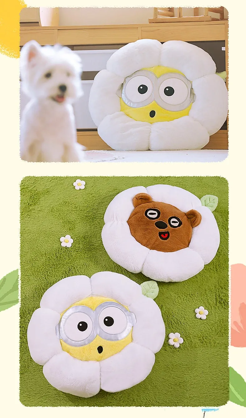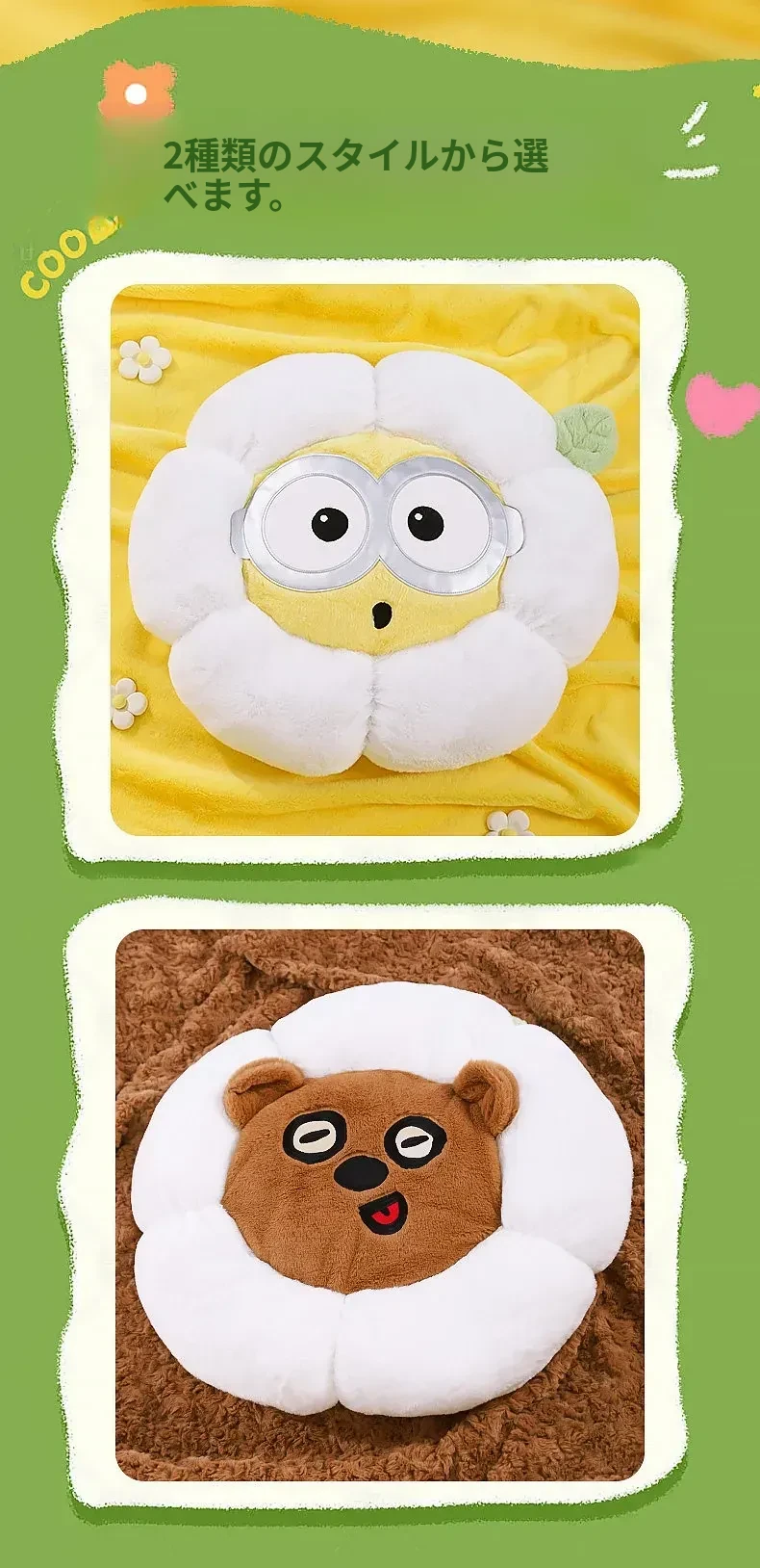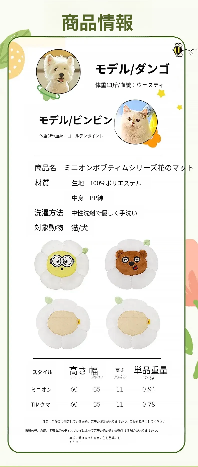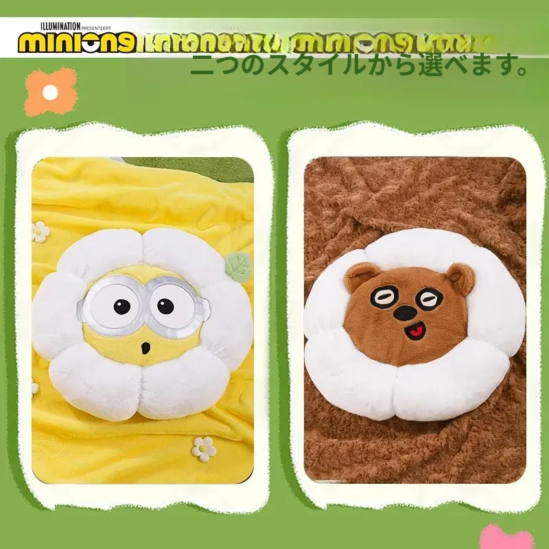 ミニオンボブ&ティムシリーズ 花柄マット 小熊とミニオンの犬猫用 ベッド 秋冬にぴったりの暖かいお昼寝マット