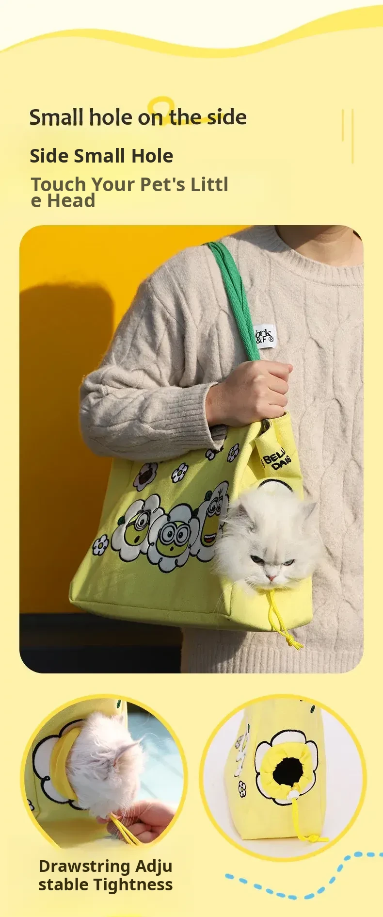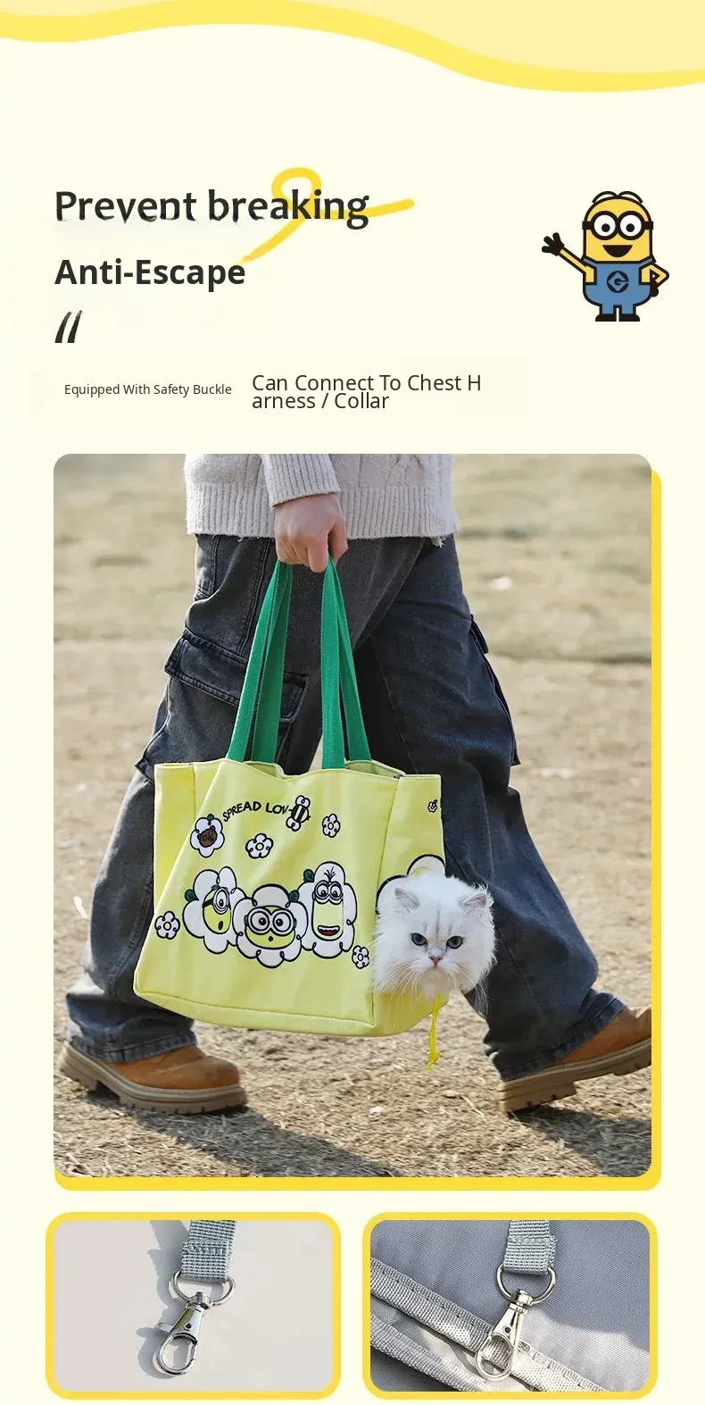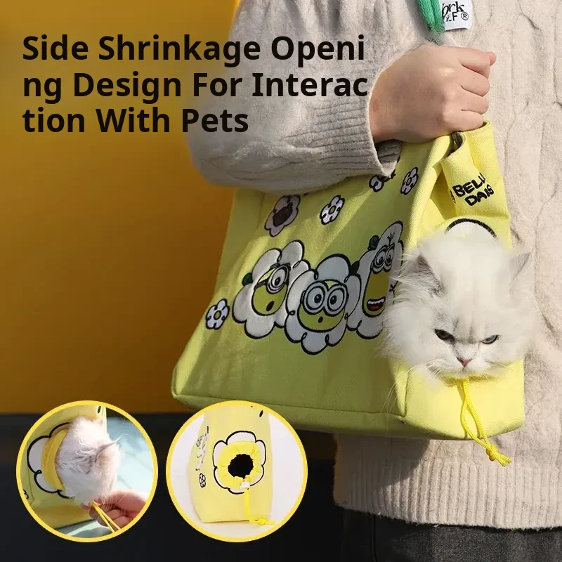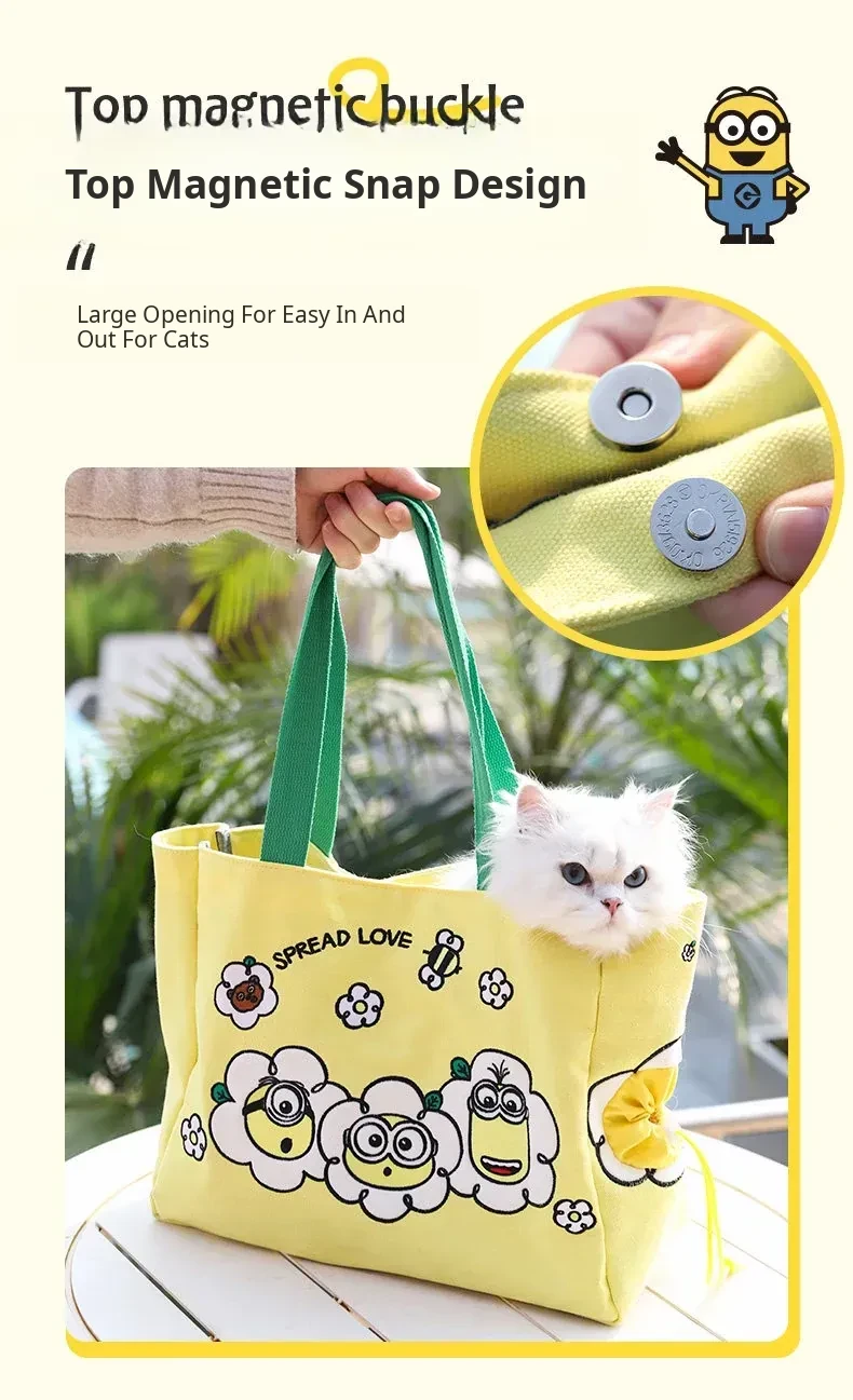 Minion-Themed Portable Pet Carrier Bag - Breathable, Stress-Relief Shoulder Backpack for Cats and Small Dogs - Ideal for Outings and Travel