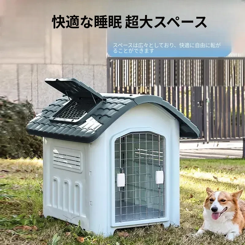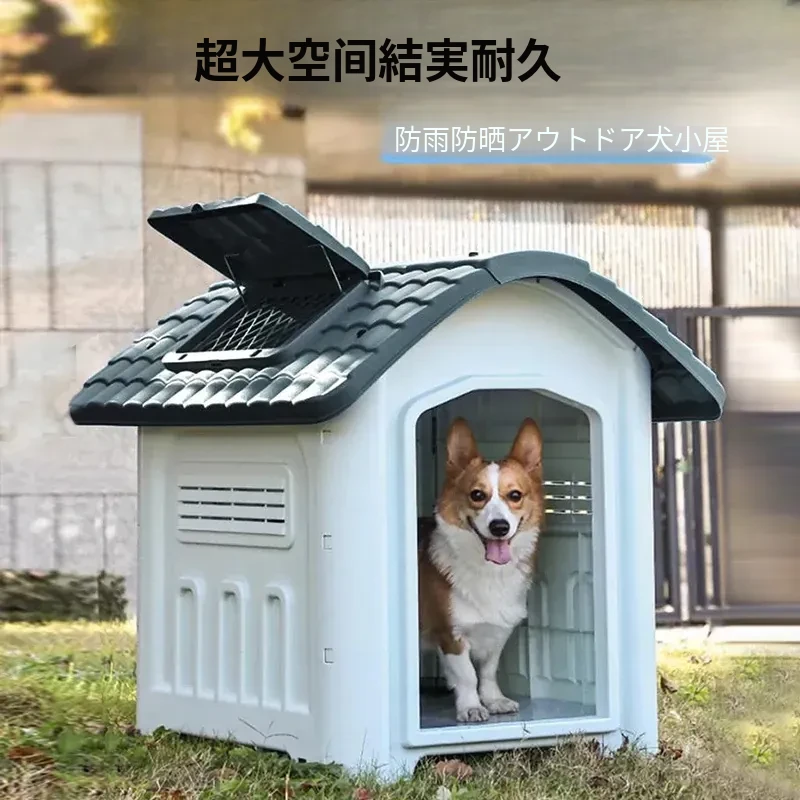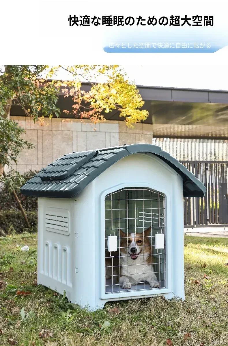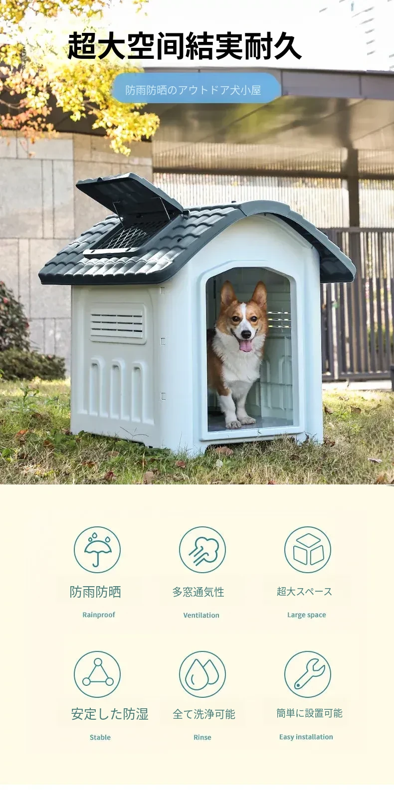 アウトドア用ペットハウス!小型・中型犬に最適な防雨設計の犬小屋。四季を通じて愛犬に快適な空間を提供します。おしゃれで機能的なドッグヴィラで、愛犬も大満足!