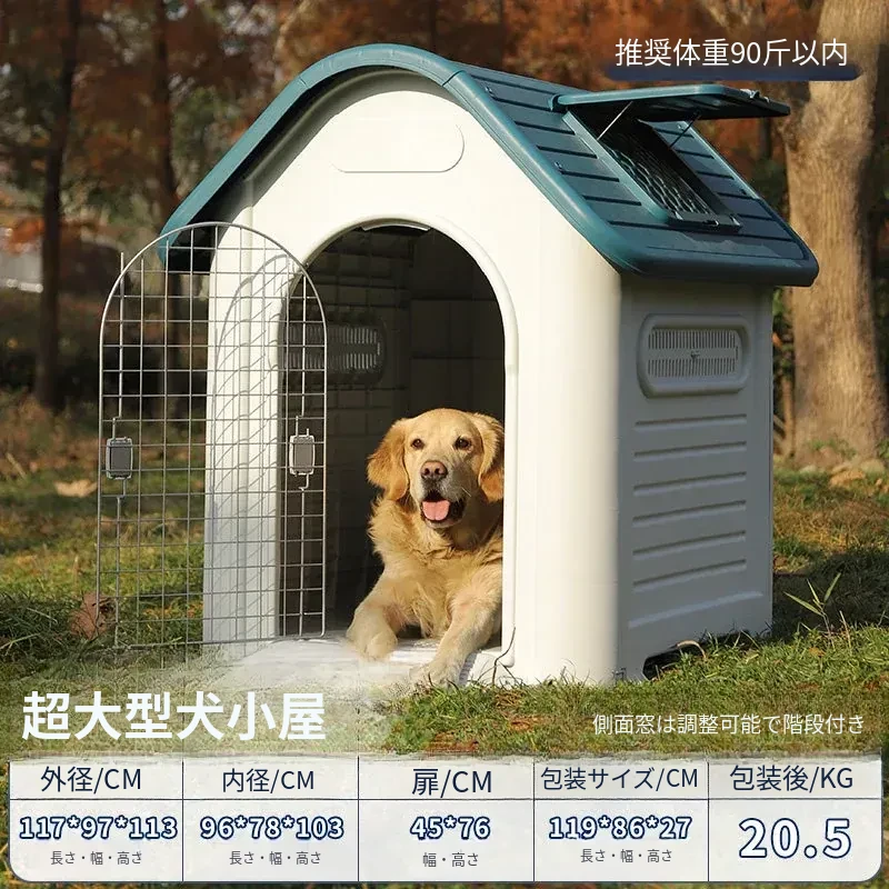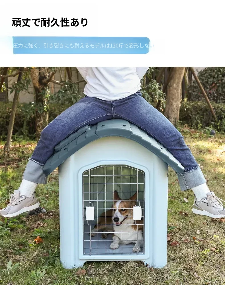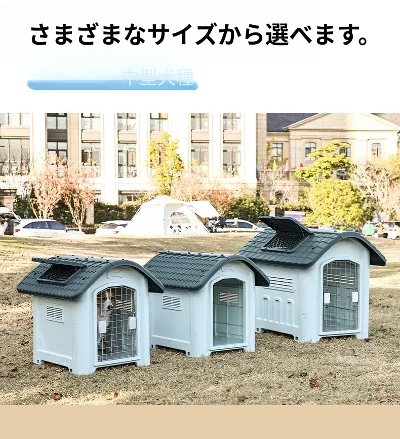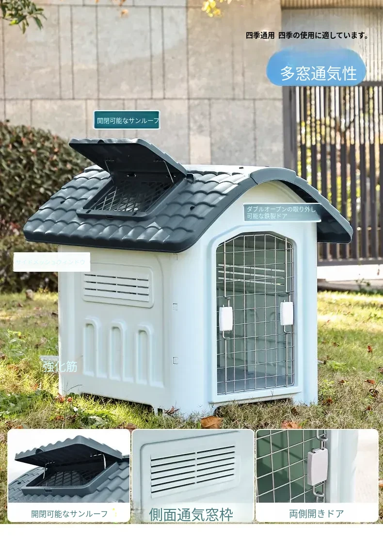 アウトドア用ペットハウス!小型・中型犬に最適な防雨設計の犬小屋。四季を通じて愛犬に快適な空間を提供します。おしゃれで機能的なドッグヴィラで、愛犬も大満足!