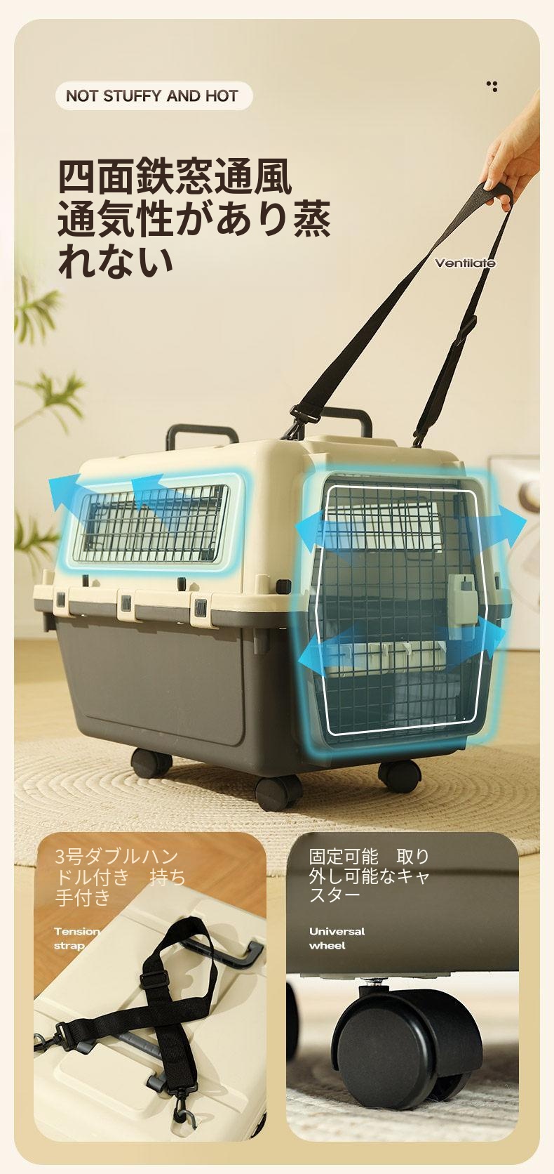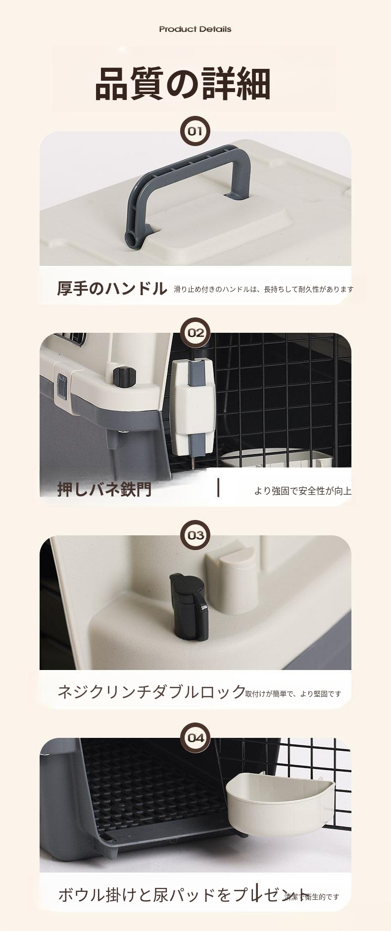 2号(推奨20斤以内)四面鉄窓-持ち手付き+尿隔て板