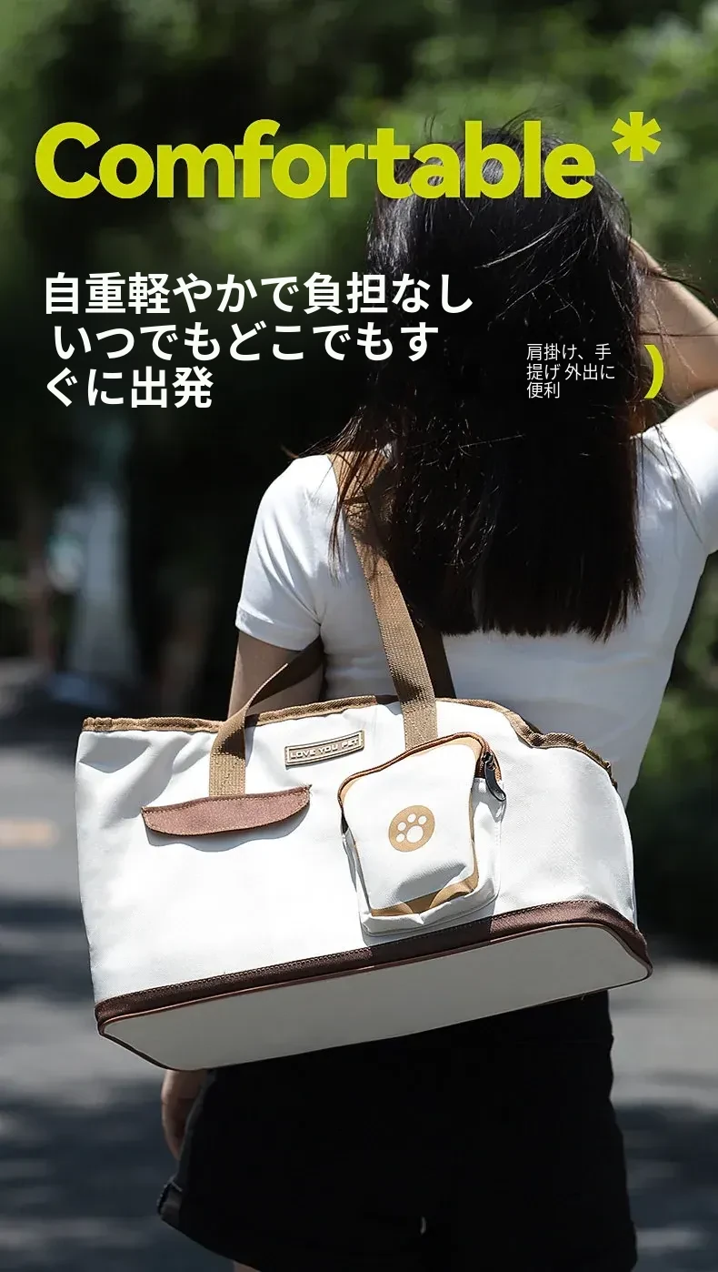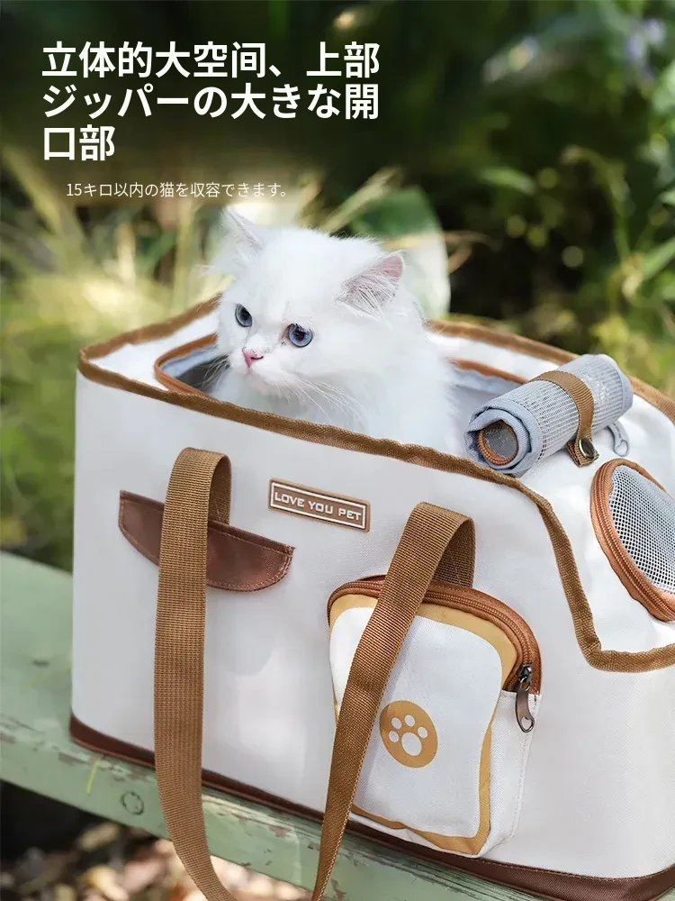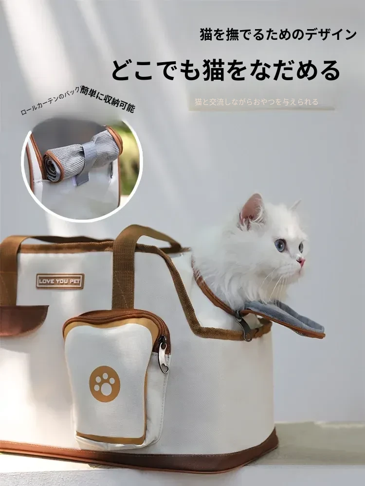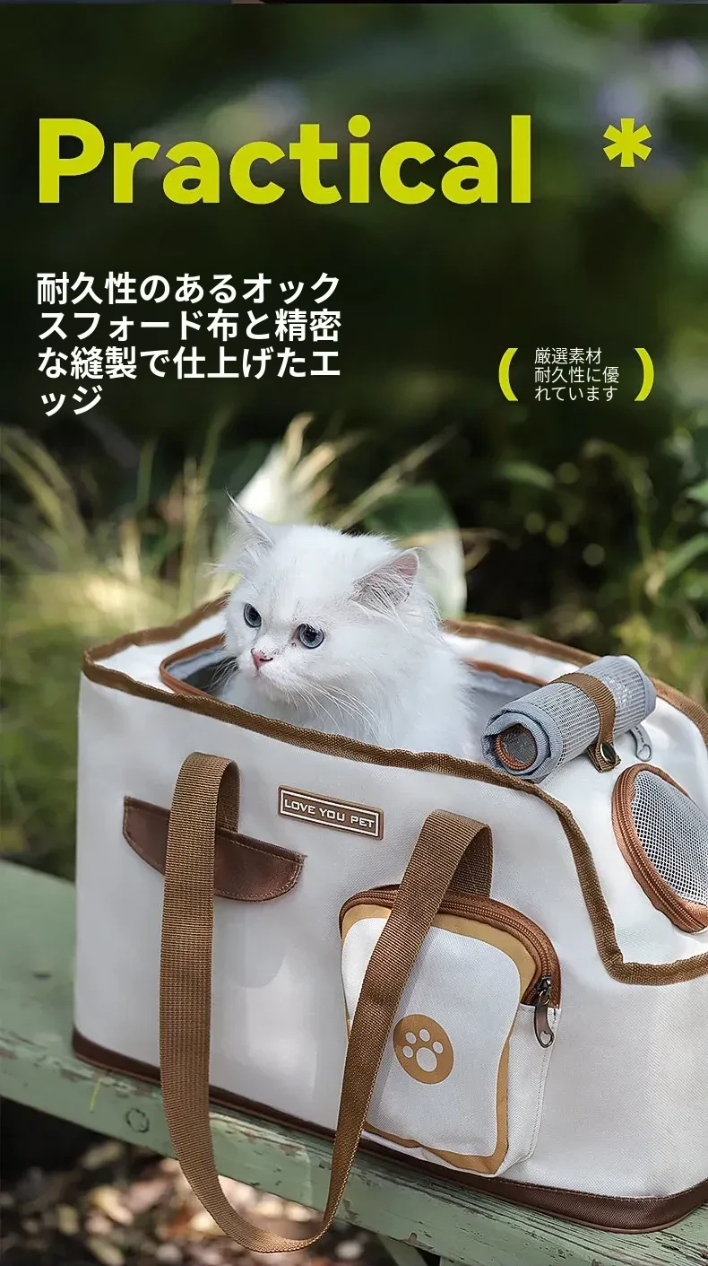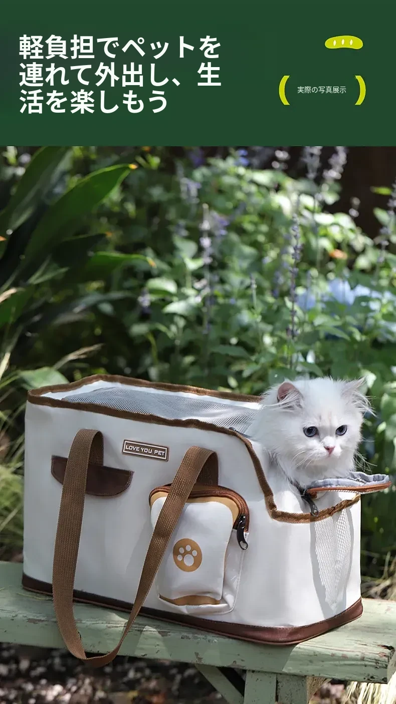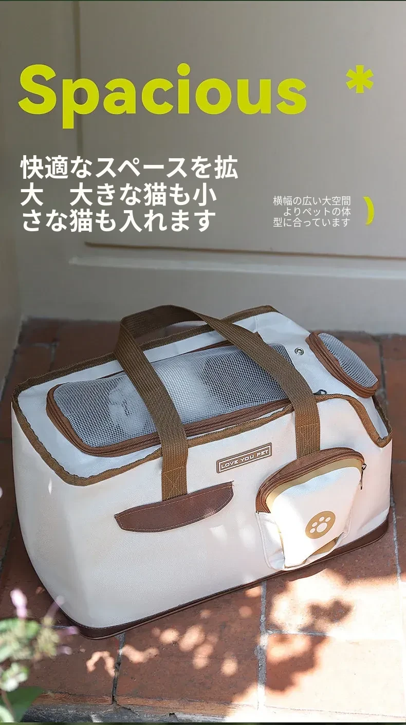 キャットキャリー バッグ - 通気性抜群のペット用ハンドバッグ!猫や小型犬、おしゃれなウサギにも最適。大容量でストレスフリーのお出かけを実現!
