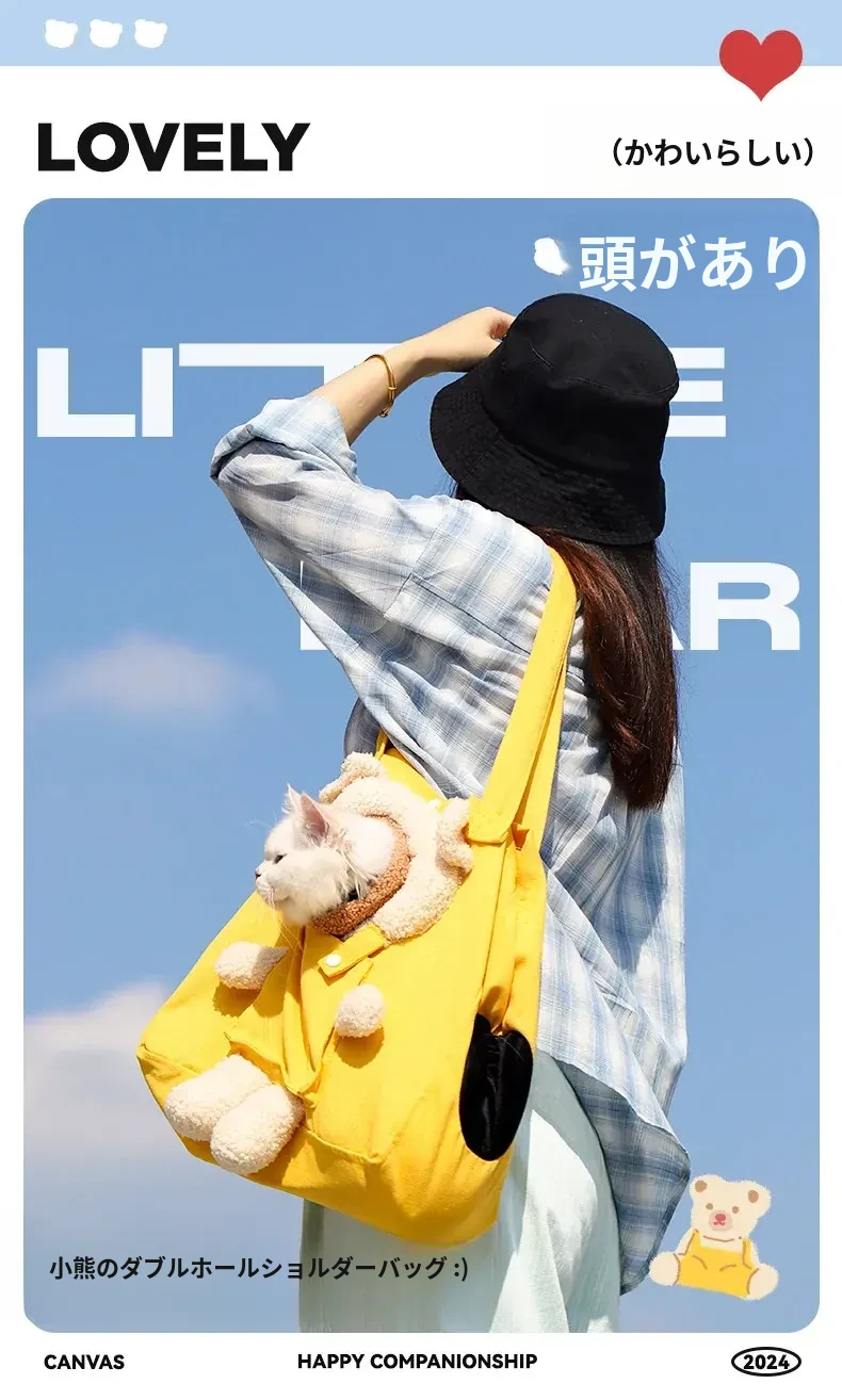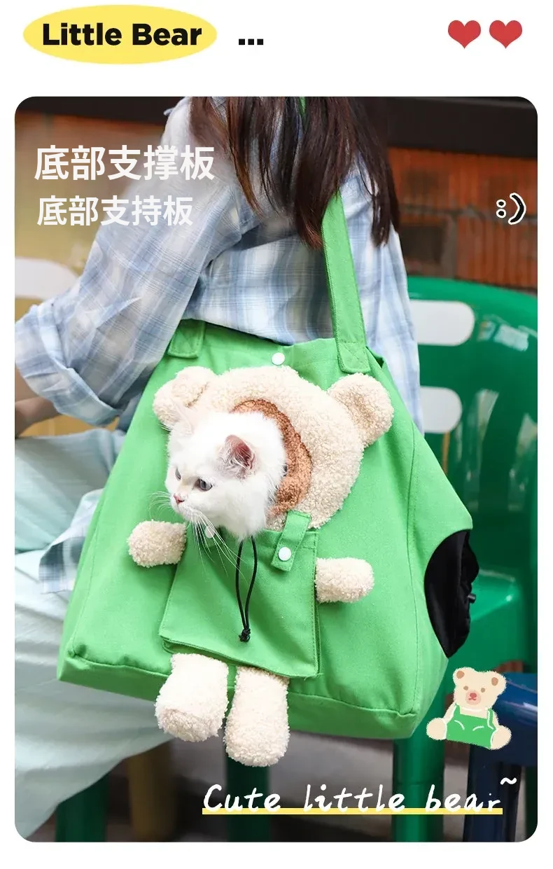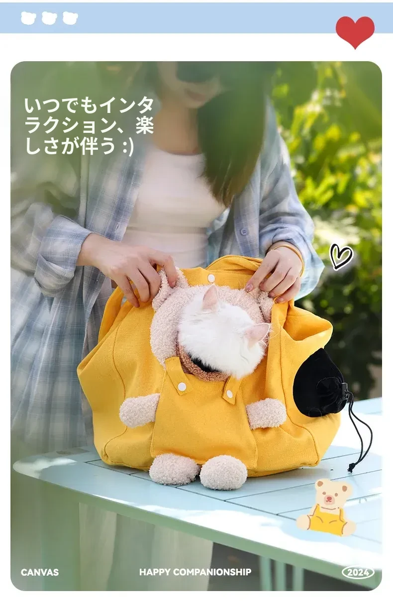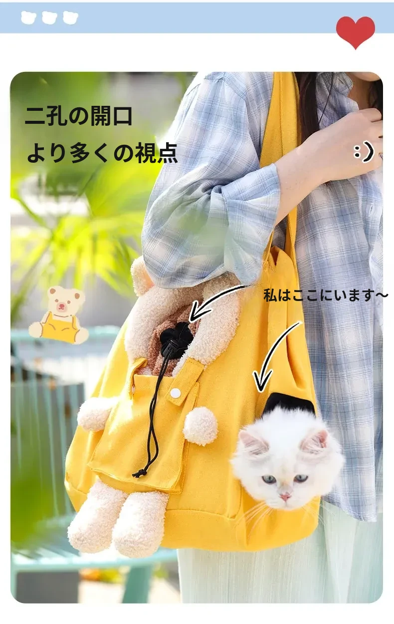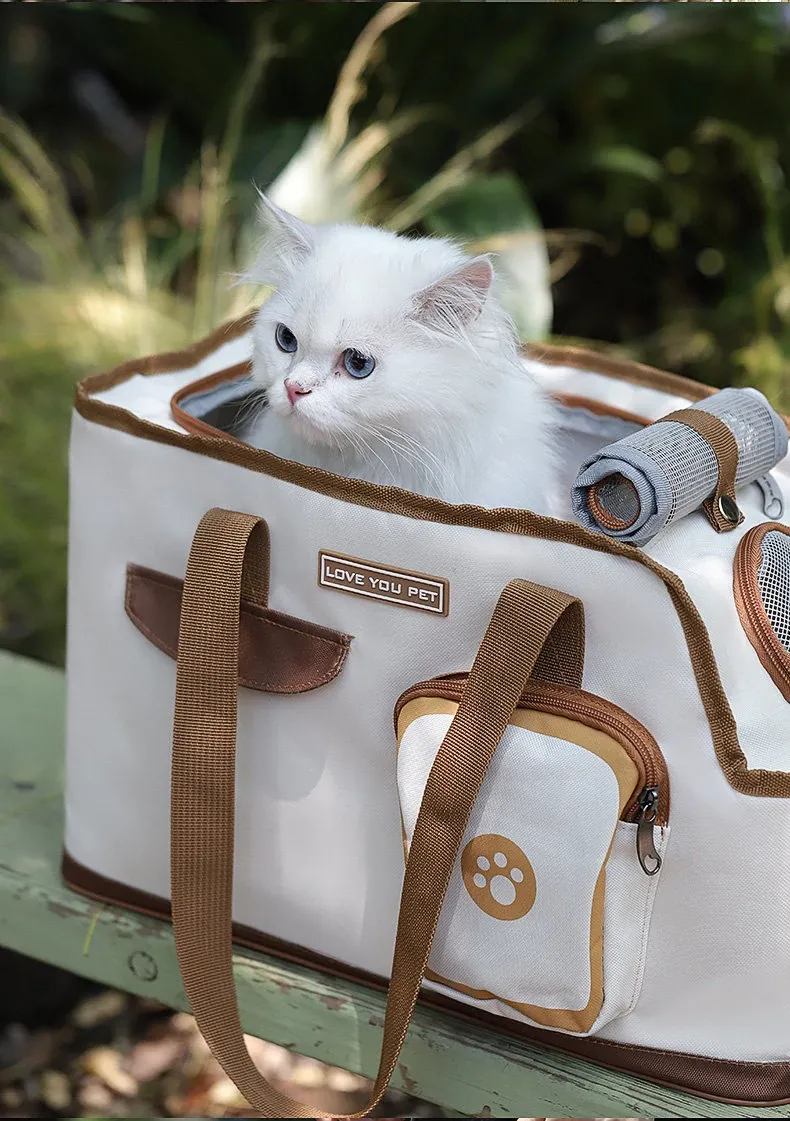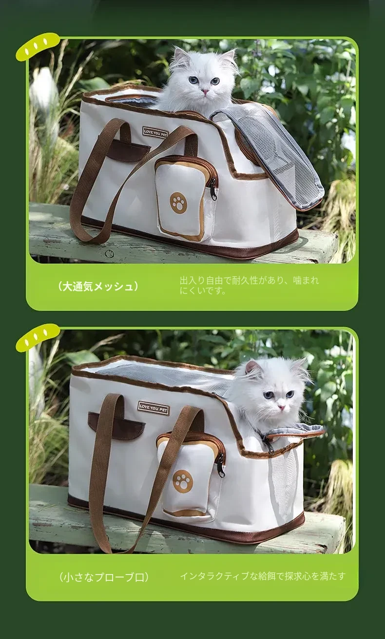 キャットキャリー バッグ - 通気性抜群のペット用ハンドバッグ!猫や小型犬、おしゃれなウサギにも最適。大容量でストレスフリーのお出かけを実現!