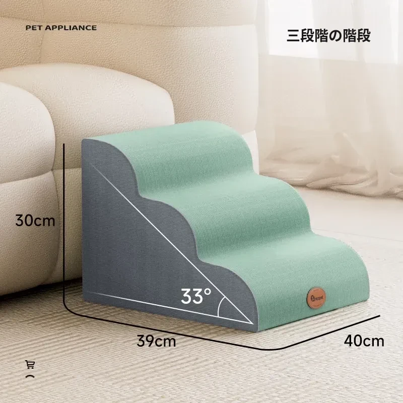 ペット階段 犬用階段(3段 緑色) 【高さ30cm 角度33°】
