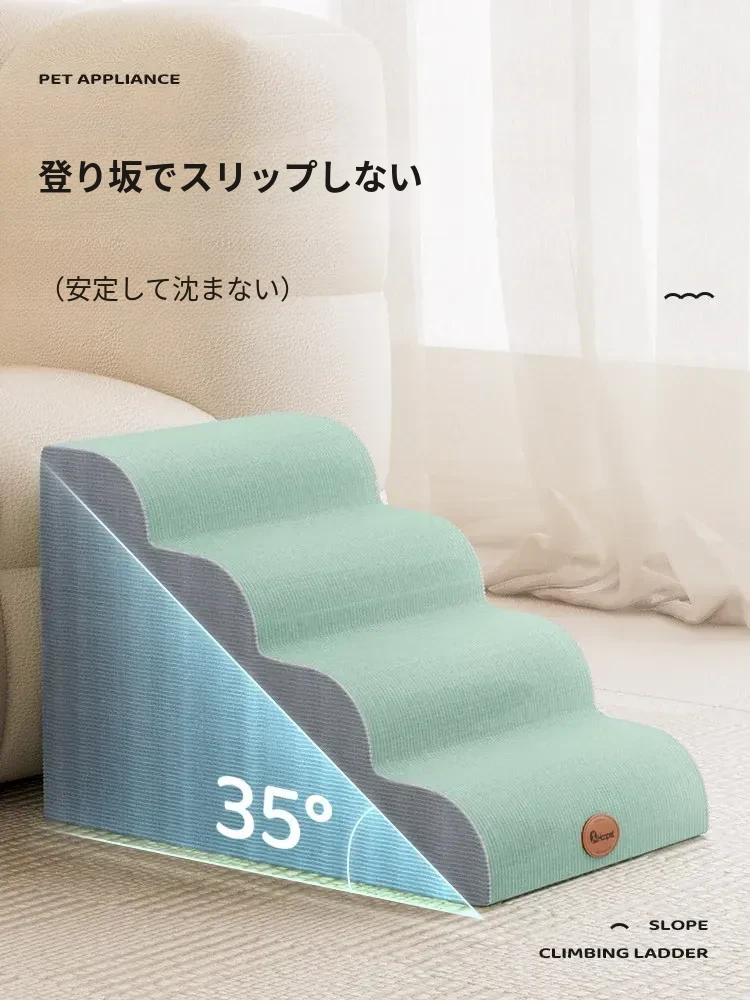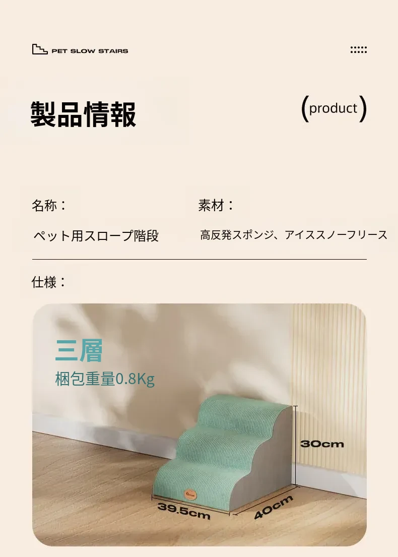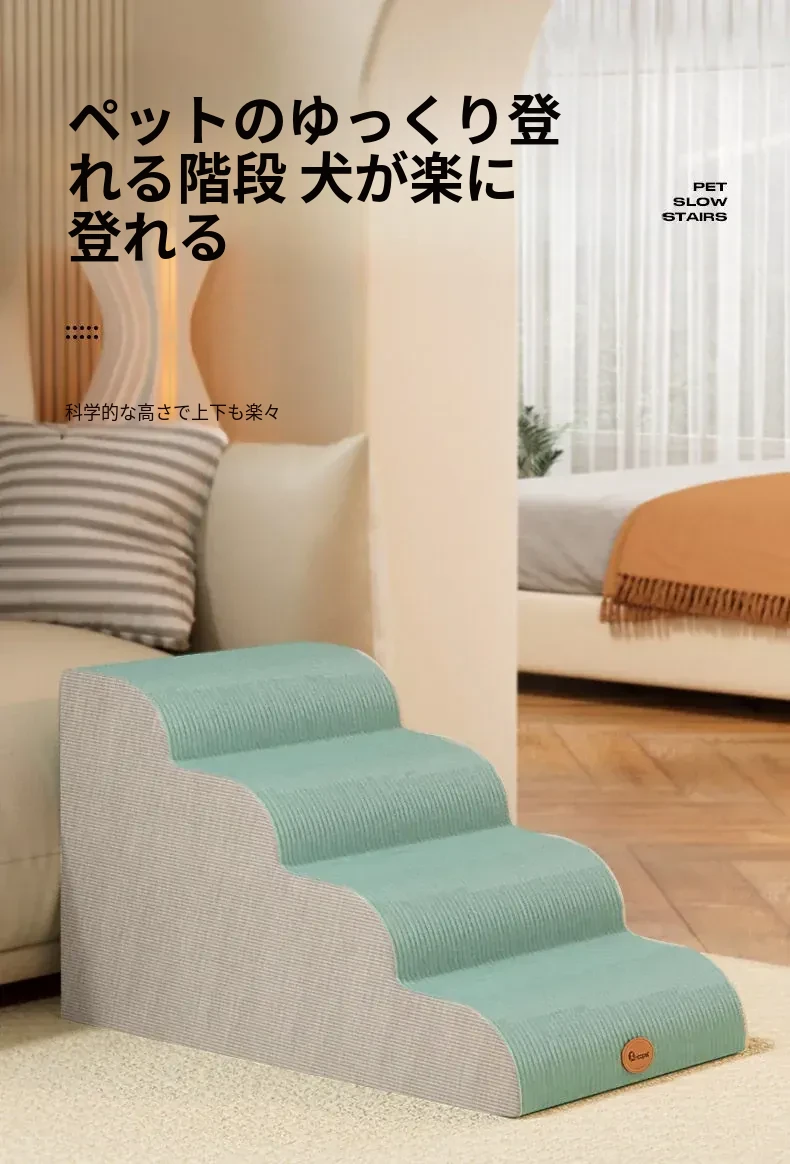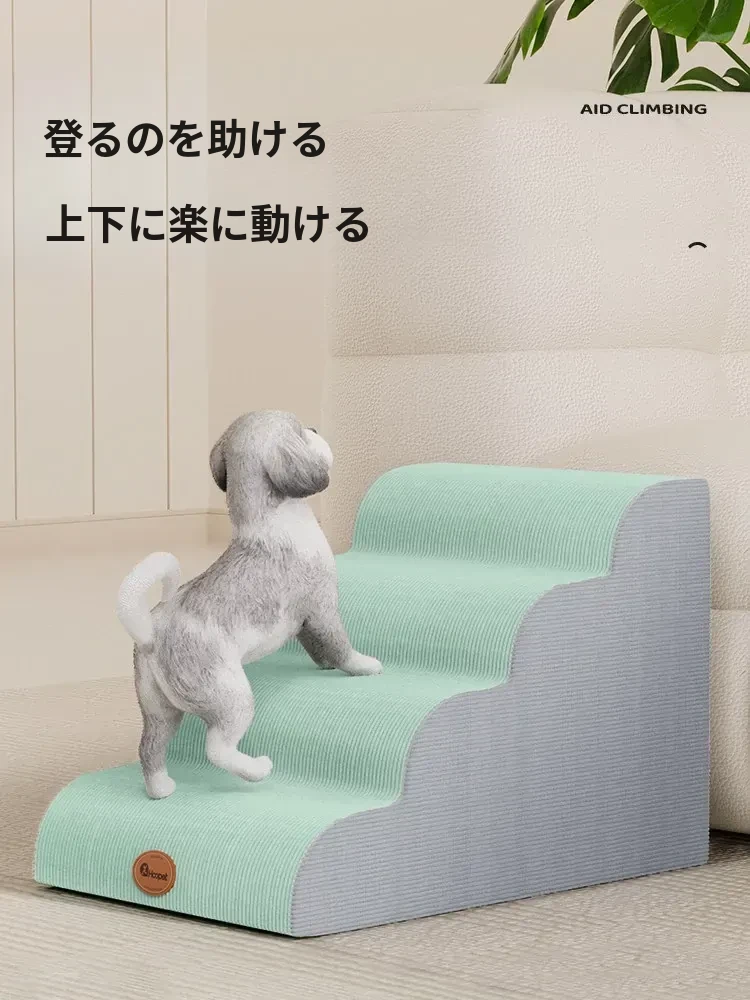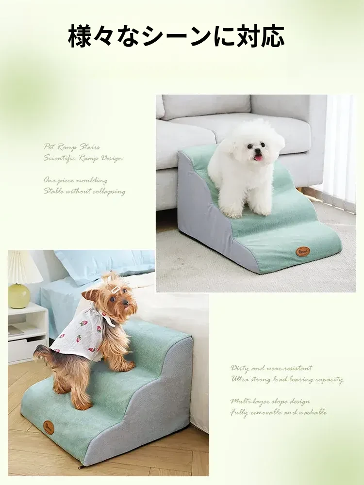 ペット用階段スロープ - 小型犬や老犬が楽にベッドやソファに上がれる便利なステップ!安全で安定した設計で、愛犬の生活をもっと快適に。